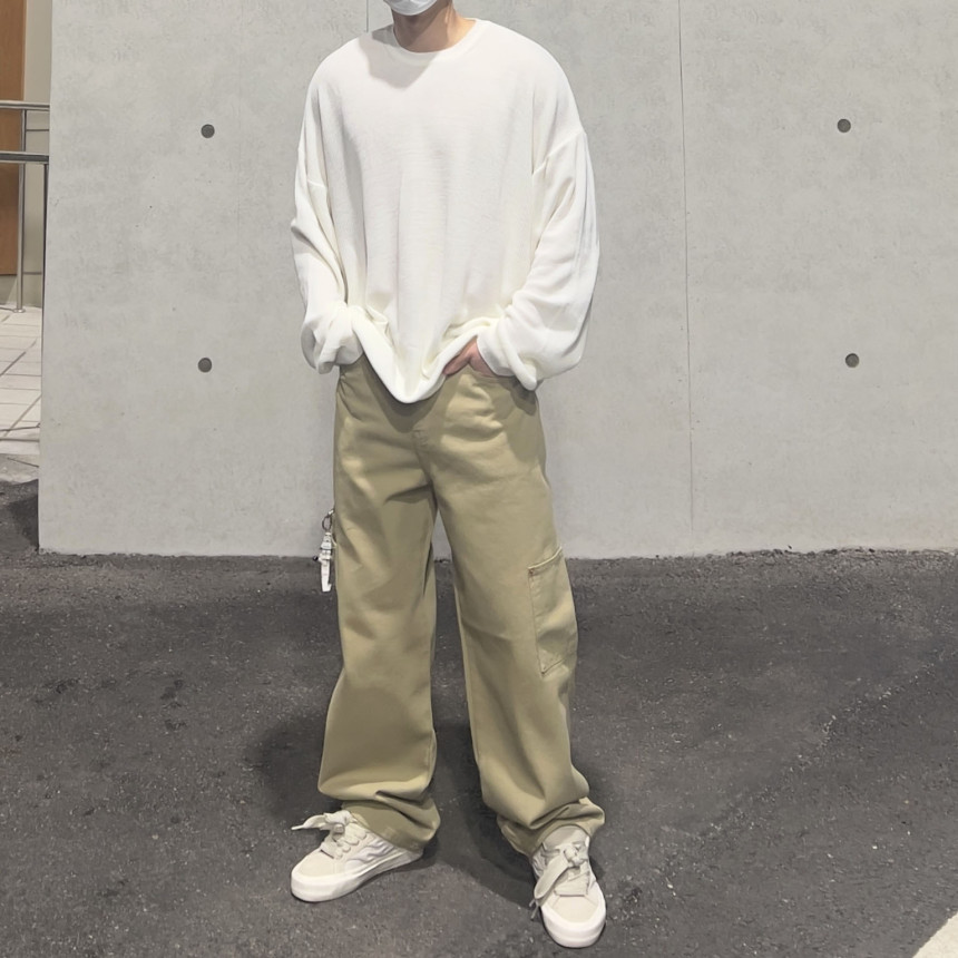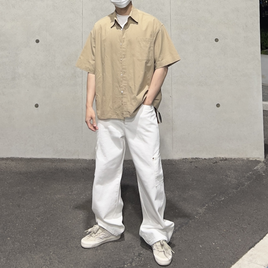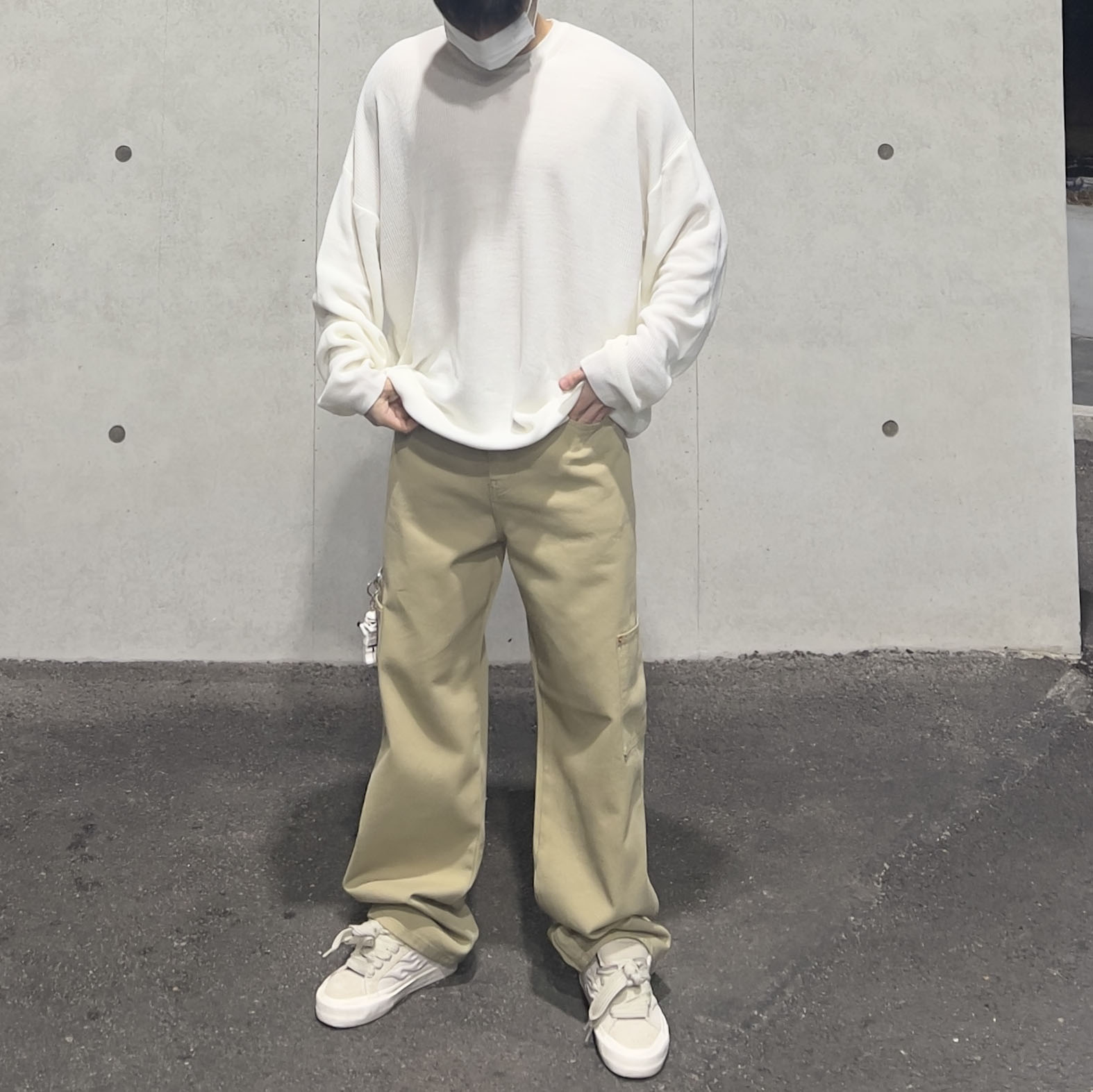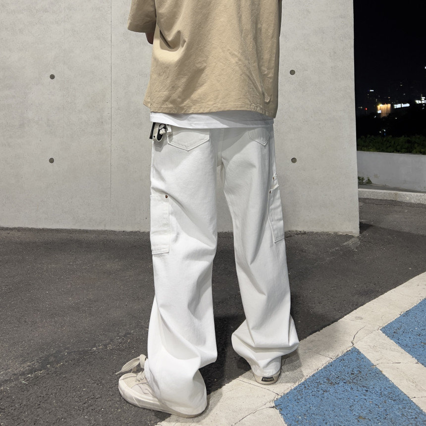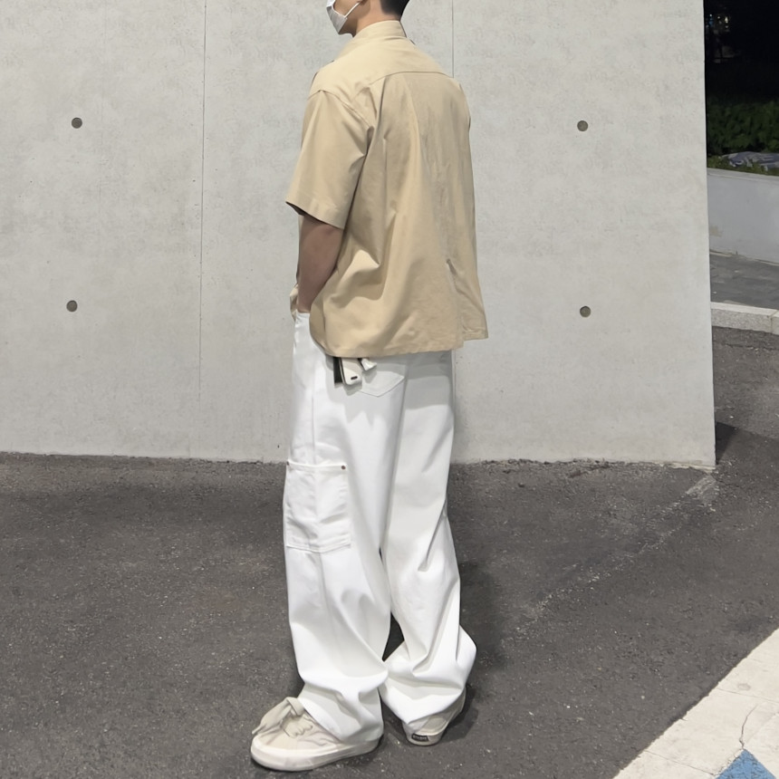 panst - semi wide reviet pocket cotton pt (white) M 착용