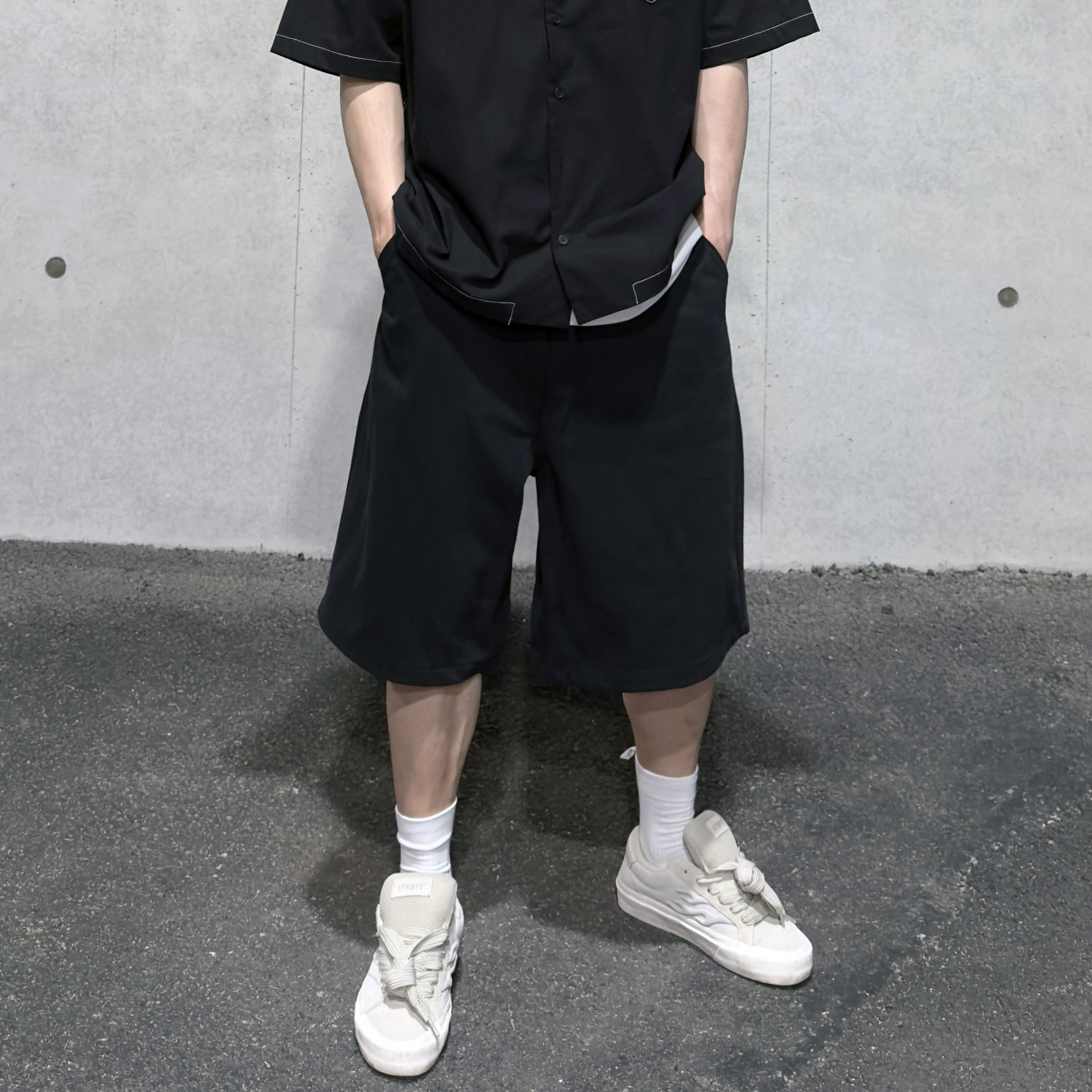 pants - basic twill bermuda (black) L