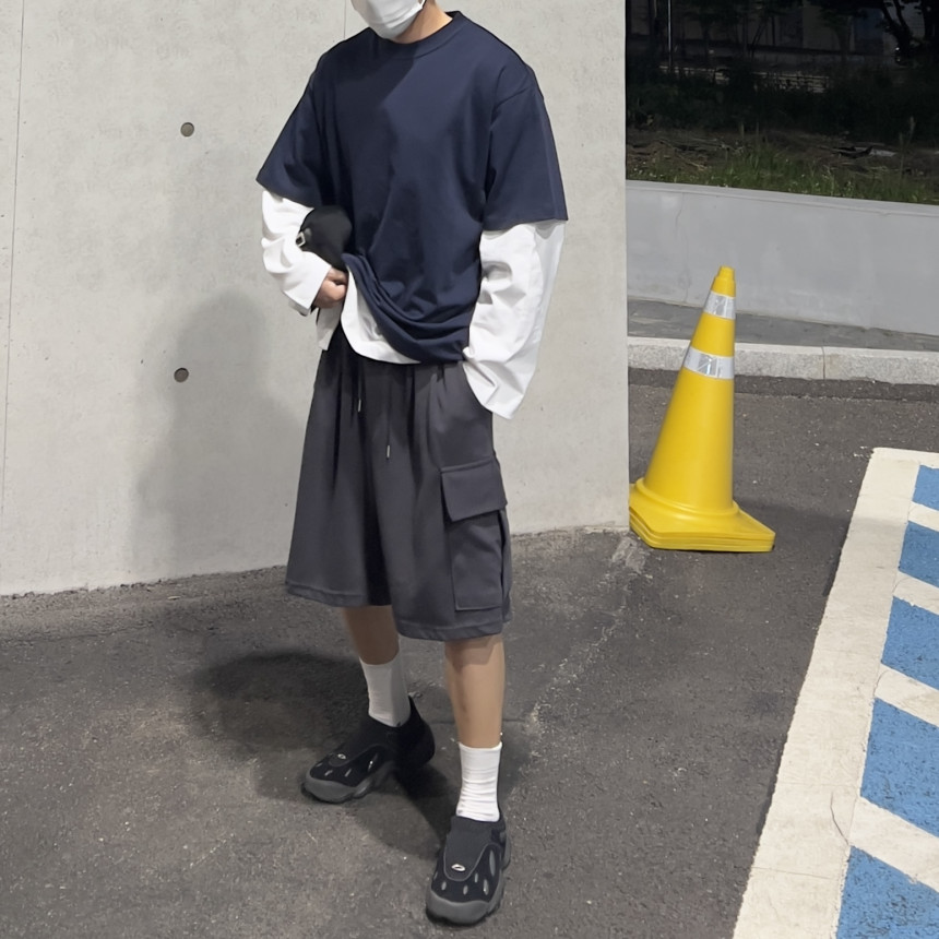 wide cargo half pants (3color)