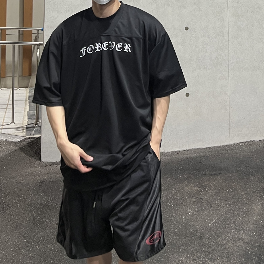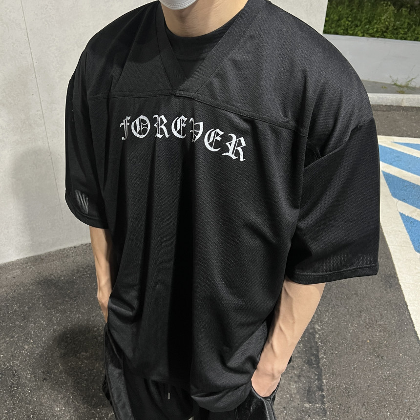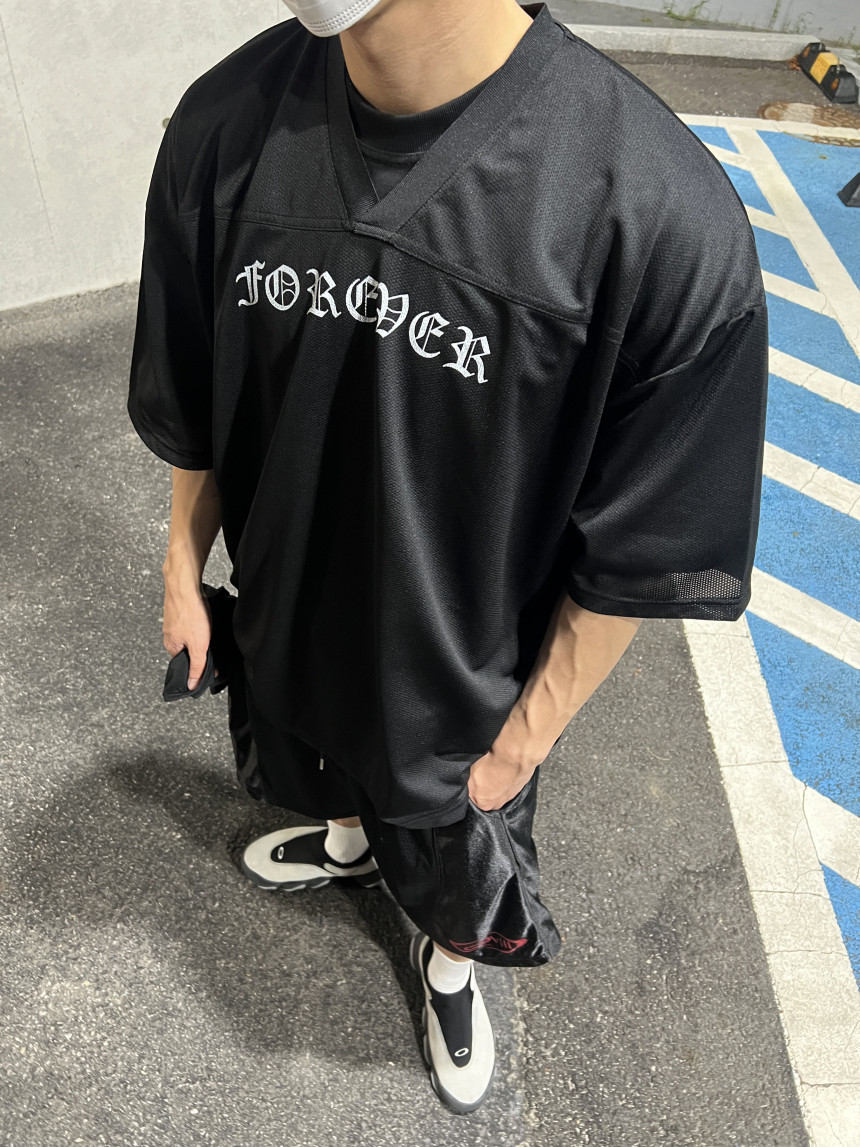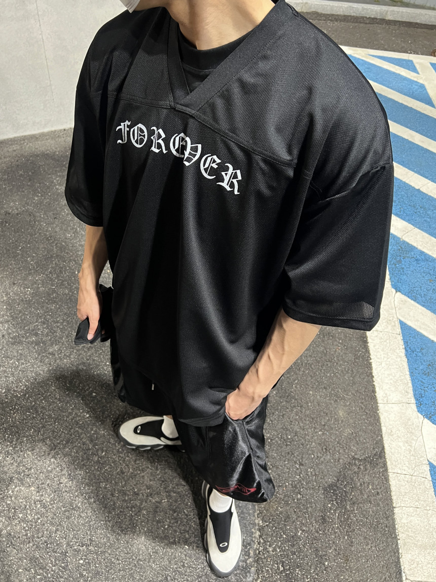 오버한 핏 감에 매쉬 반팔 져지 입니다.