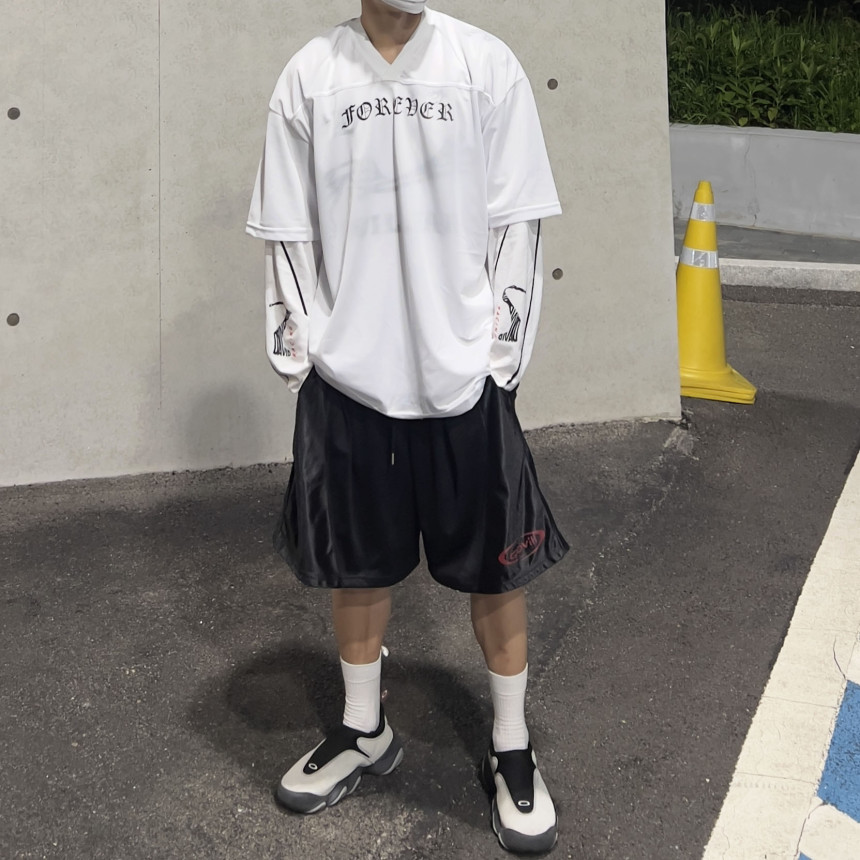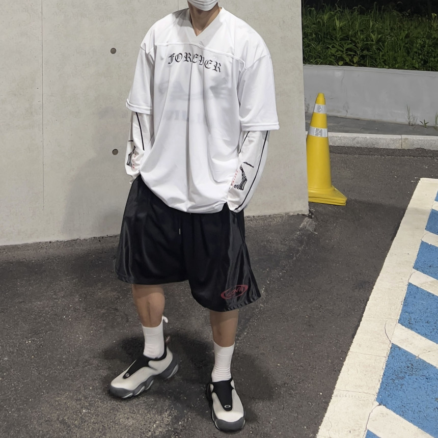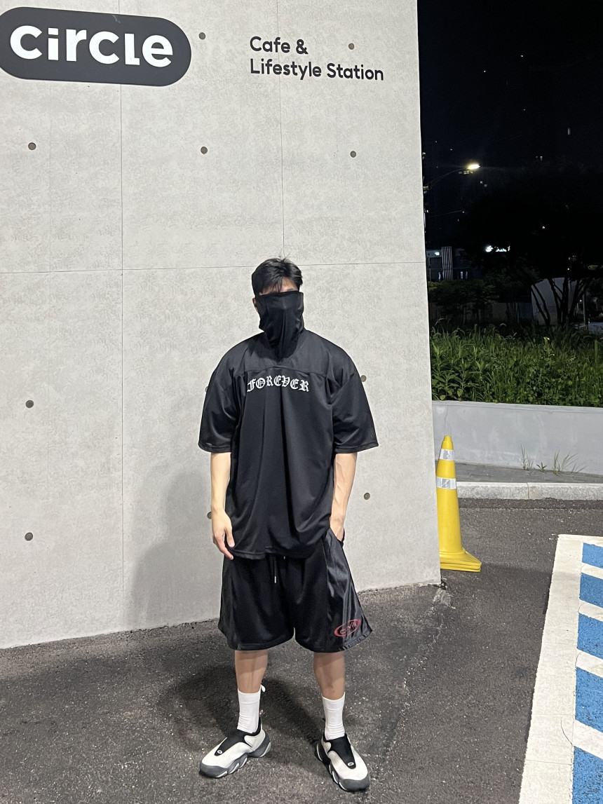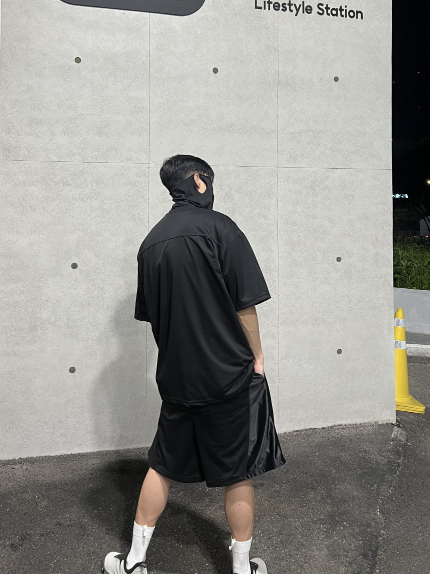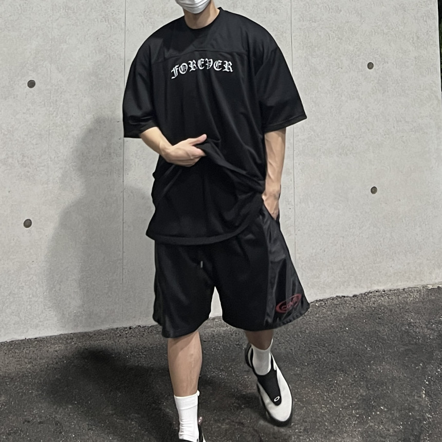 오버한 핏 감에 매쉬 반팔 져지 입니다.