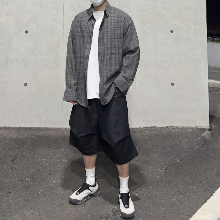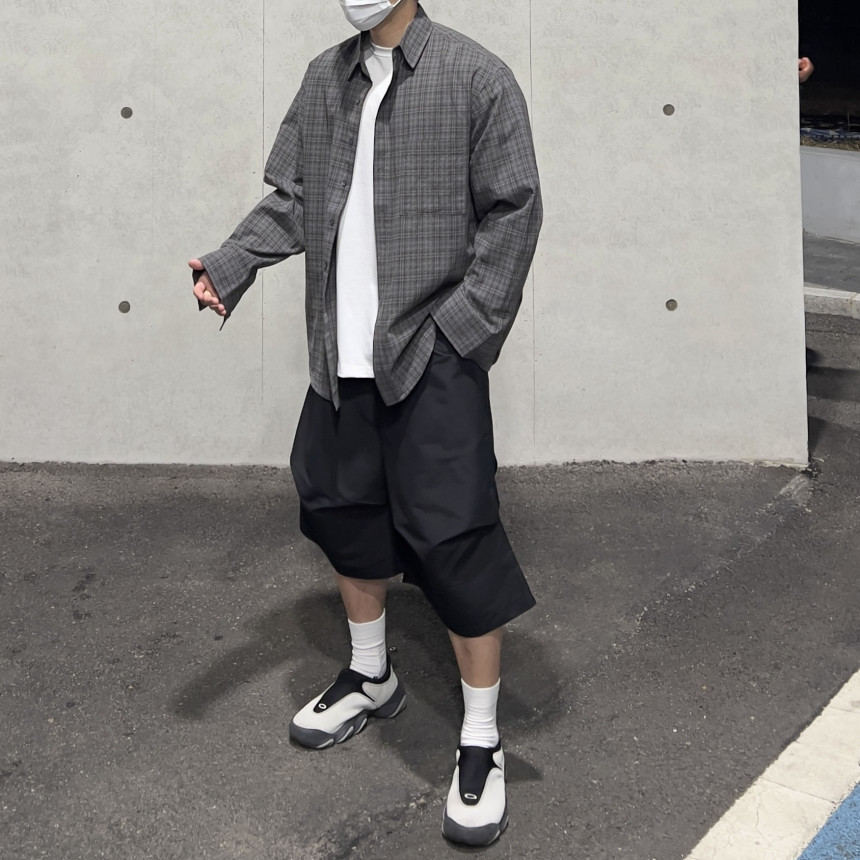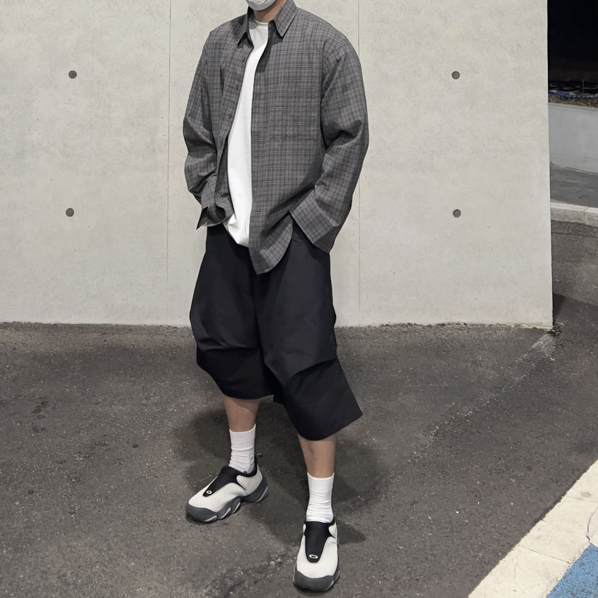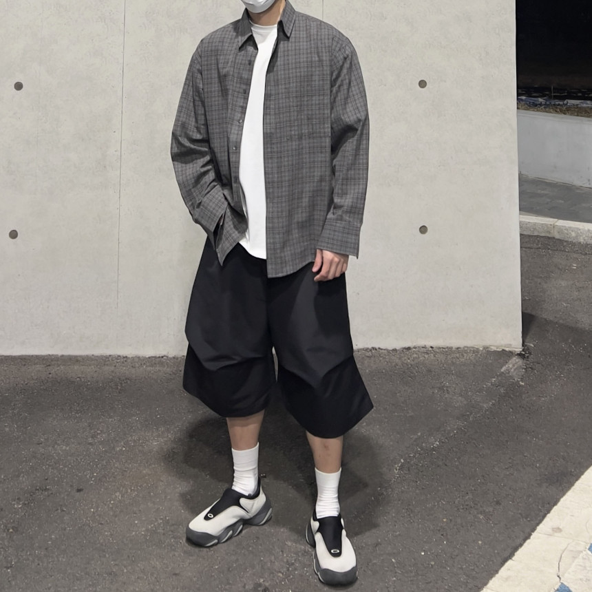 pants - knee pintuck nylon bermuda (black) <카카오채널문의>