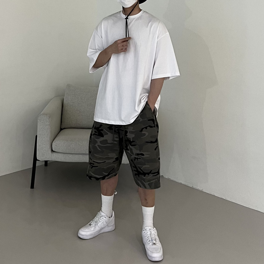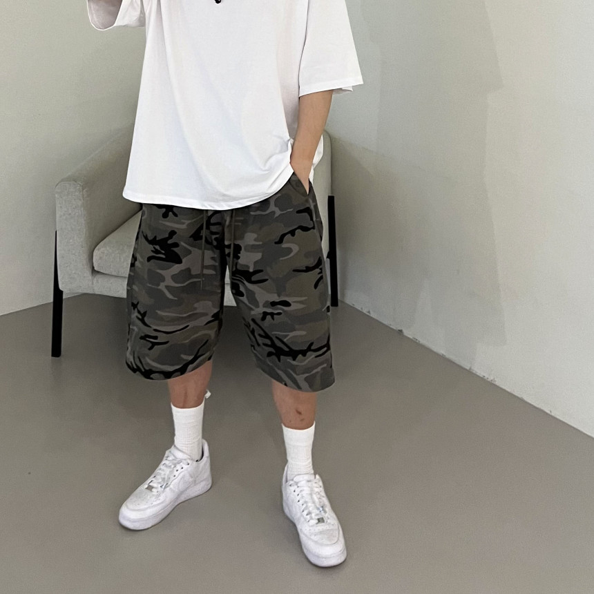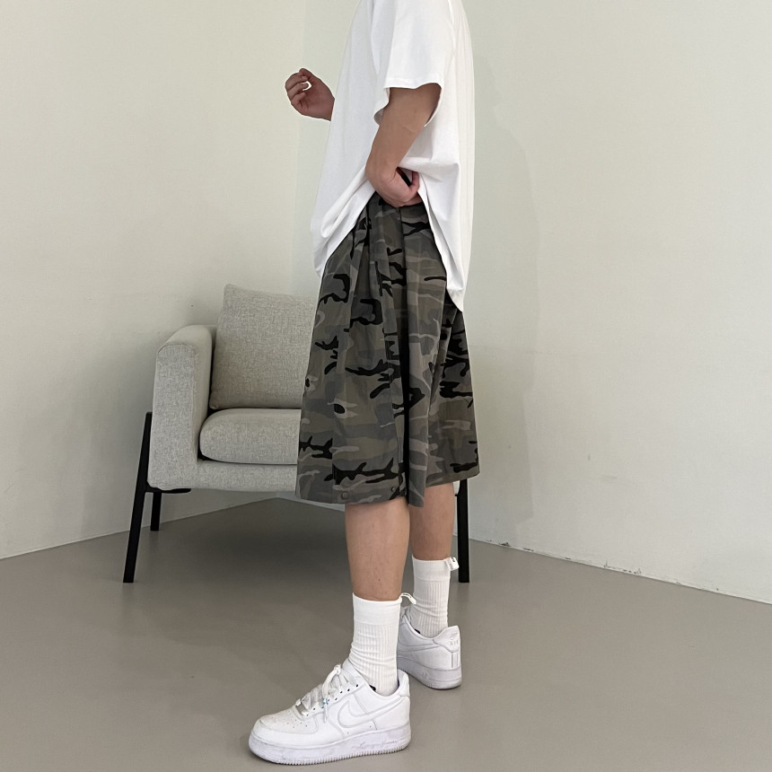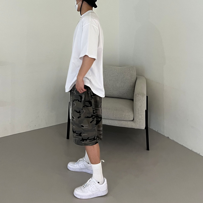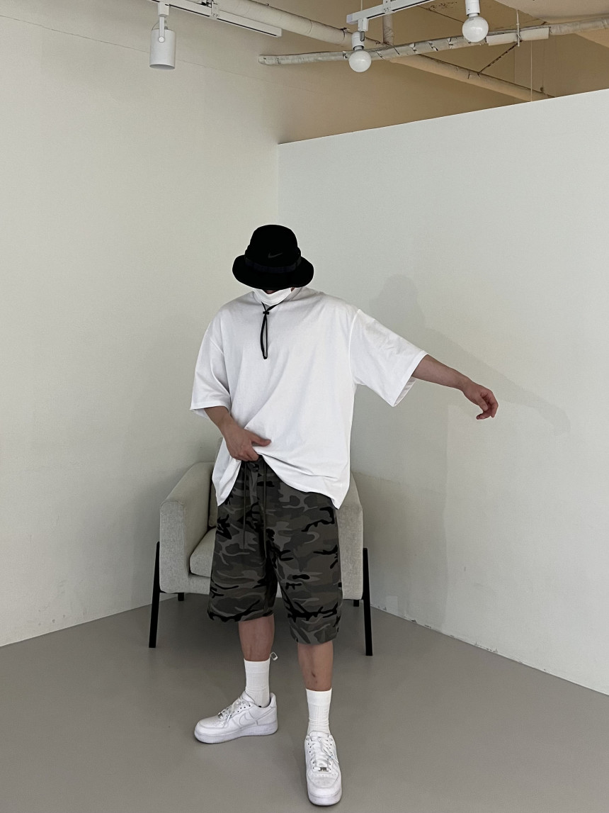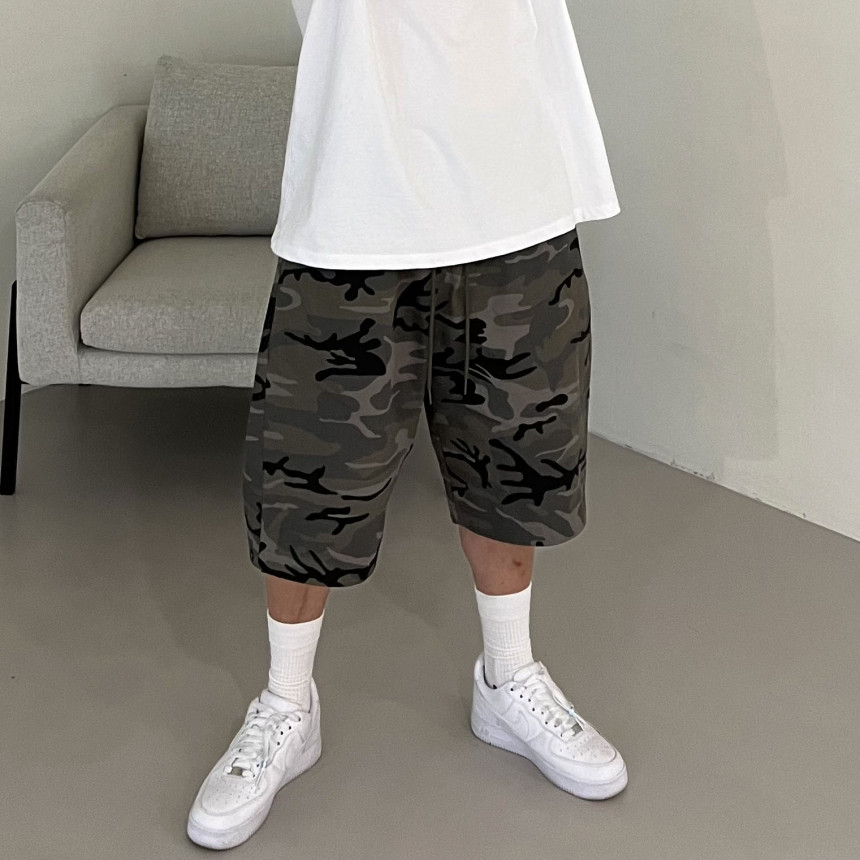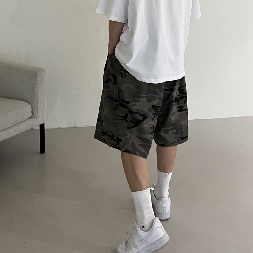와이드 한 핏 감에 기장감 있는 카모 패턴의