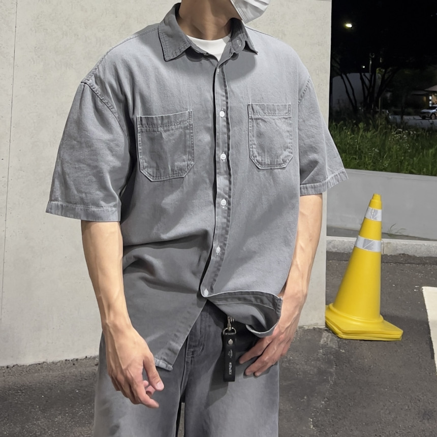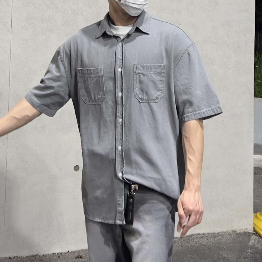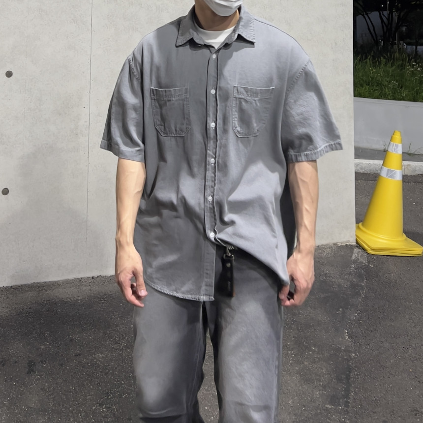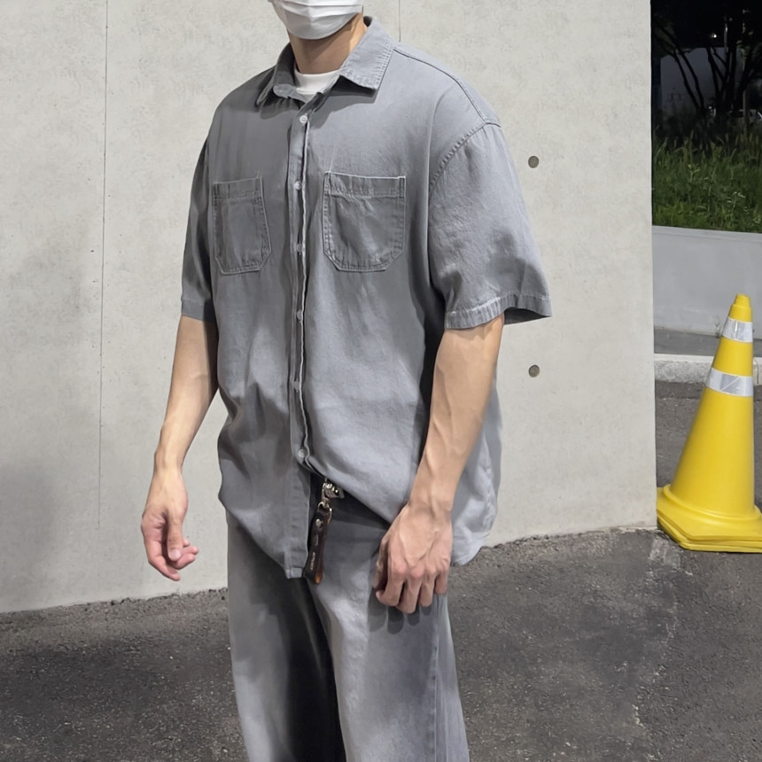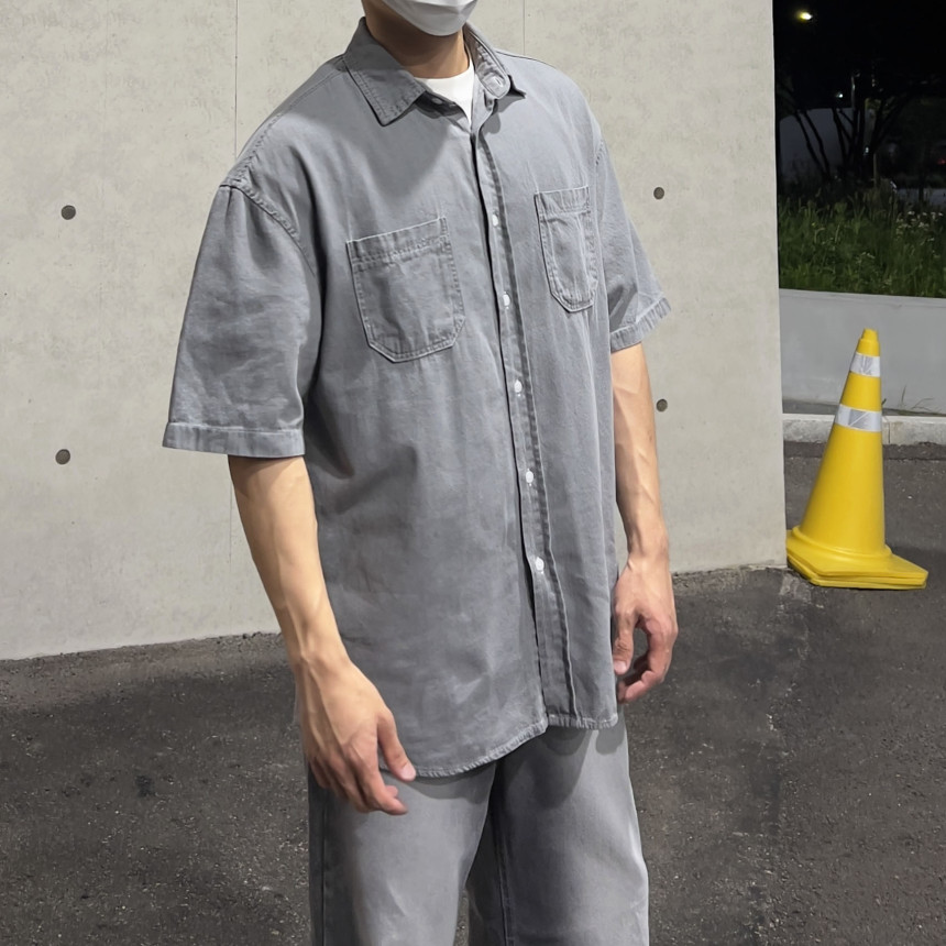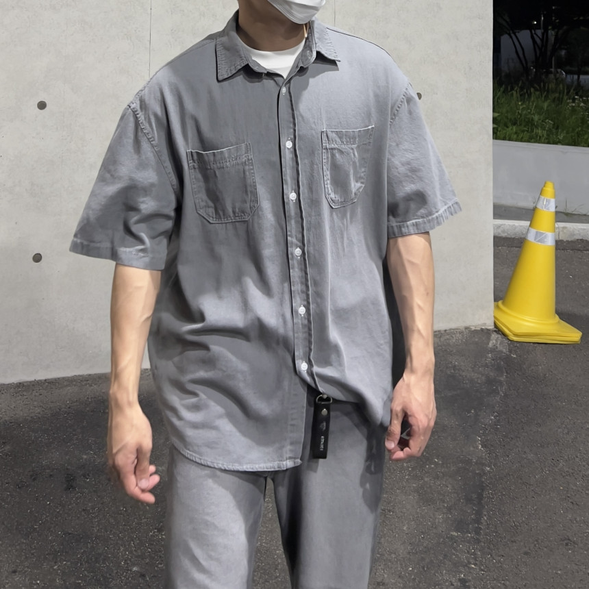 세미 오버한 핏 감에 반팔 셔츠입니다.