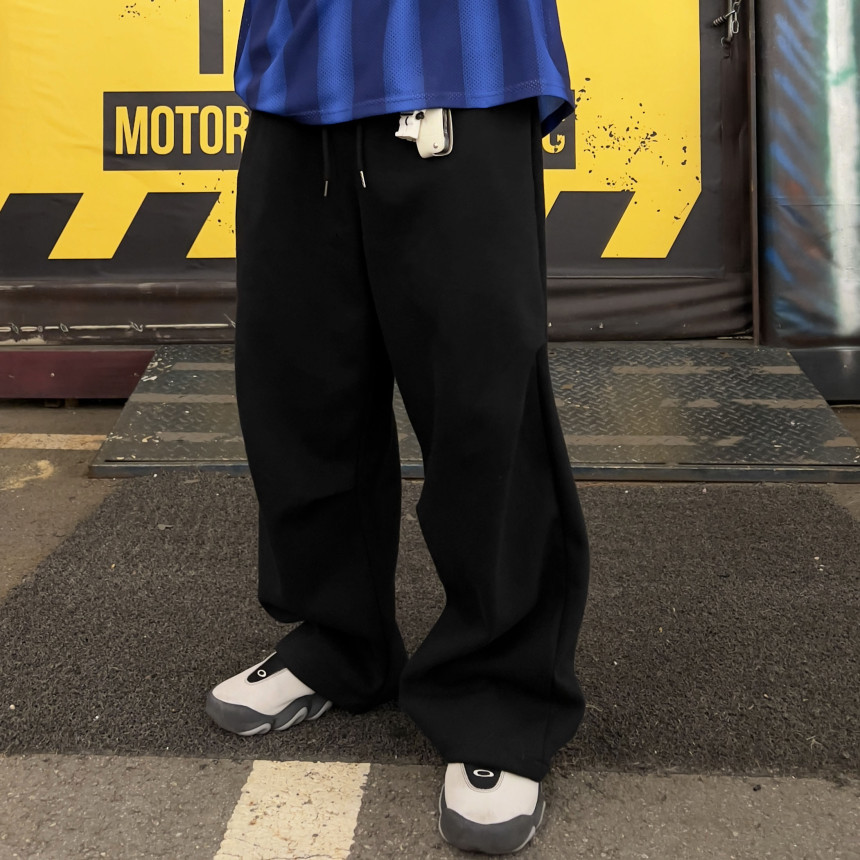 pants - knee pintuck sweat pt (black)