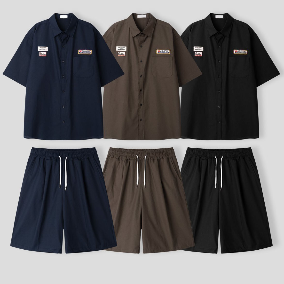 셋업으로 제작된 린넨 버뮤다 팬츠와