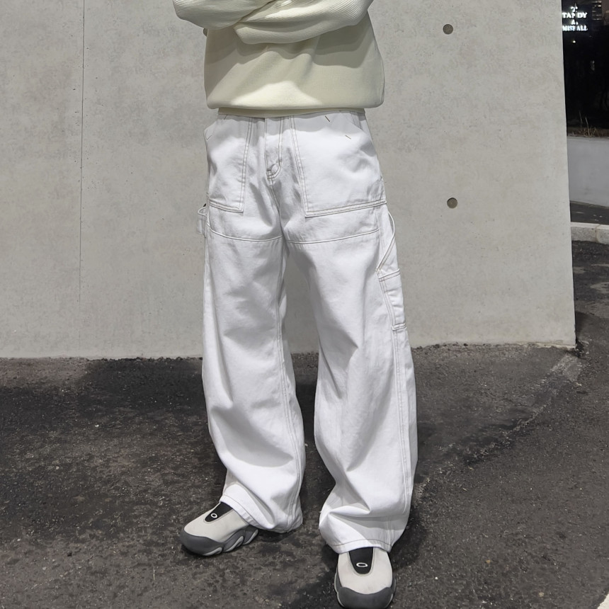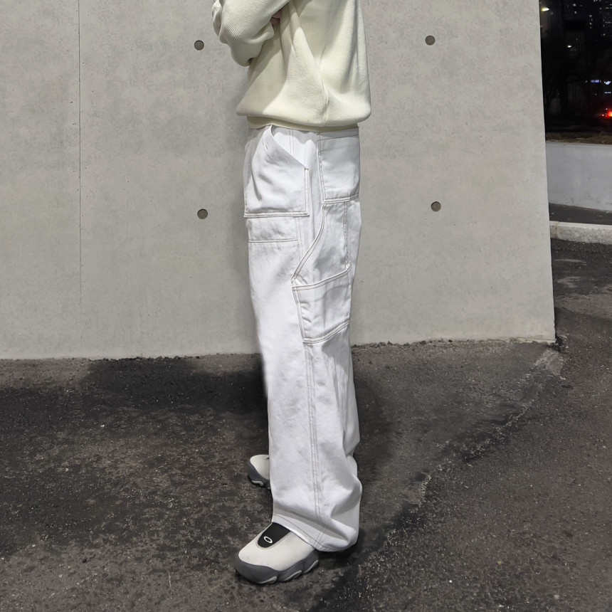 pants - 퍼티그 워크 팬츠 (white) S 착용