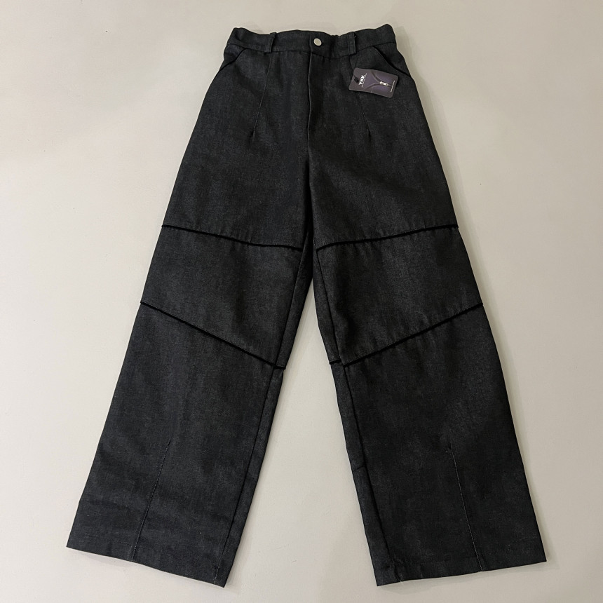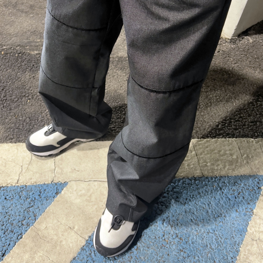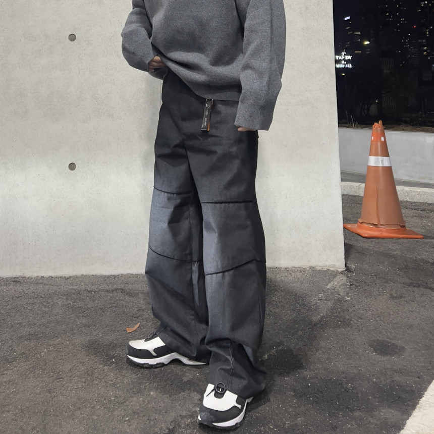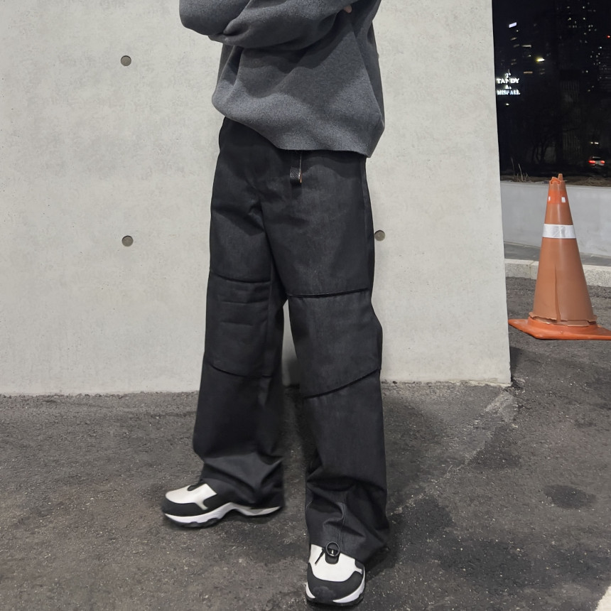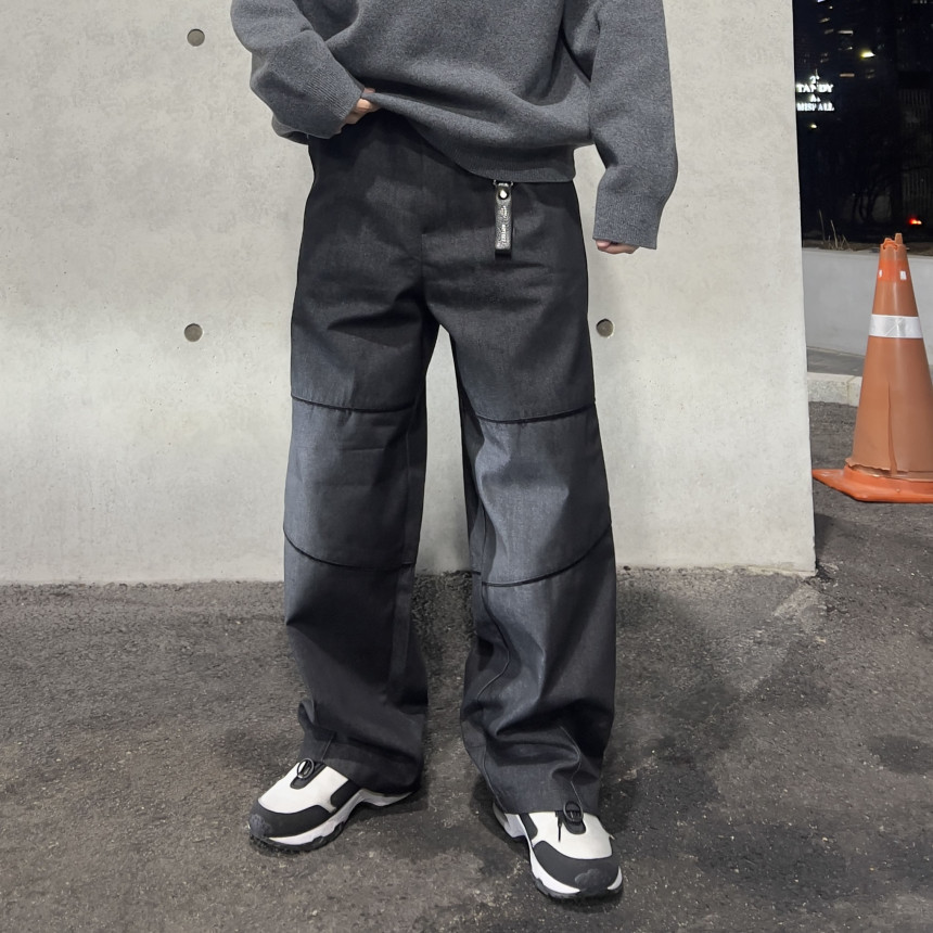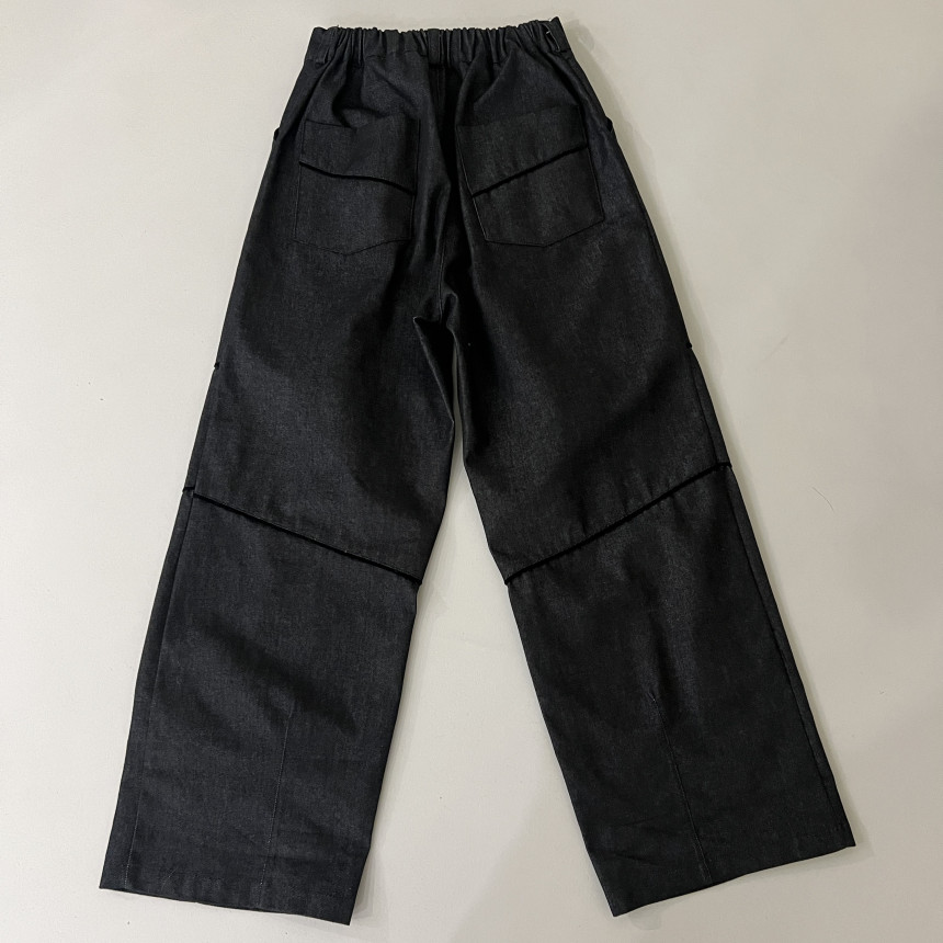 - 벨벳 소재로 라인이 들어간 뒷 밴딩 팬츠