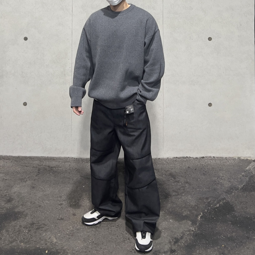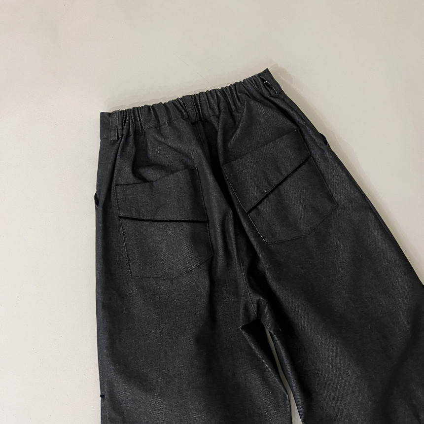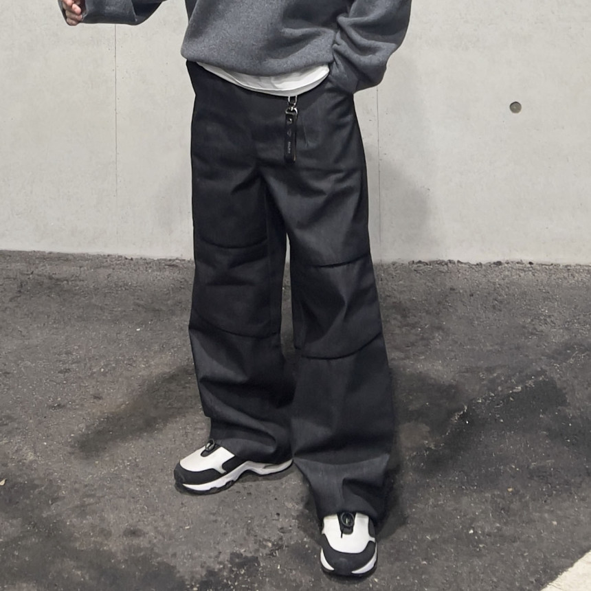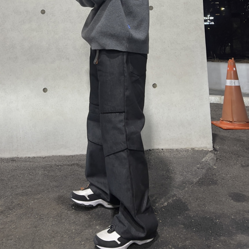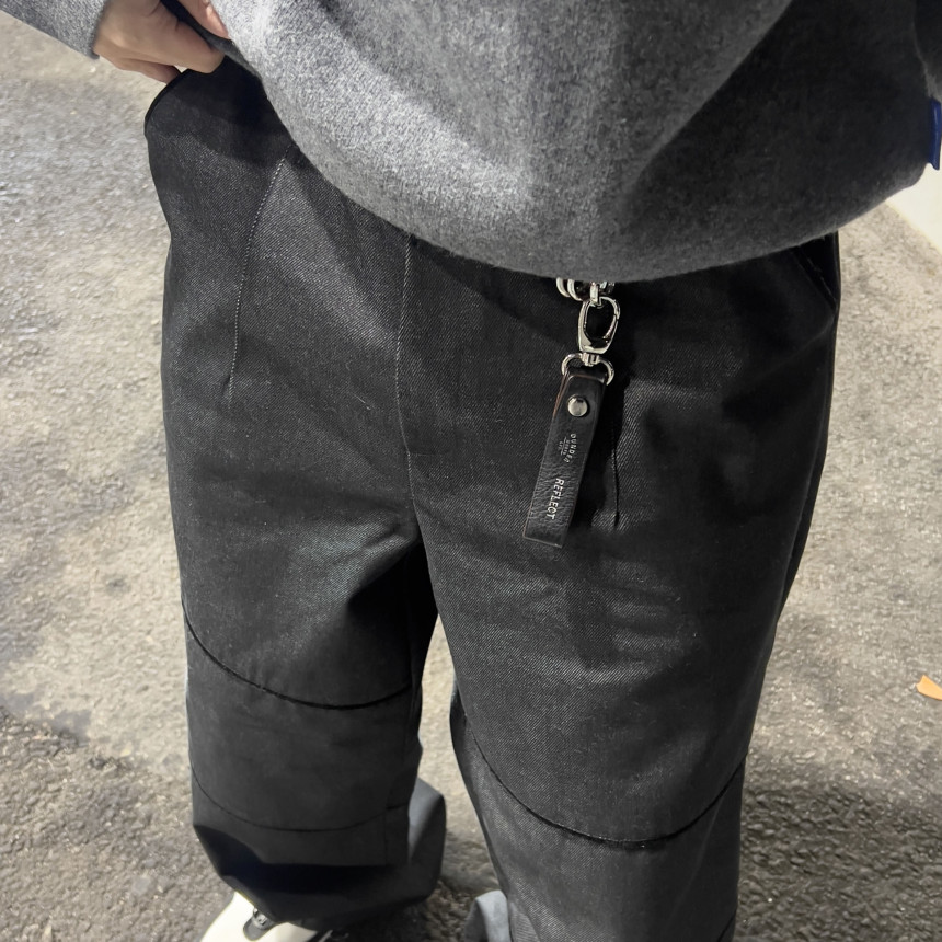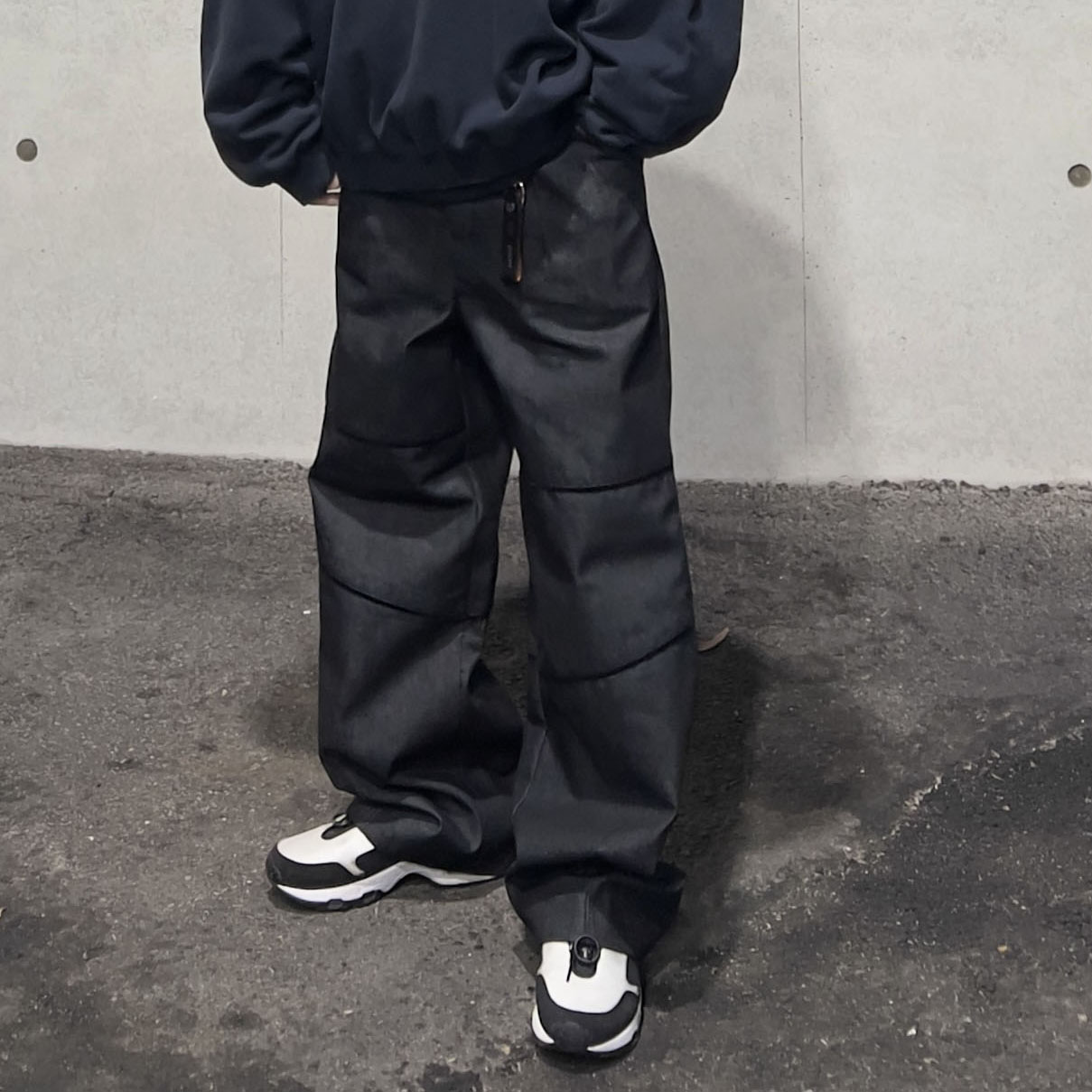 - 벨벳 소재로 라인이 들어간 뒷 밴딩 팬츠
