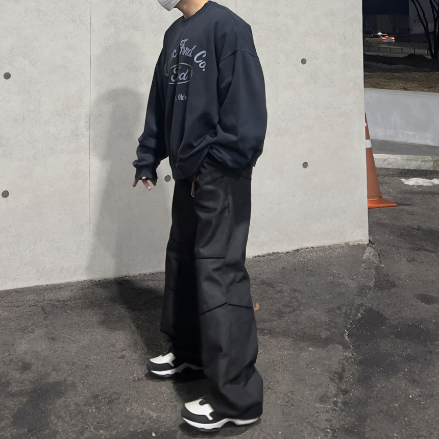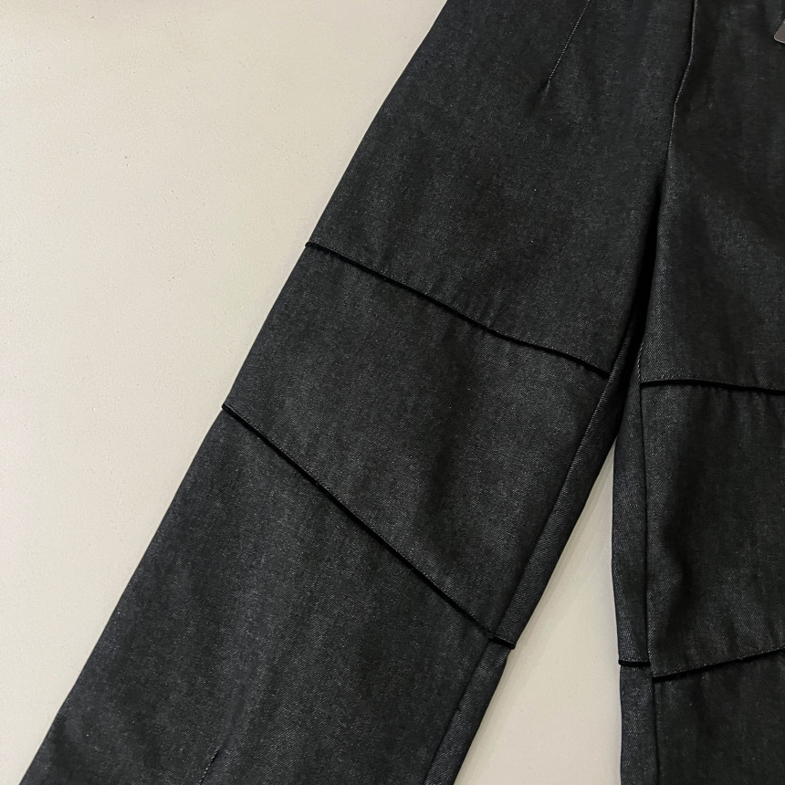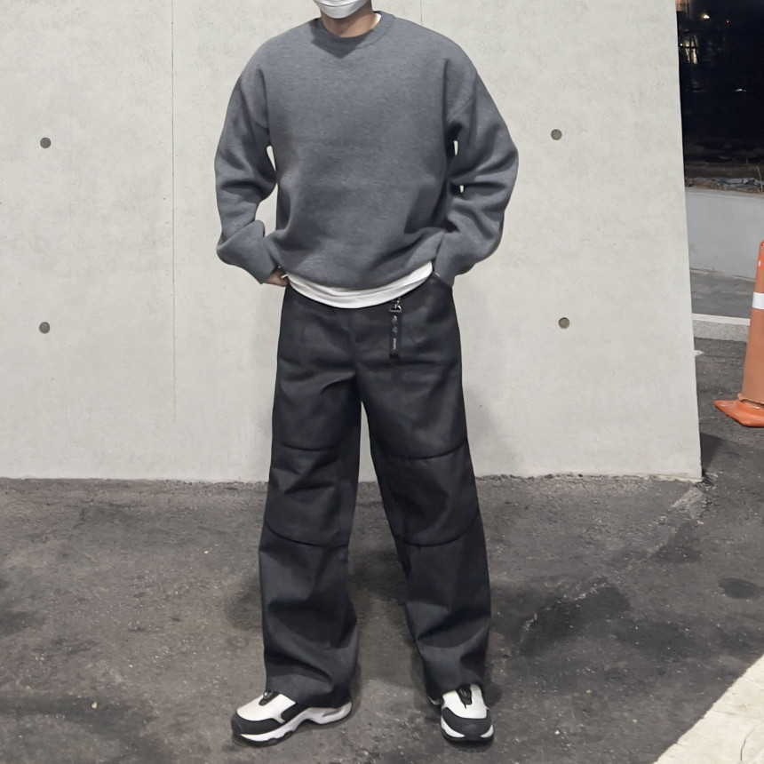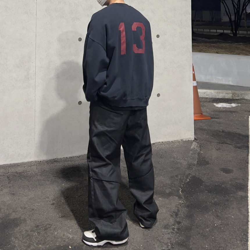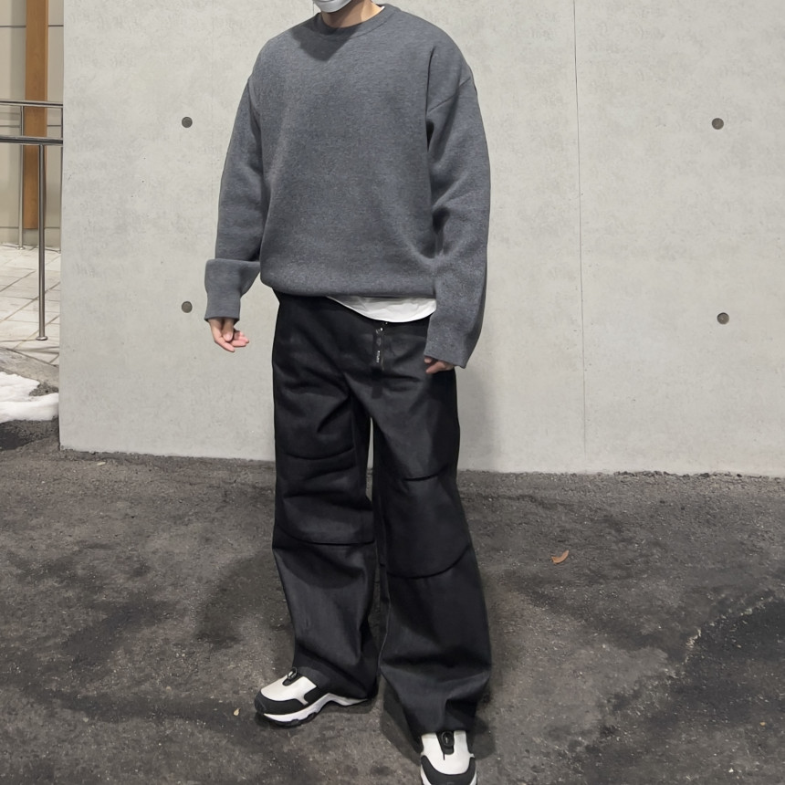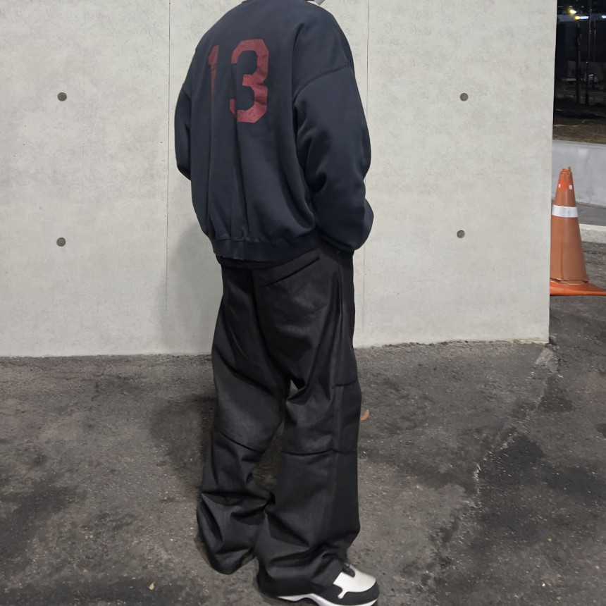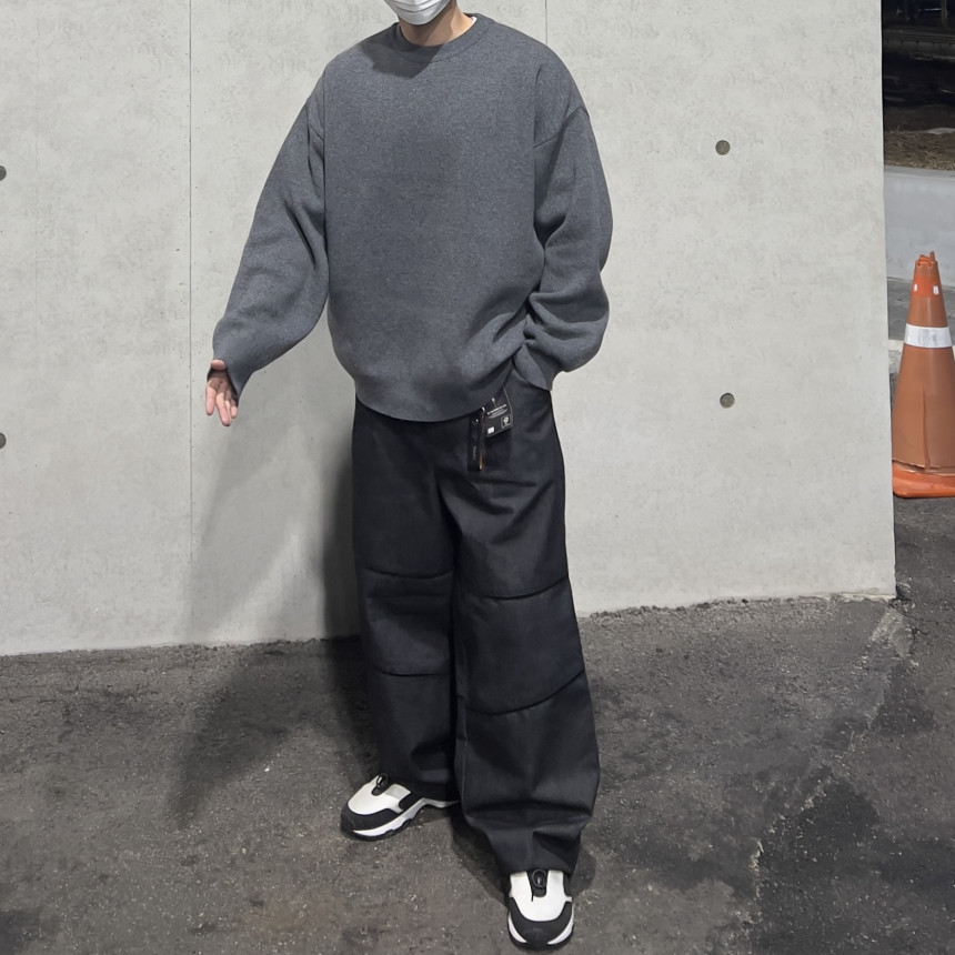 - 벨벳 소재로 라인이 들어간 뒷 밴딩 팬츠