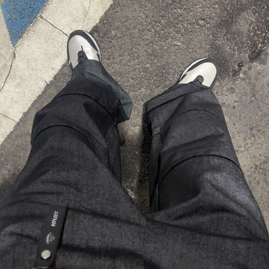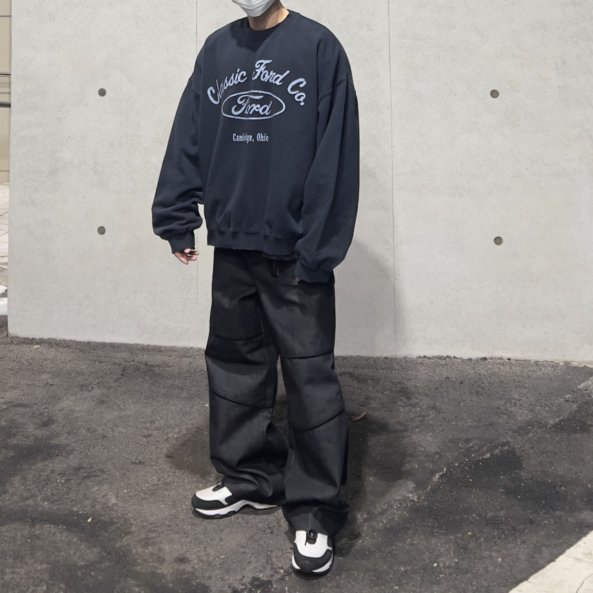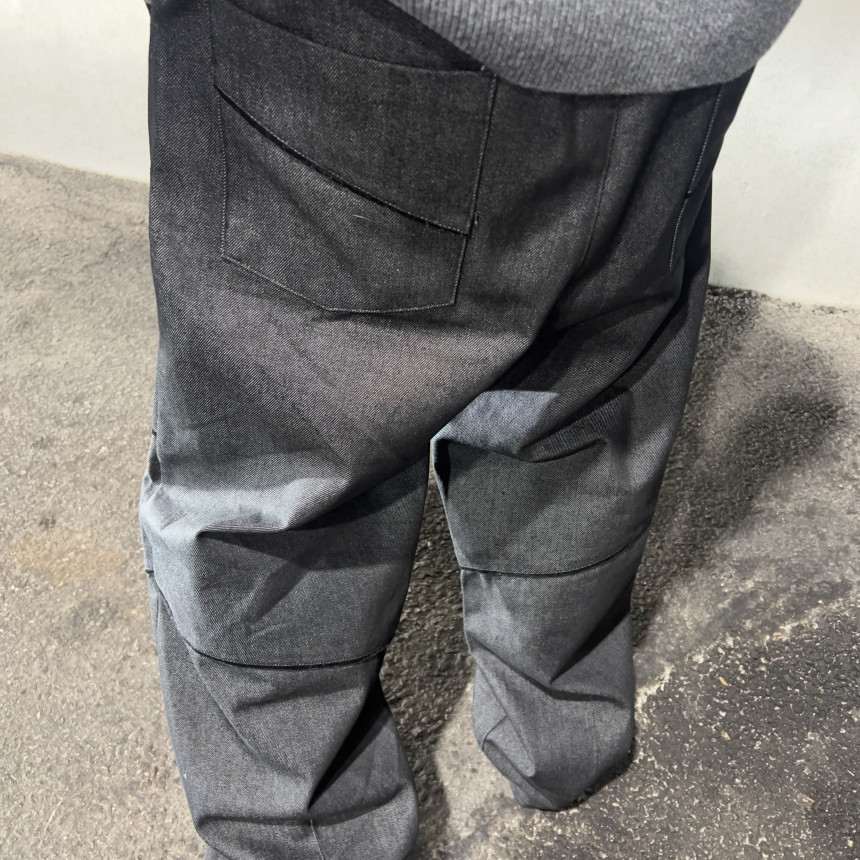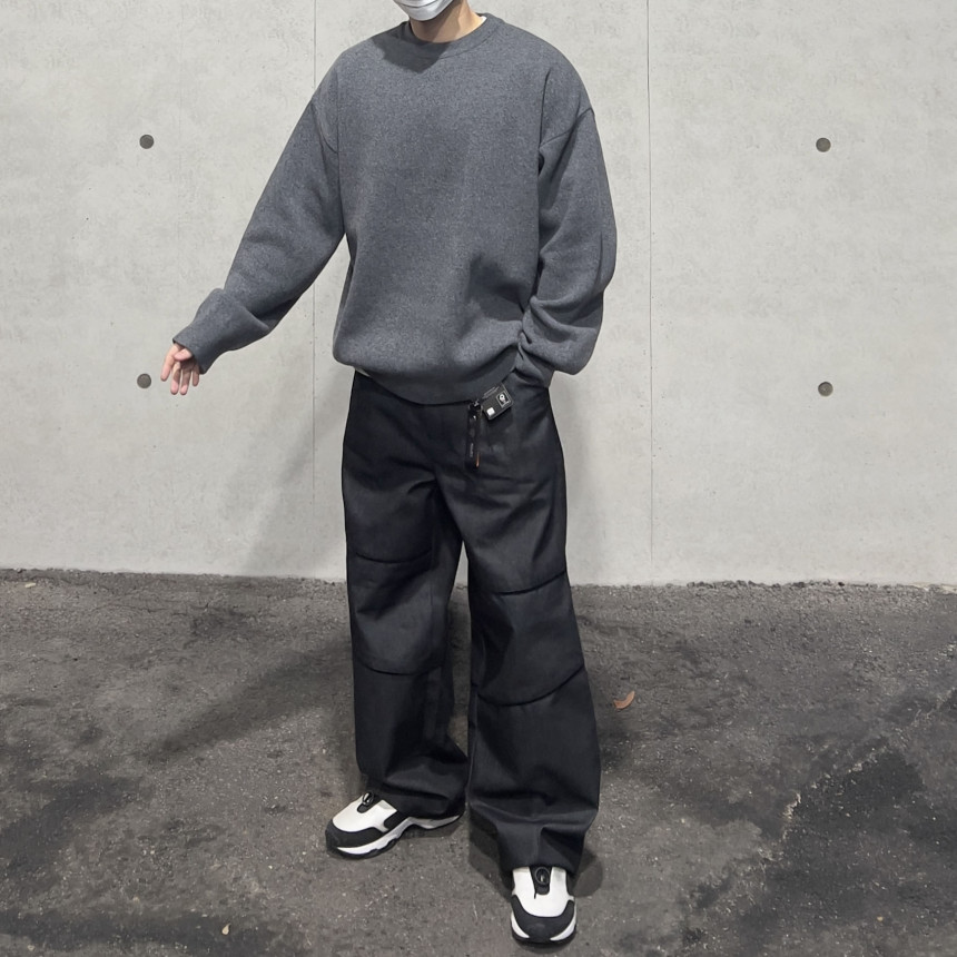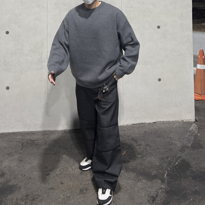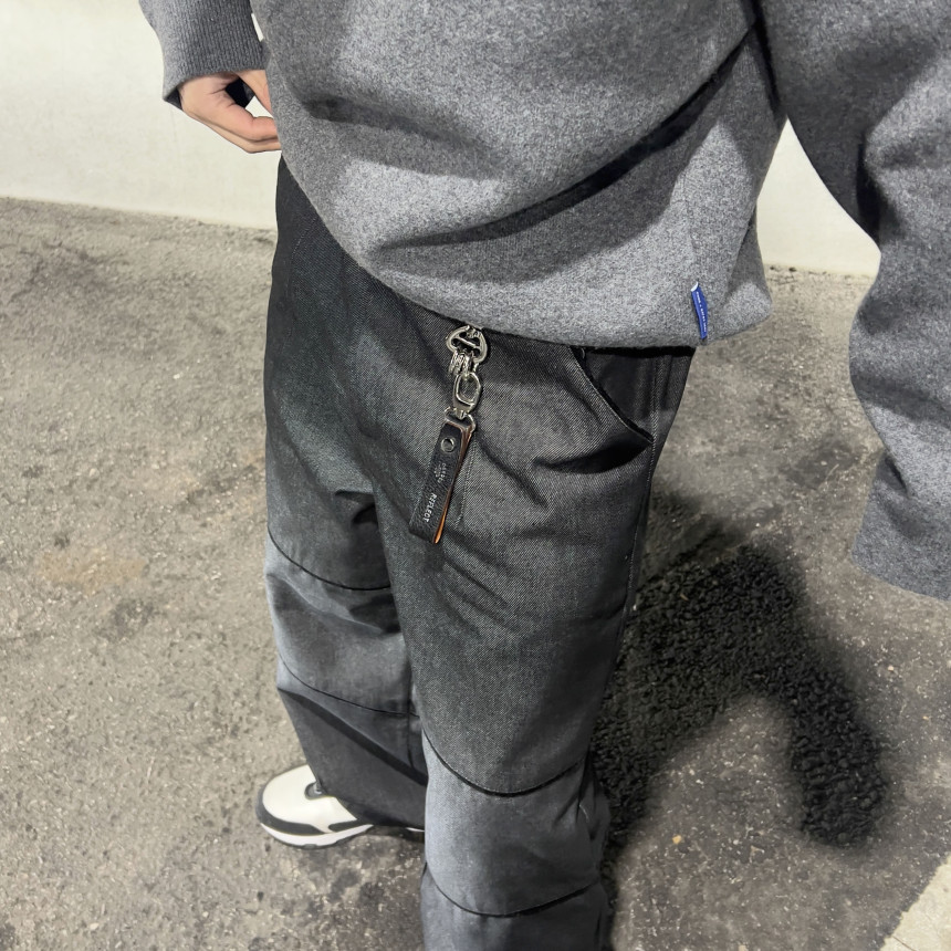 - 벨벳 소재로 라인이 들어간 뒷 밴딩 팬츠