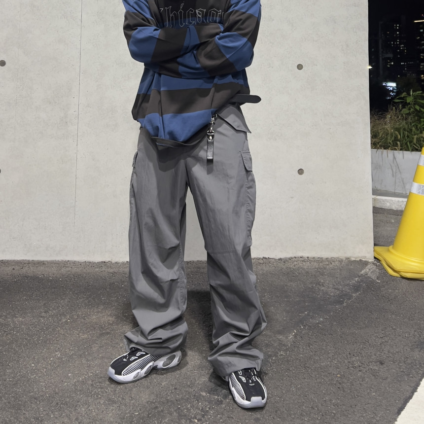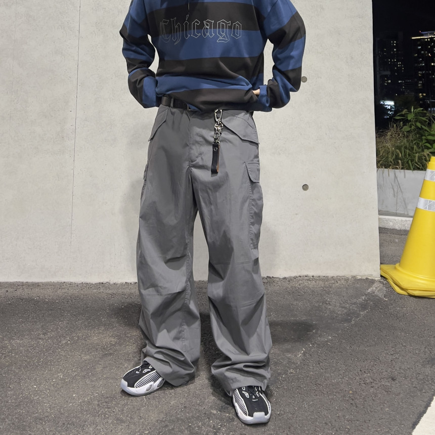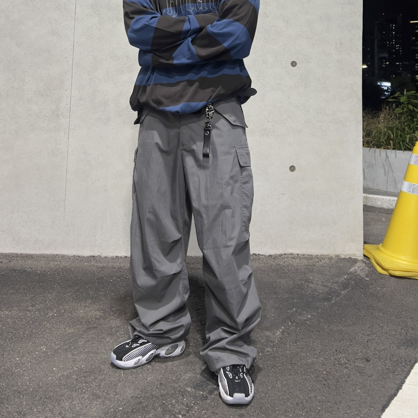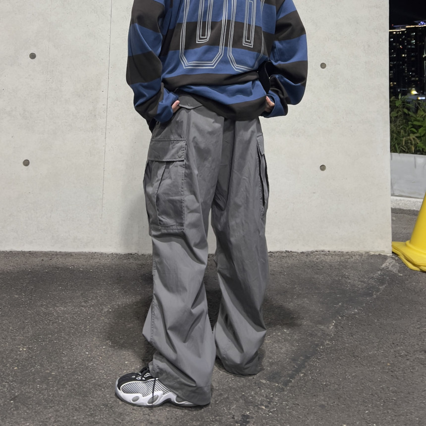 pants - pintuck cargo wide pants (grey)
