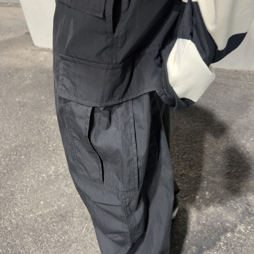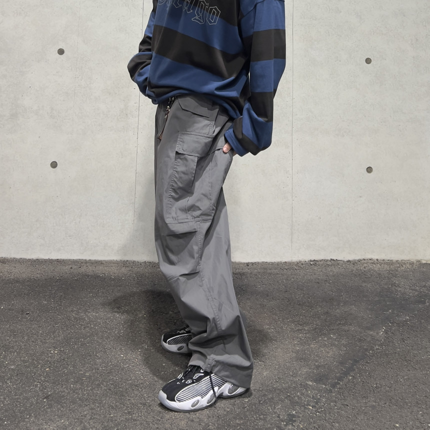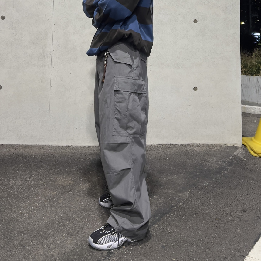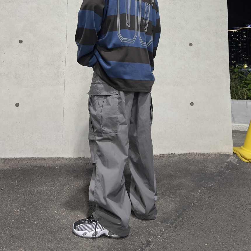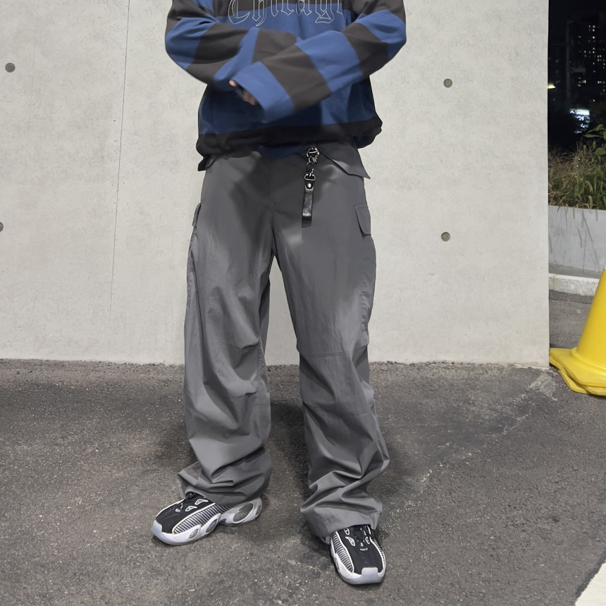 pants - pintuck cargo wide pants (grey)