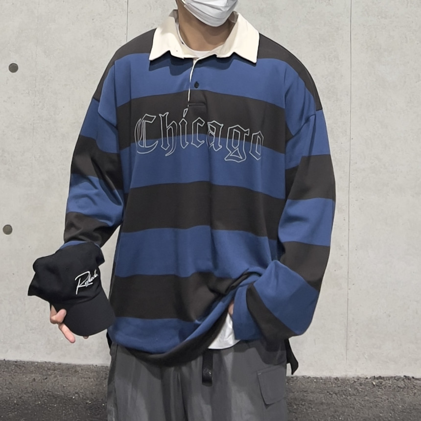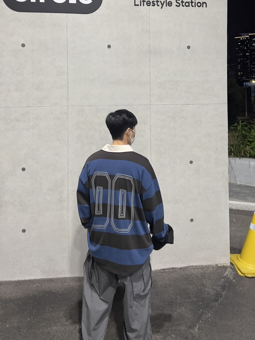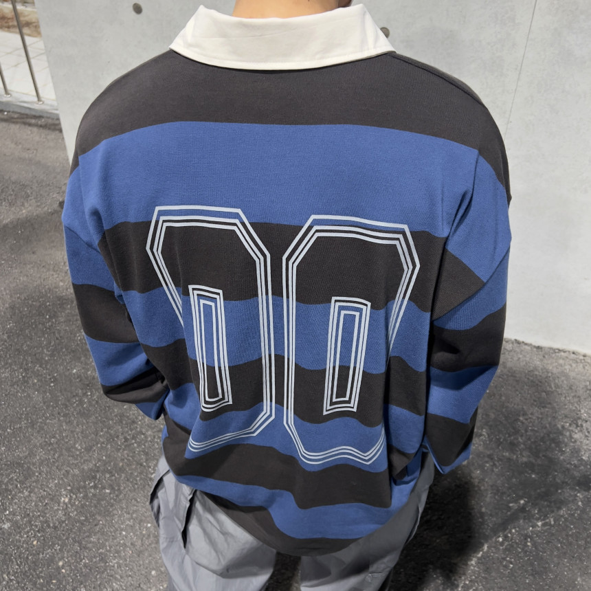 top - number collar over T (navy)
