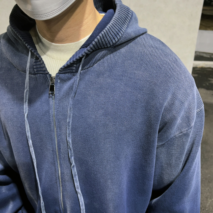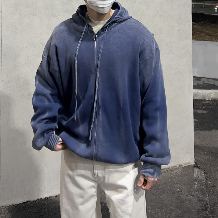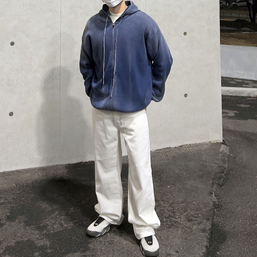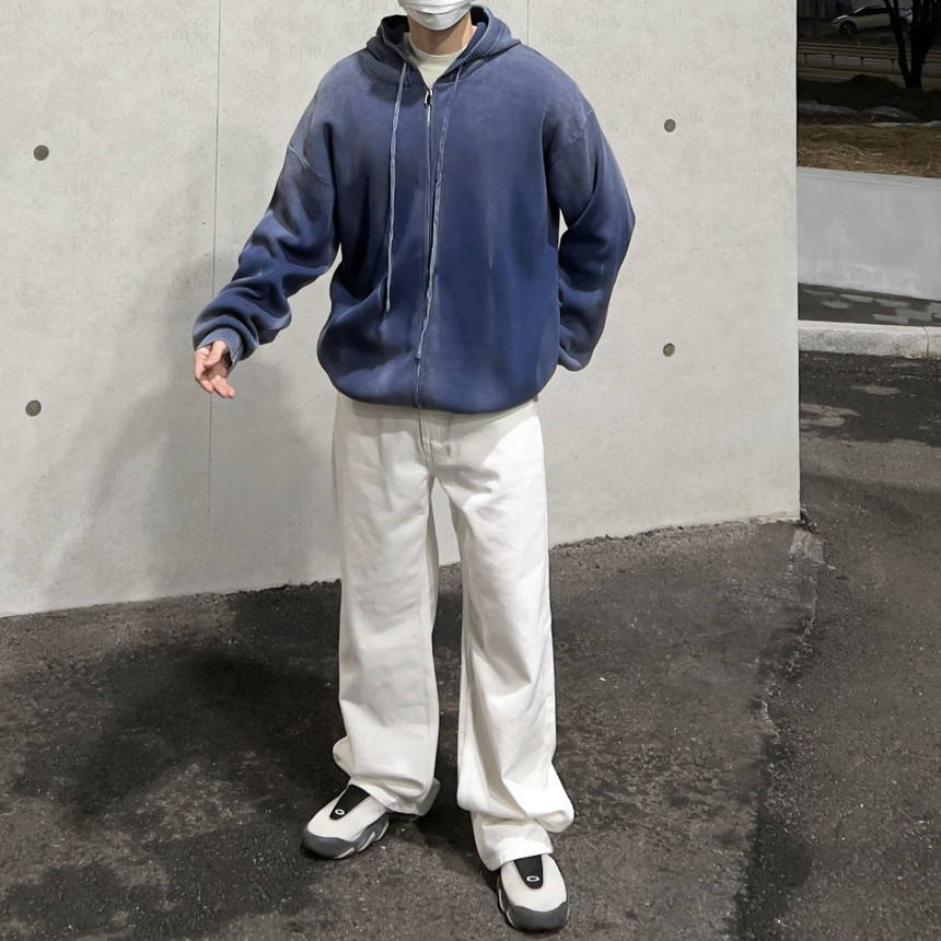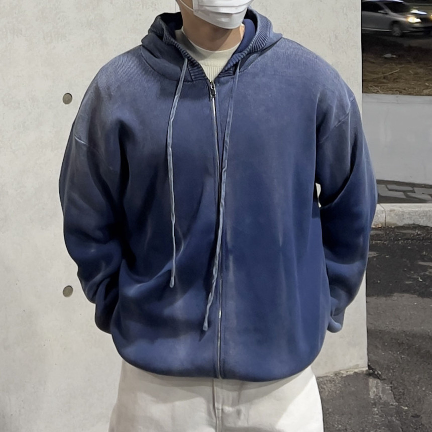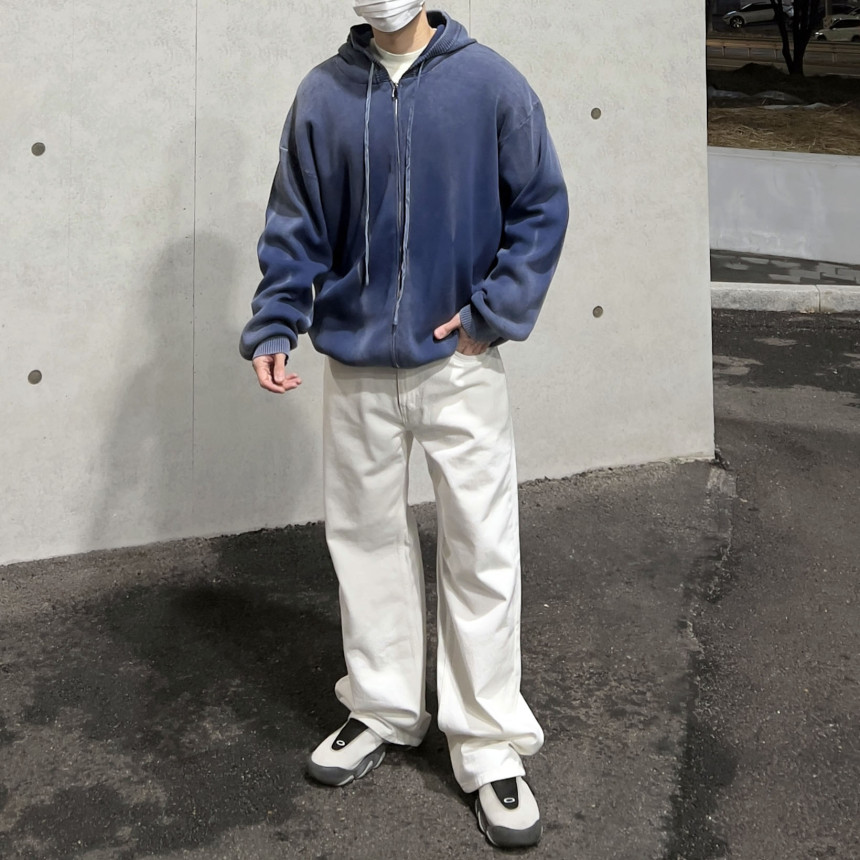 - 워싱 공정을 거쳐 세탁 시 축률 최소화 / 이후 수작업 스프레이 염색 / 투 웨이 지퍼 사용