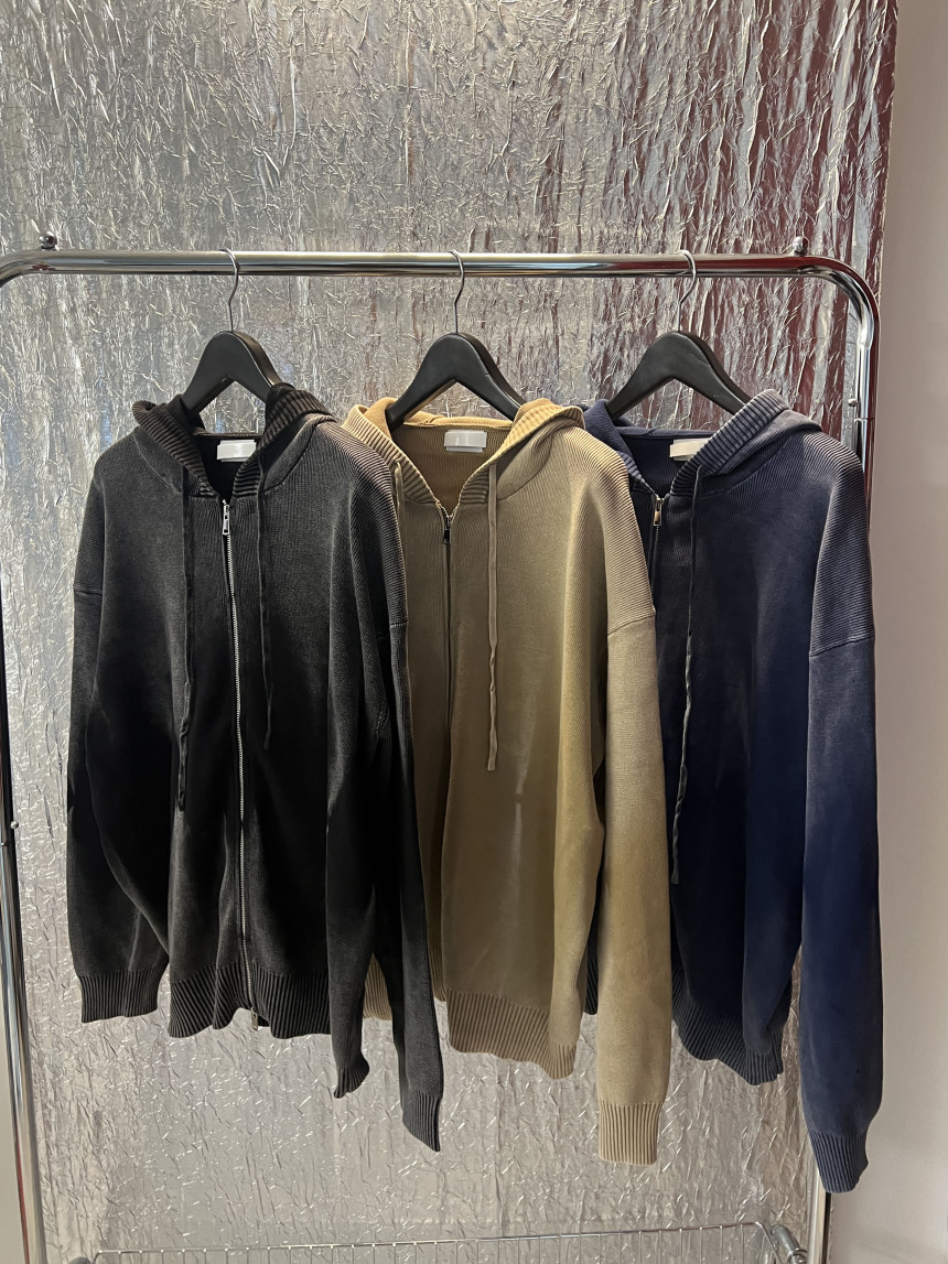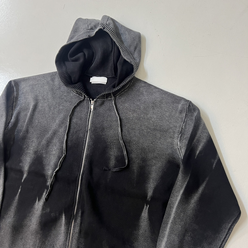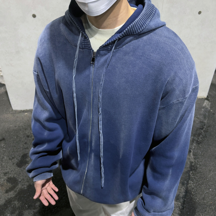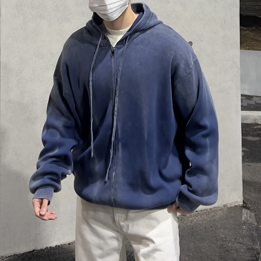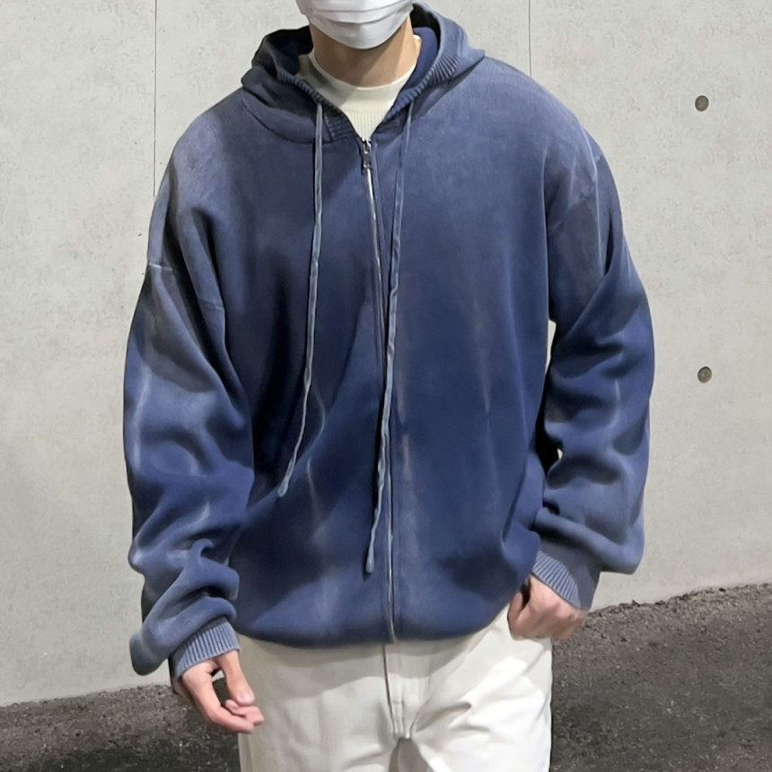 - 워싱 공정을 거쳐 세탁 시 축률 최소화 / 이후 수작업 스프레이 염색 / 투 웨이 지퍼 사용