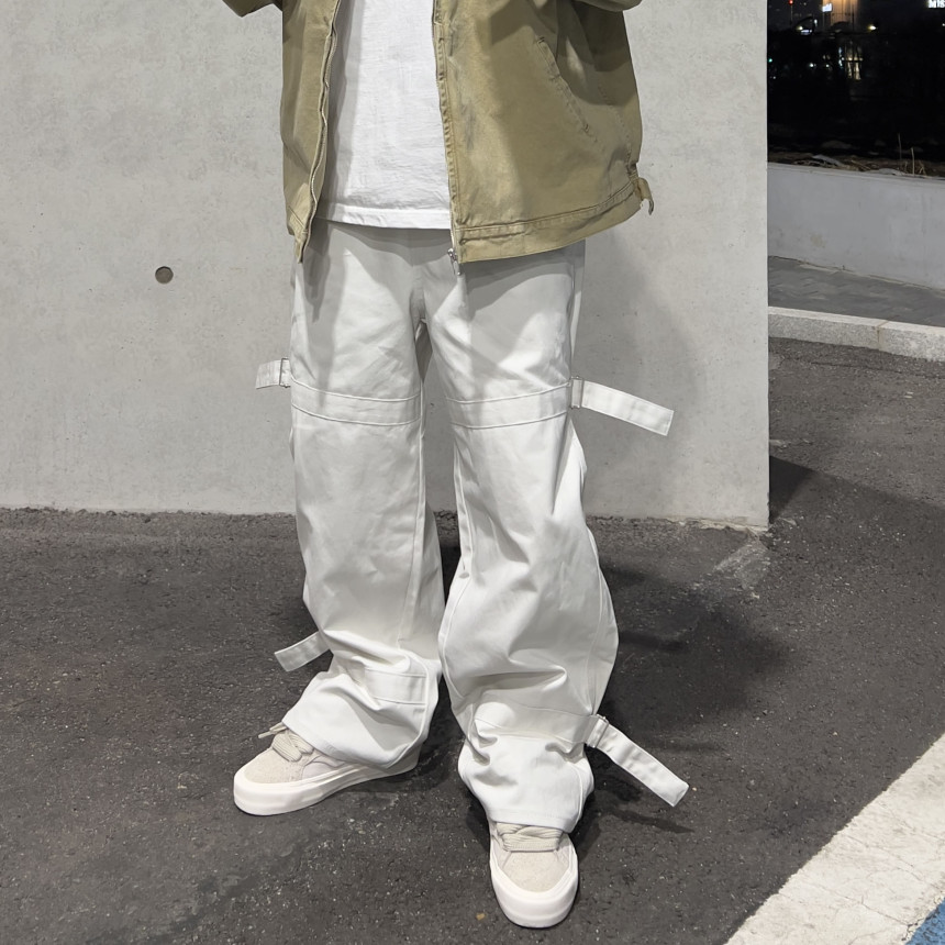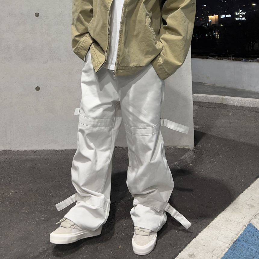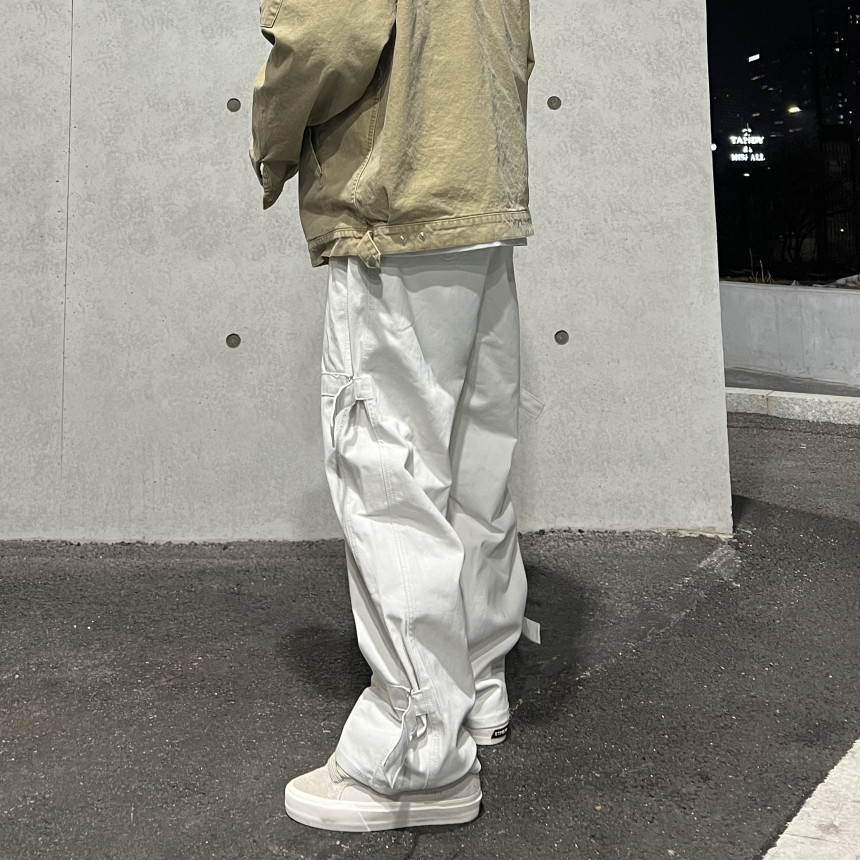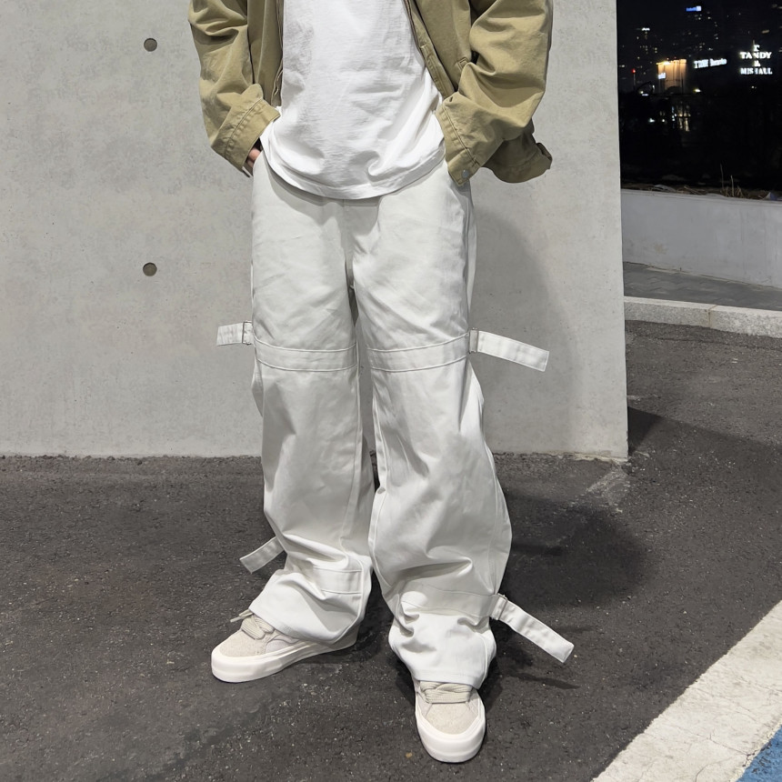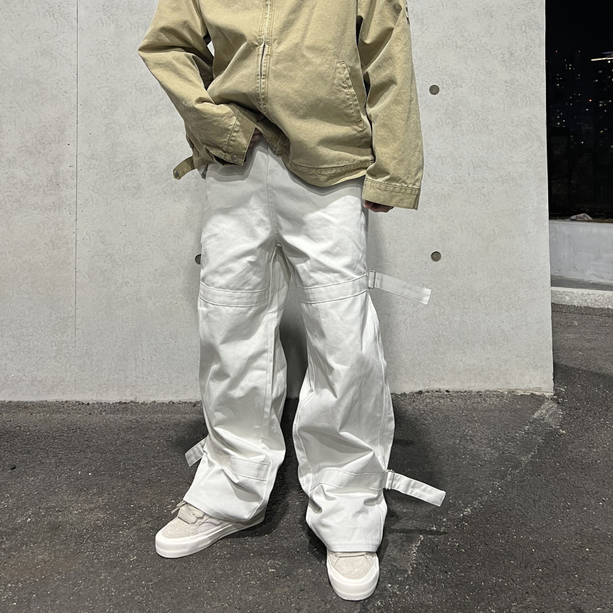 - 코튼 소재의 와이드 한 핏 감이지만 벨트 조절로 핏 감을 조절하실 수 있는 디자인