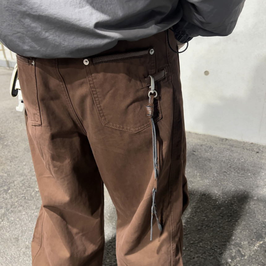 - 키링이 포함되어 있는 커브드 치노 팬츠