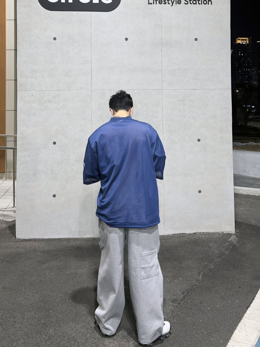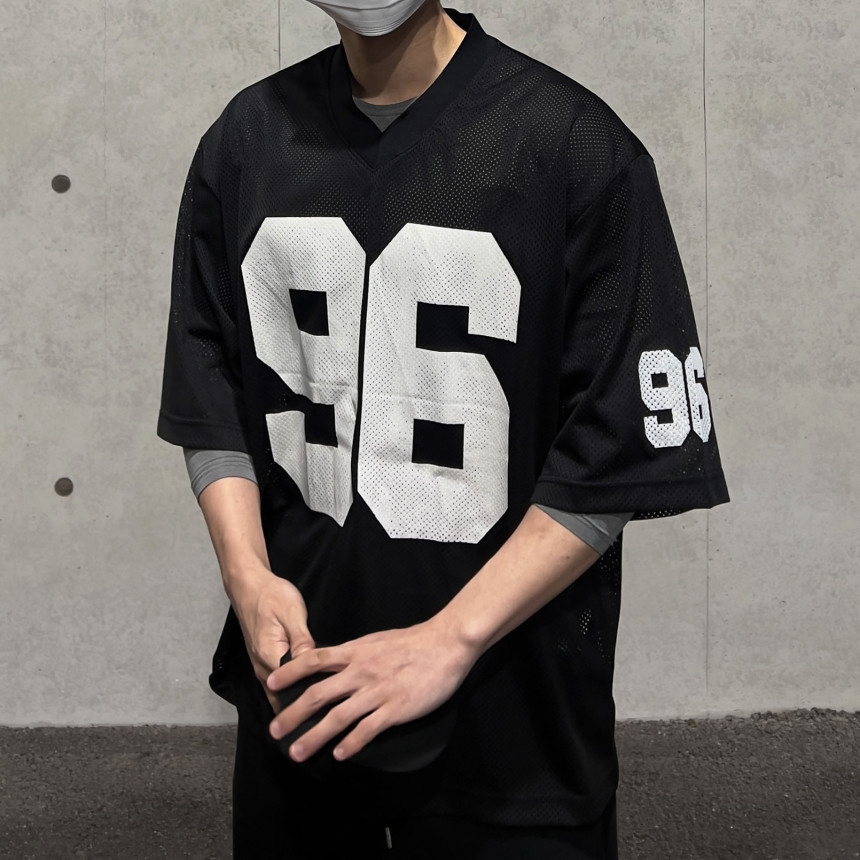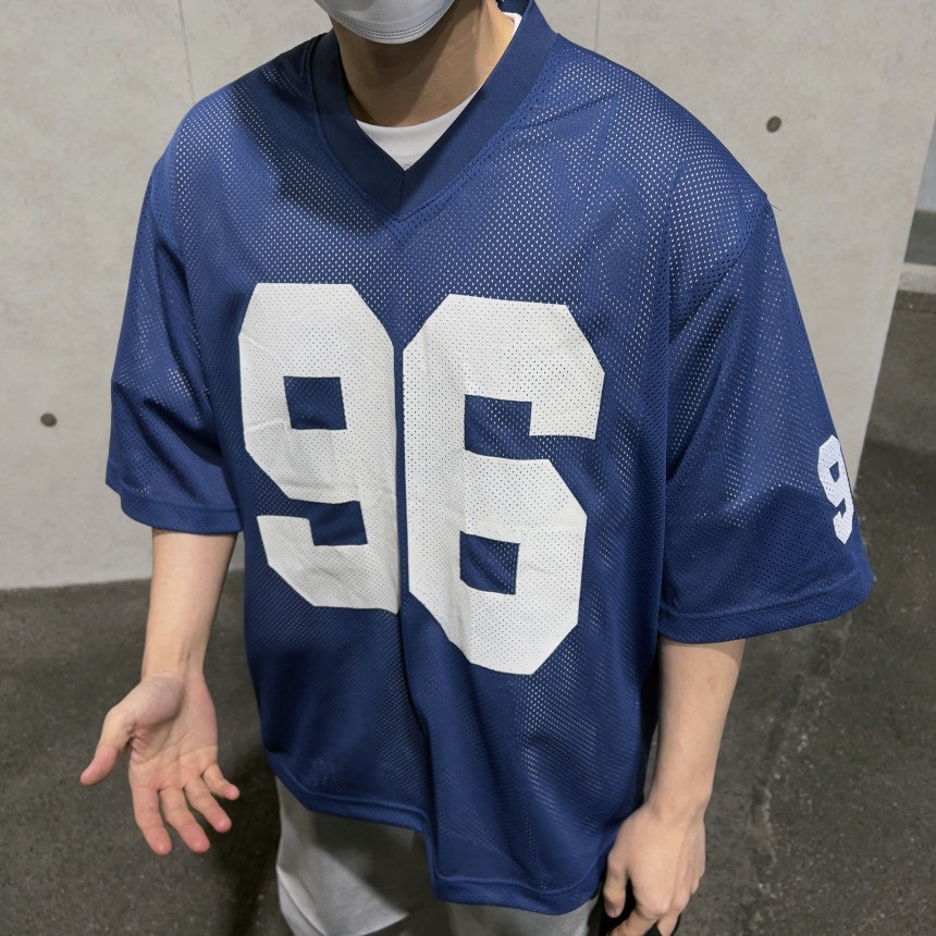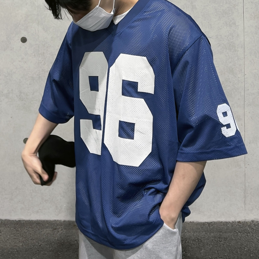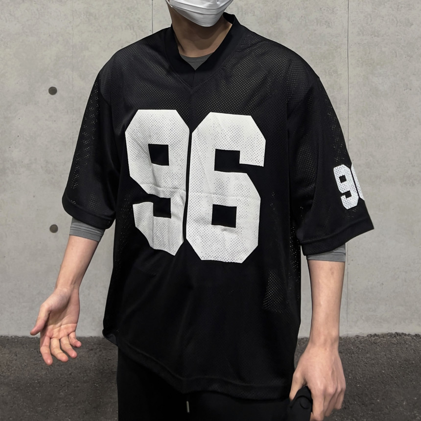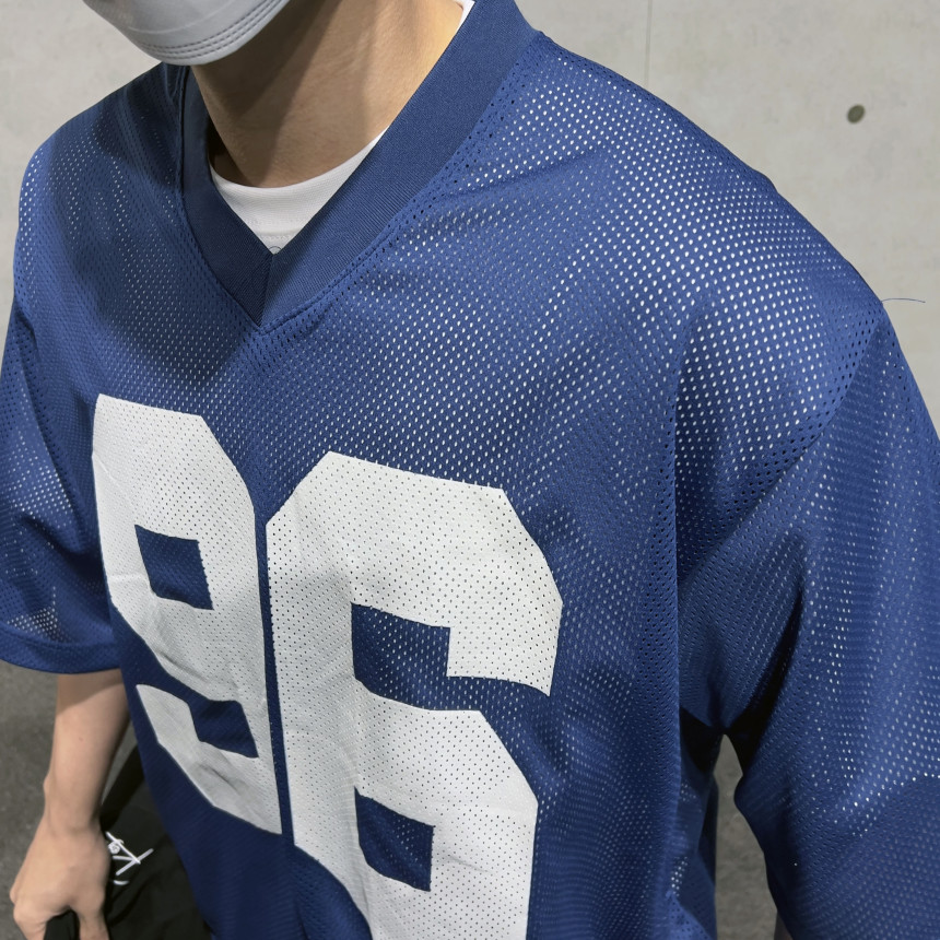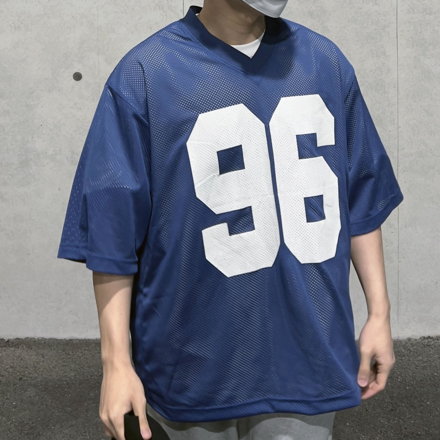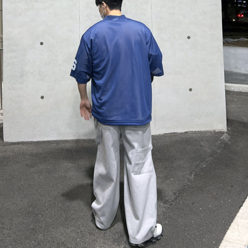 - 오버한 드롭 숄더 디자인에 매쉬 져지