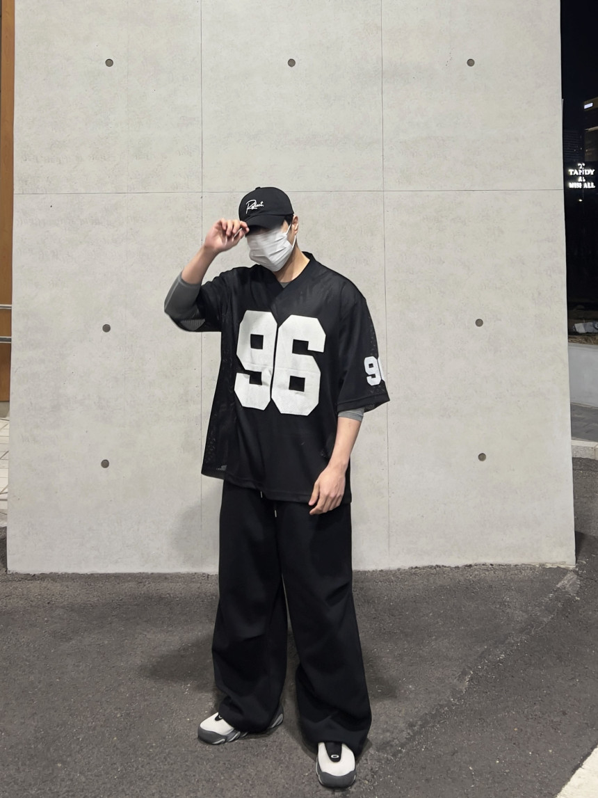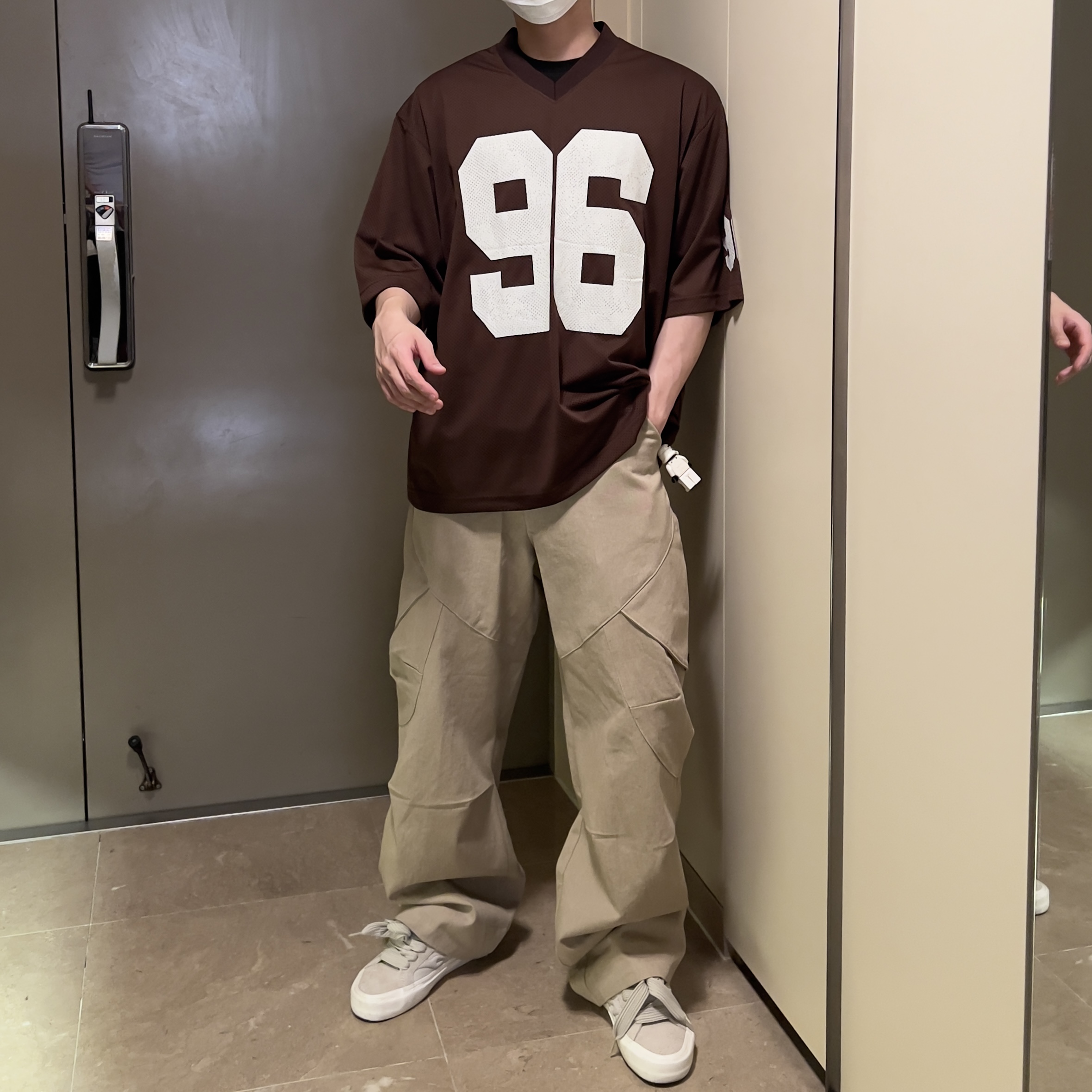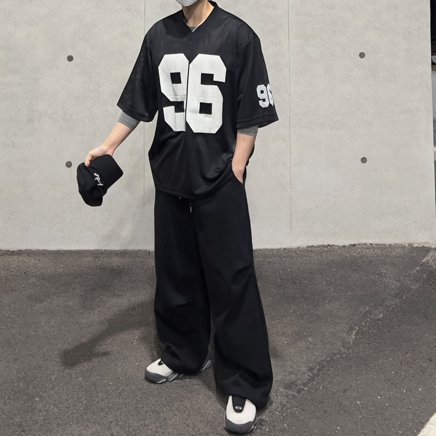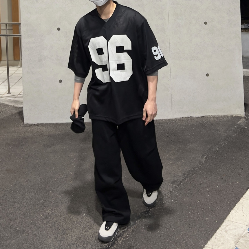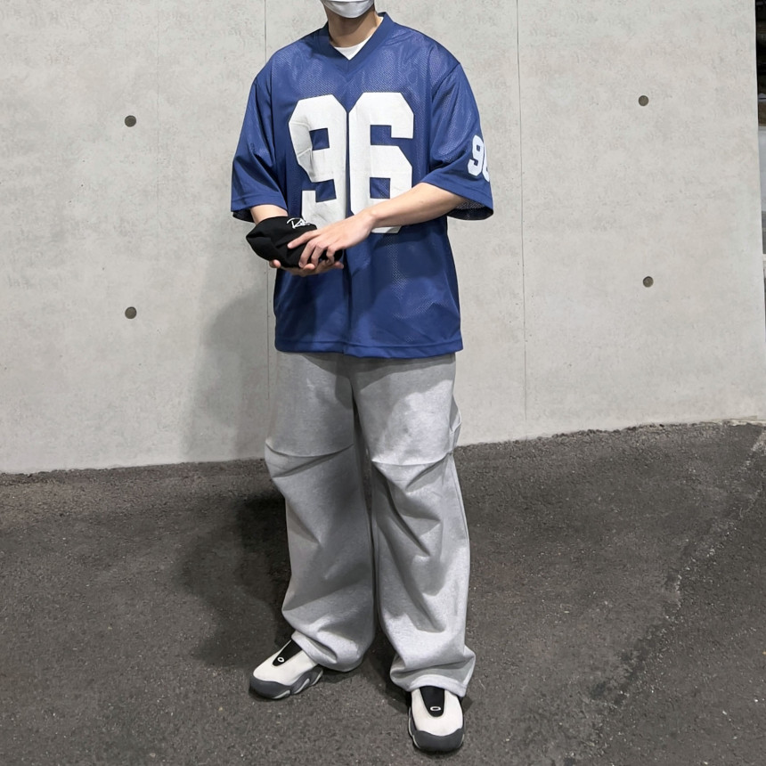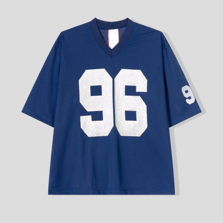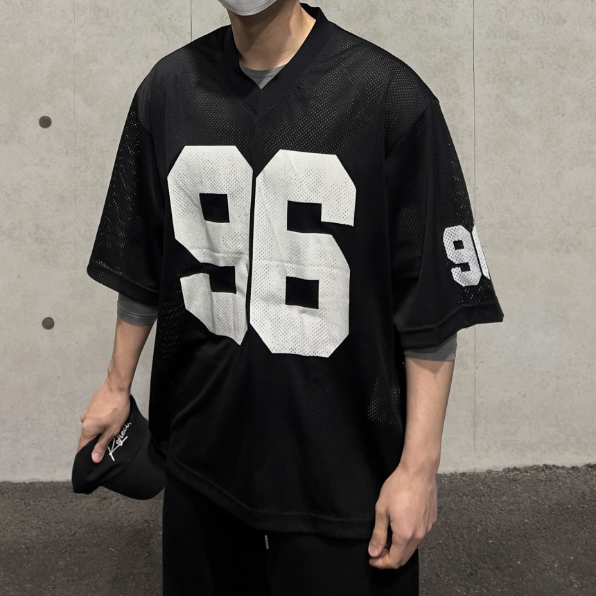 - 오버한 드롭 숄더 디자인에 매쉬 져지