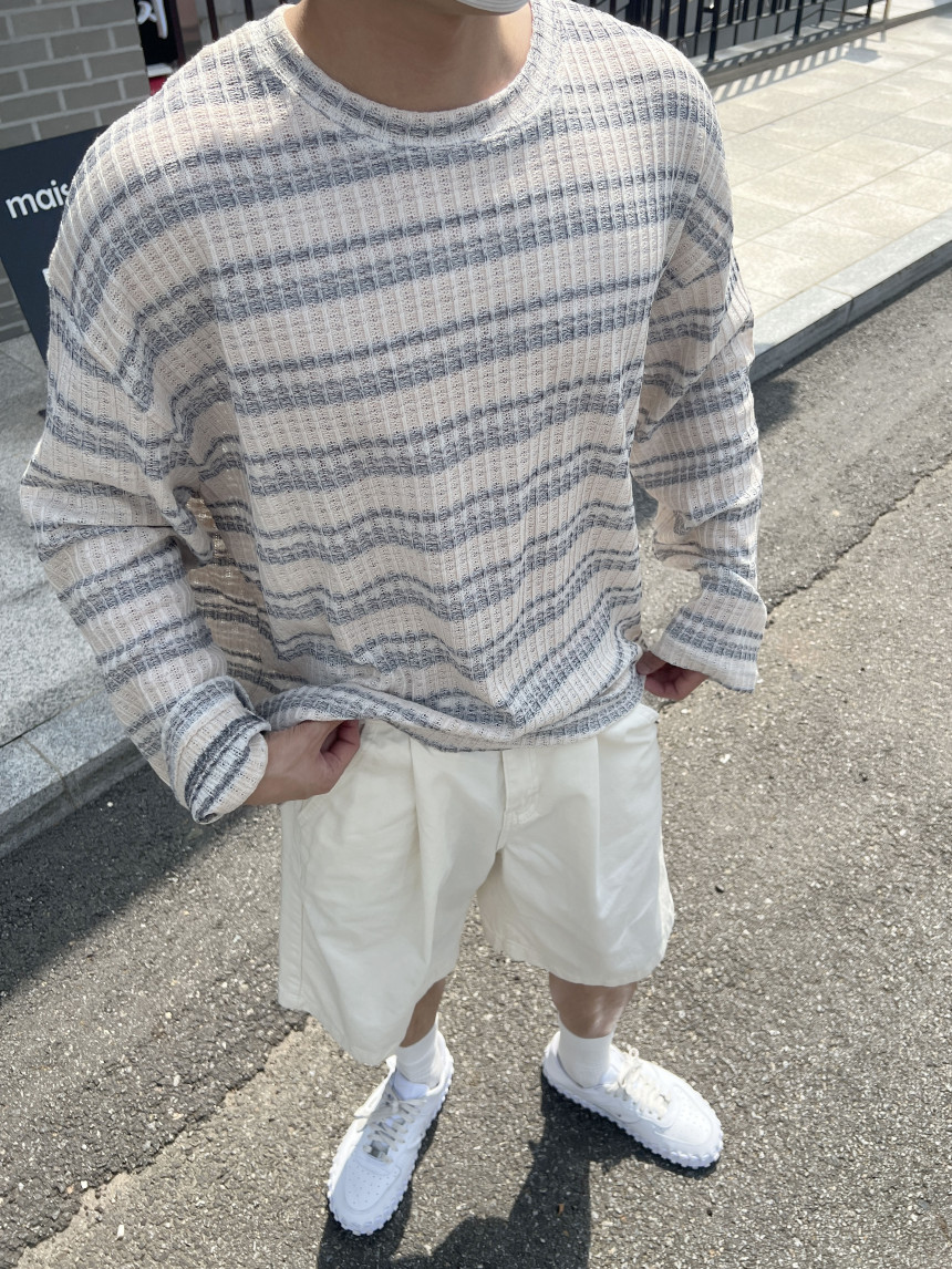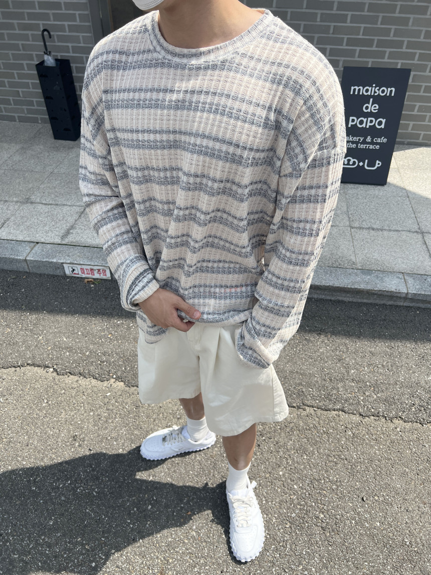 오버한 핏 감으로 제작된 니트 티셔츠입니다:)