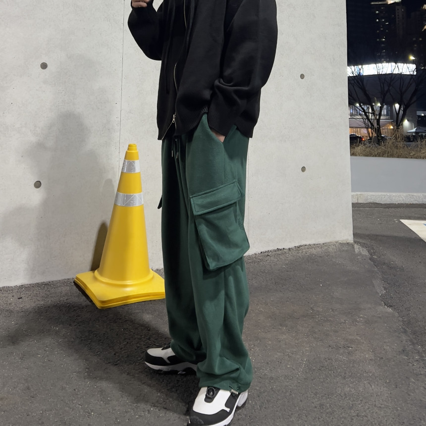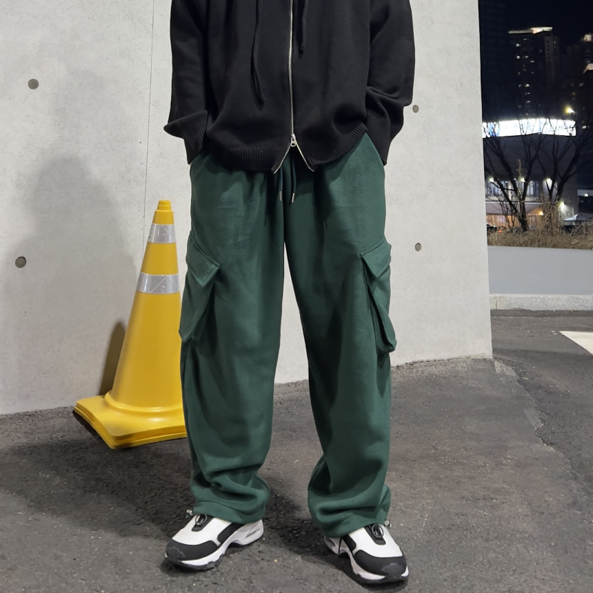 부드러운 플리스 재질의 밴딩 카고 팬츠
