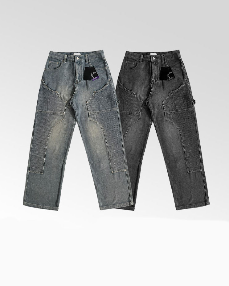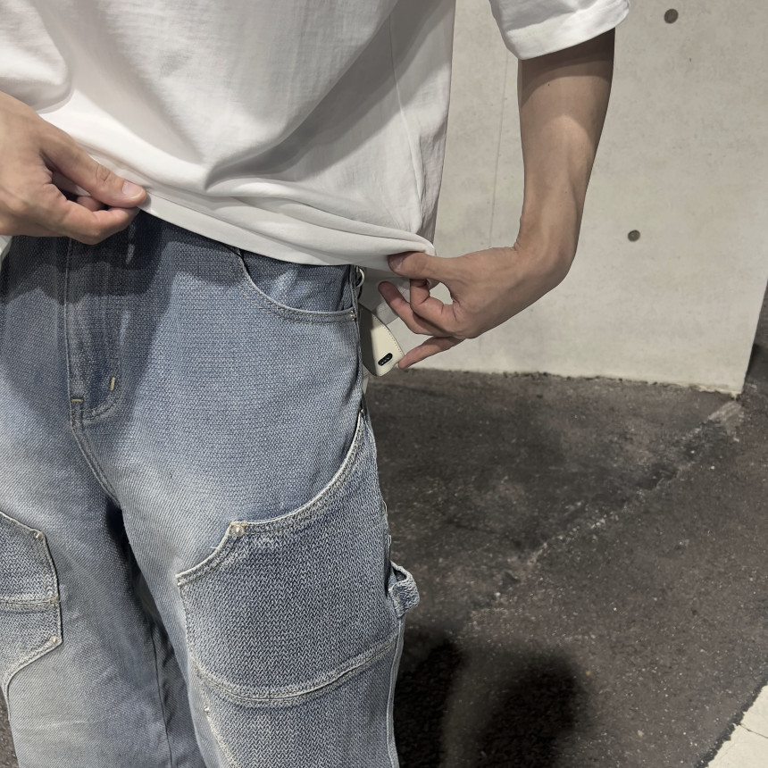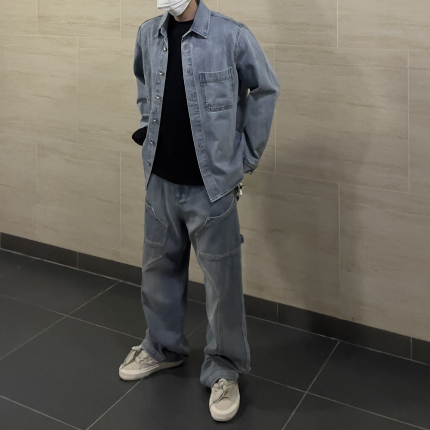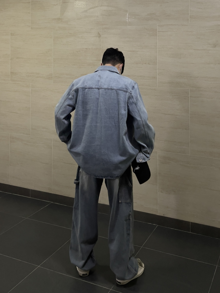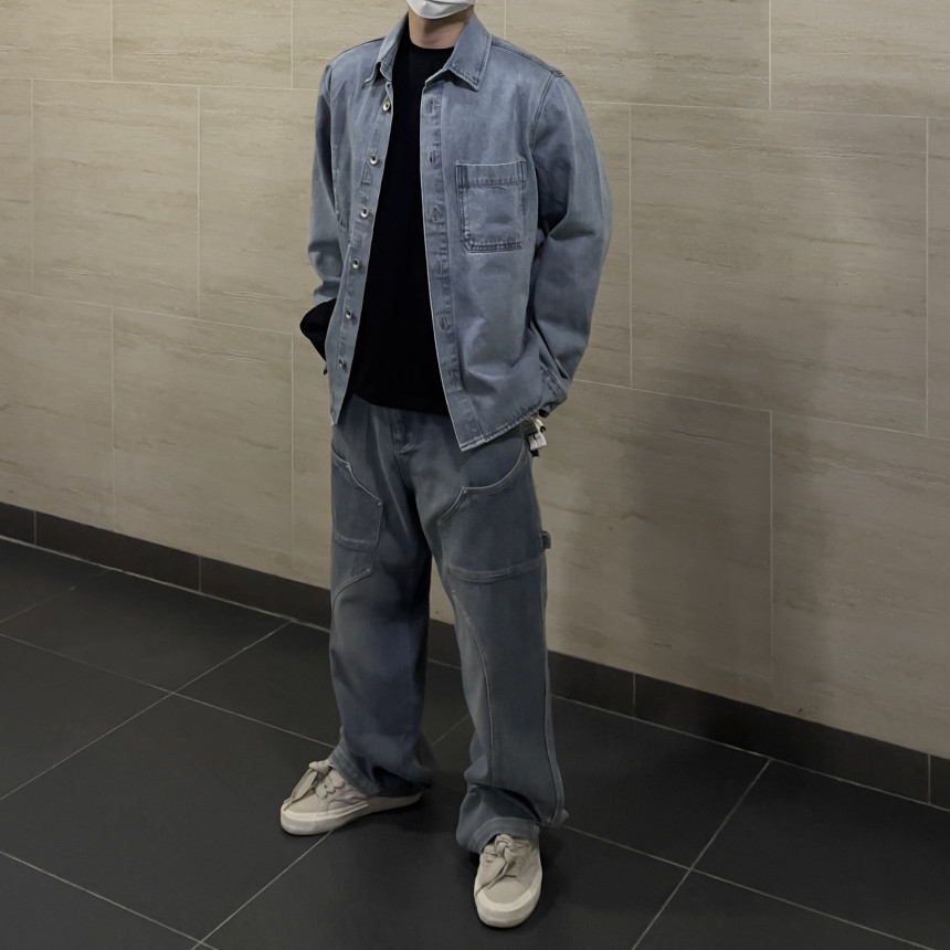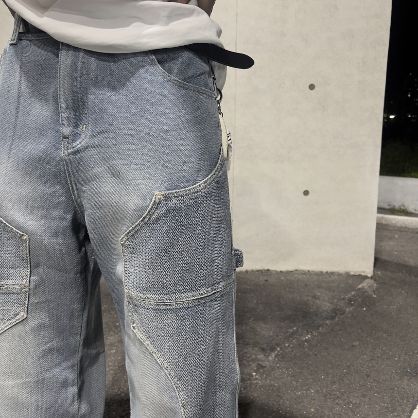 pants - sashiko double knee denim (blue) L 사이즈 착용 M 사이즈도 맞으나 조금 더 여유 있는 핏을 원하여 한 사이즈 업 한 피팅본입니다:)
