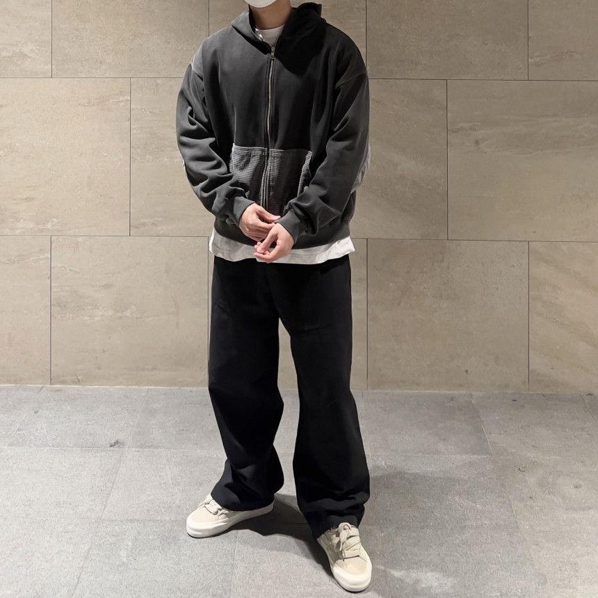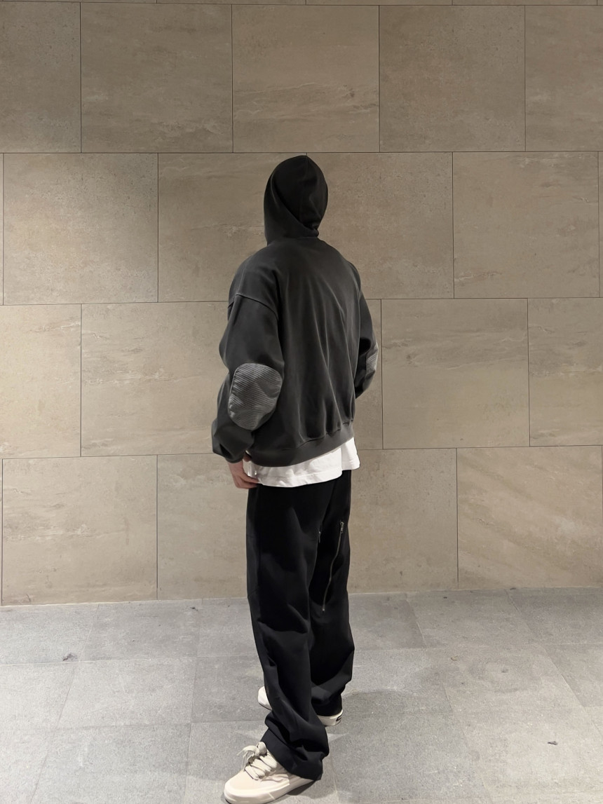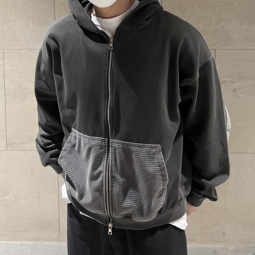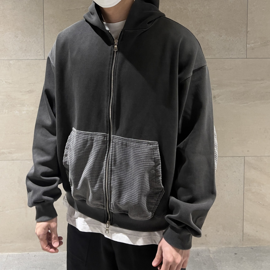 top - waffle patch zip hoody (charcoal)