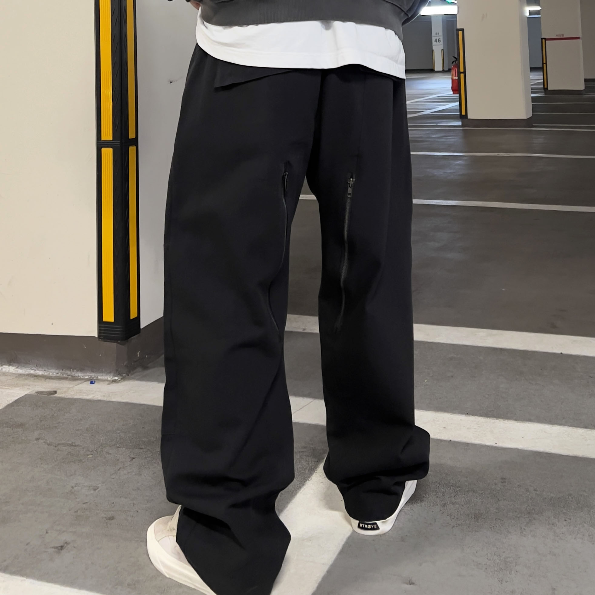 pants - back zip pocket pants (black)