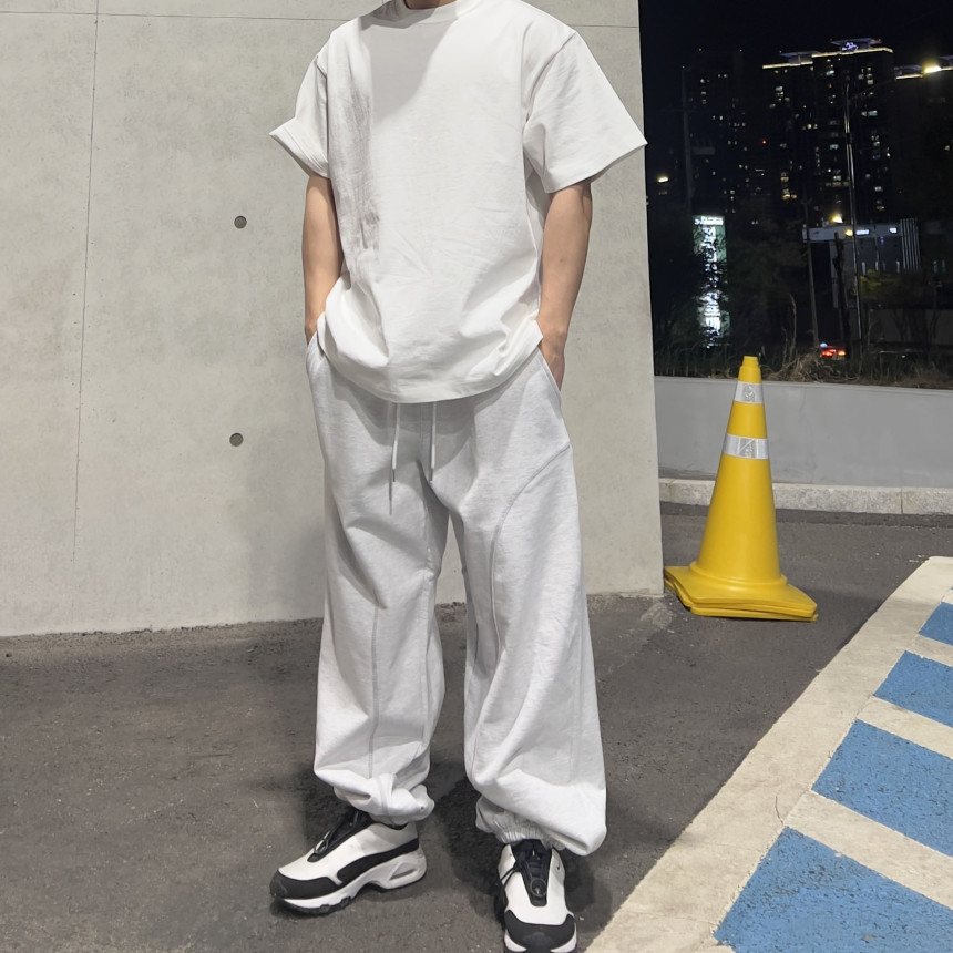 허리(밴딩) 34 / 밑위 36 / 허벅지 35 / 밑단(조거) / 총장 108