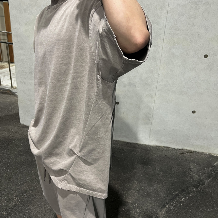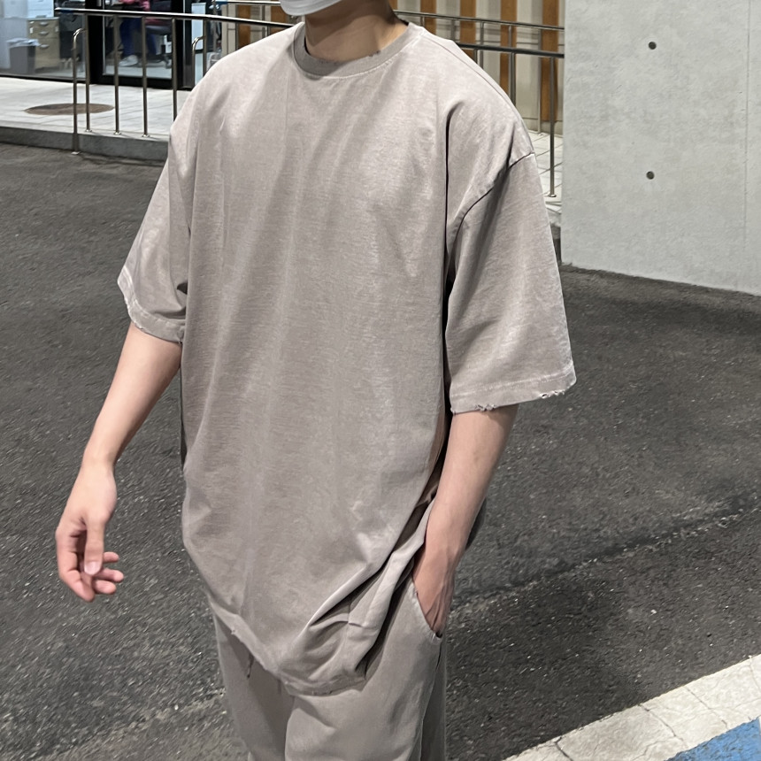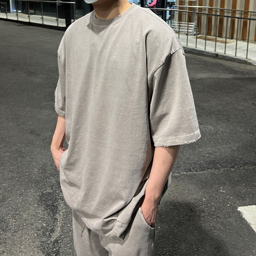 - 피그먼트 / 넥시보리, 밑단, 소매 데미지 디테일