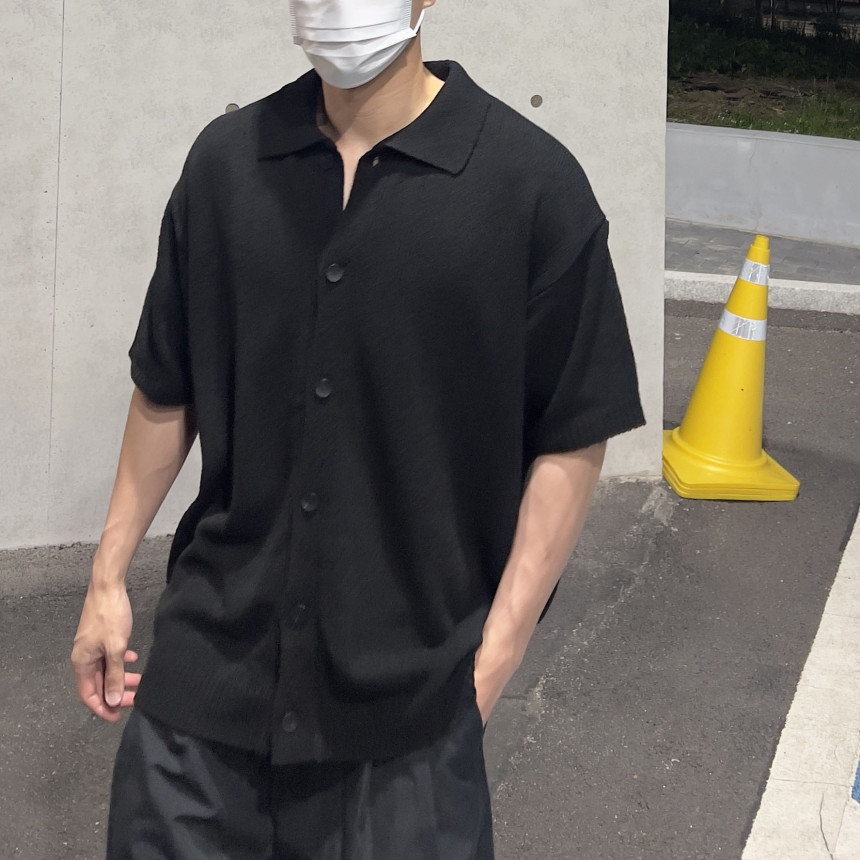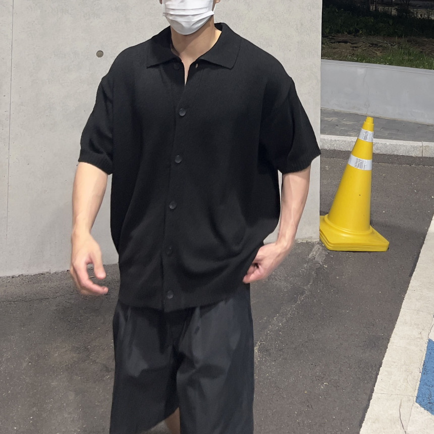 soft knit collar knit cardigan (black)