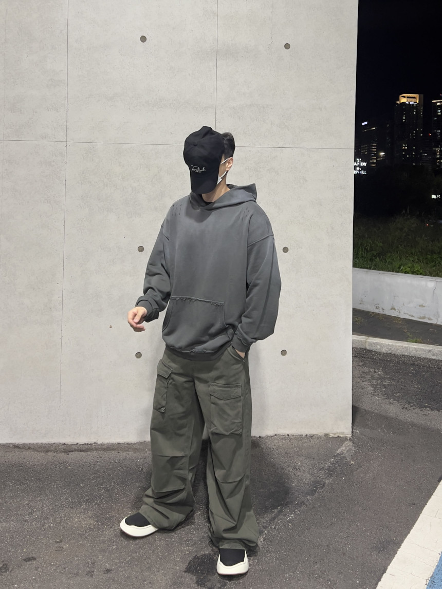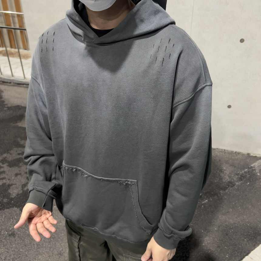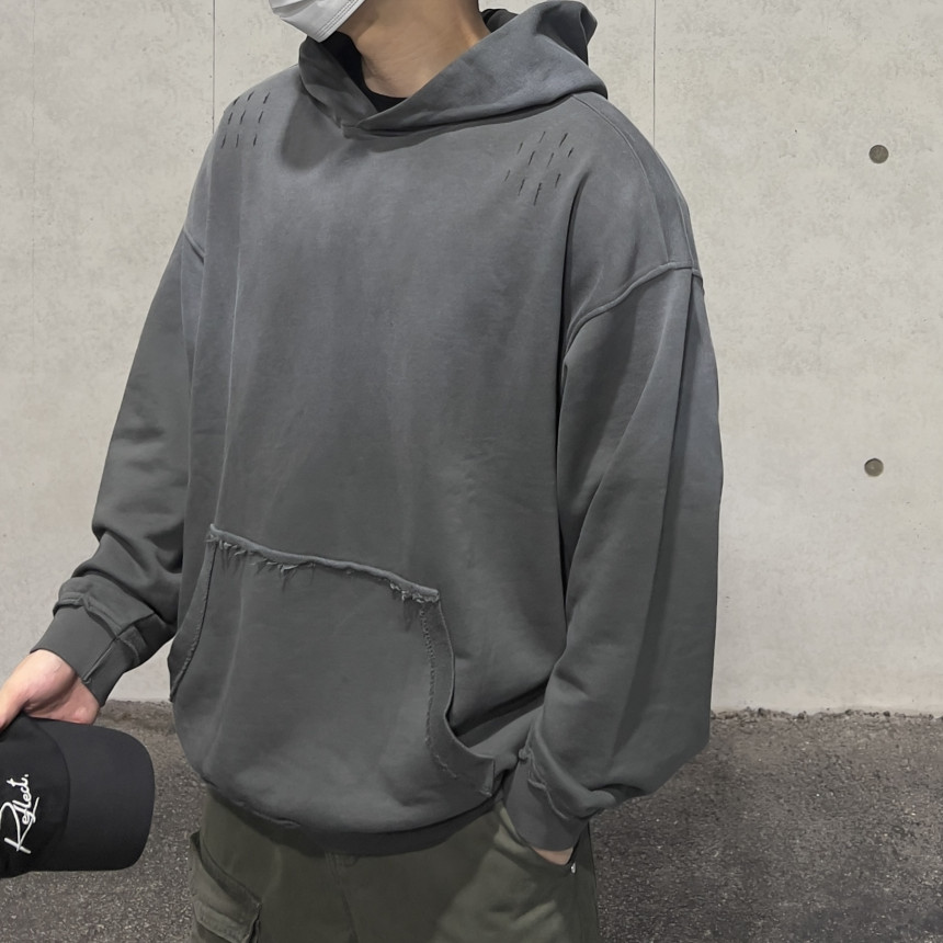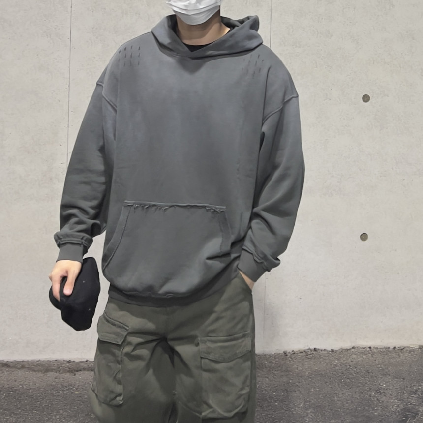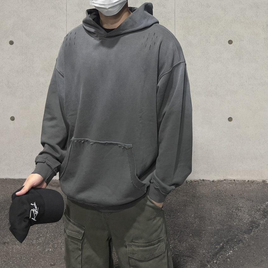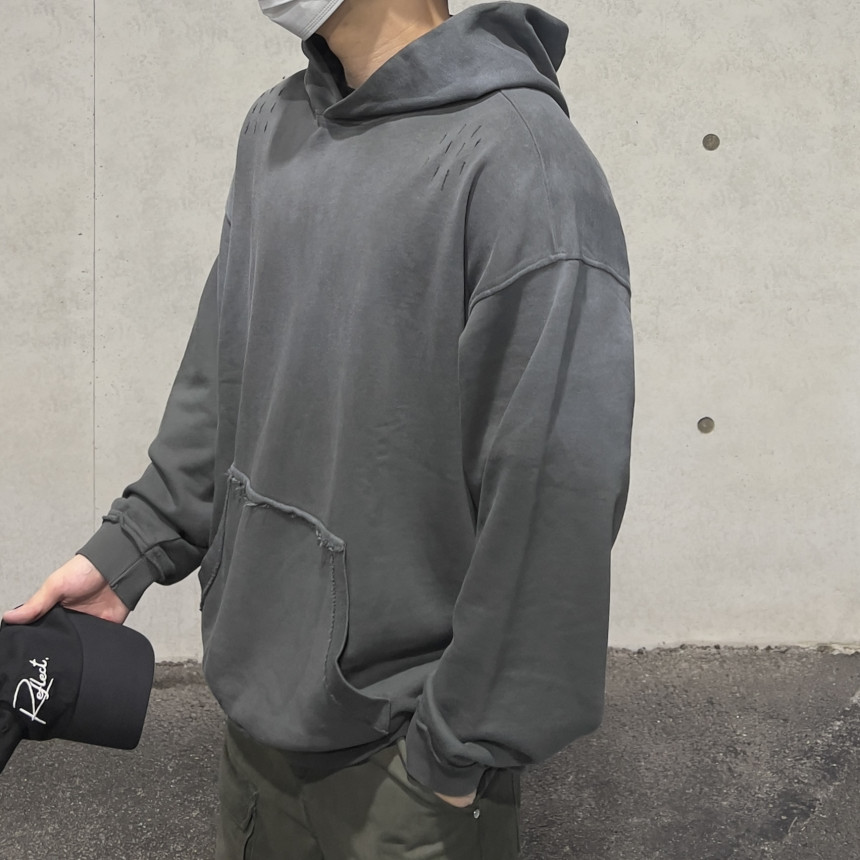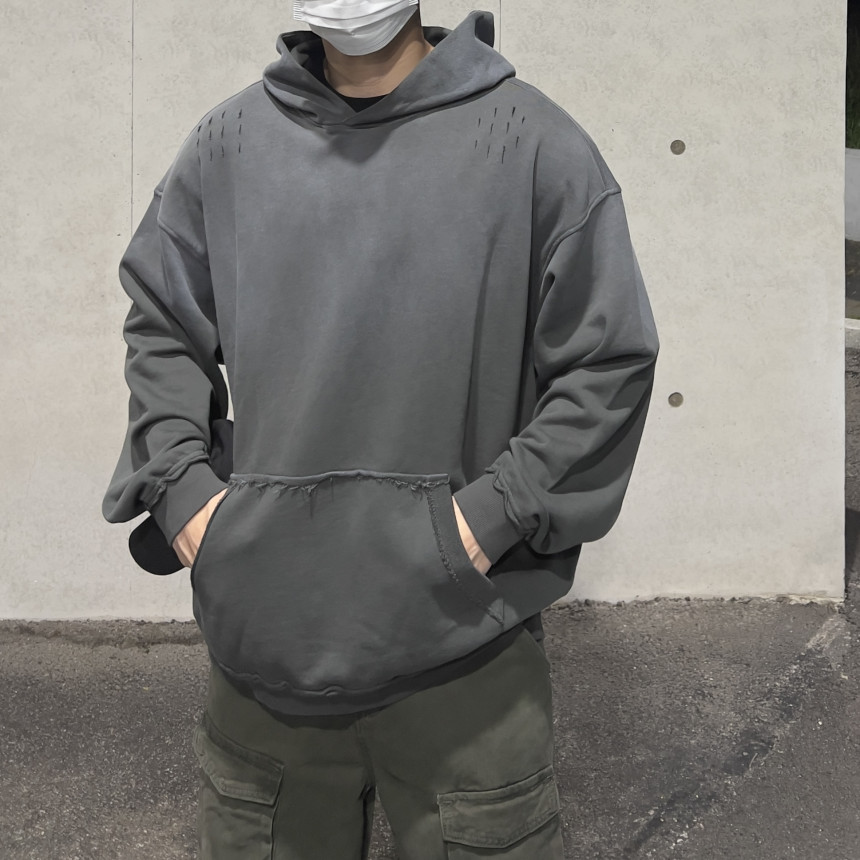 top - sulfur wash damage hoody (charcoal)