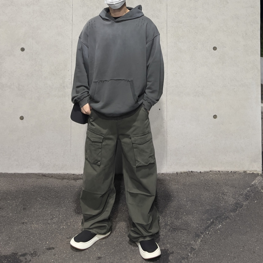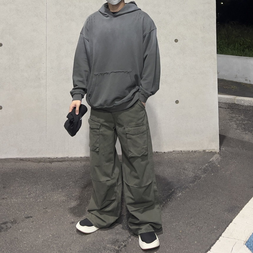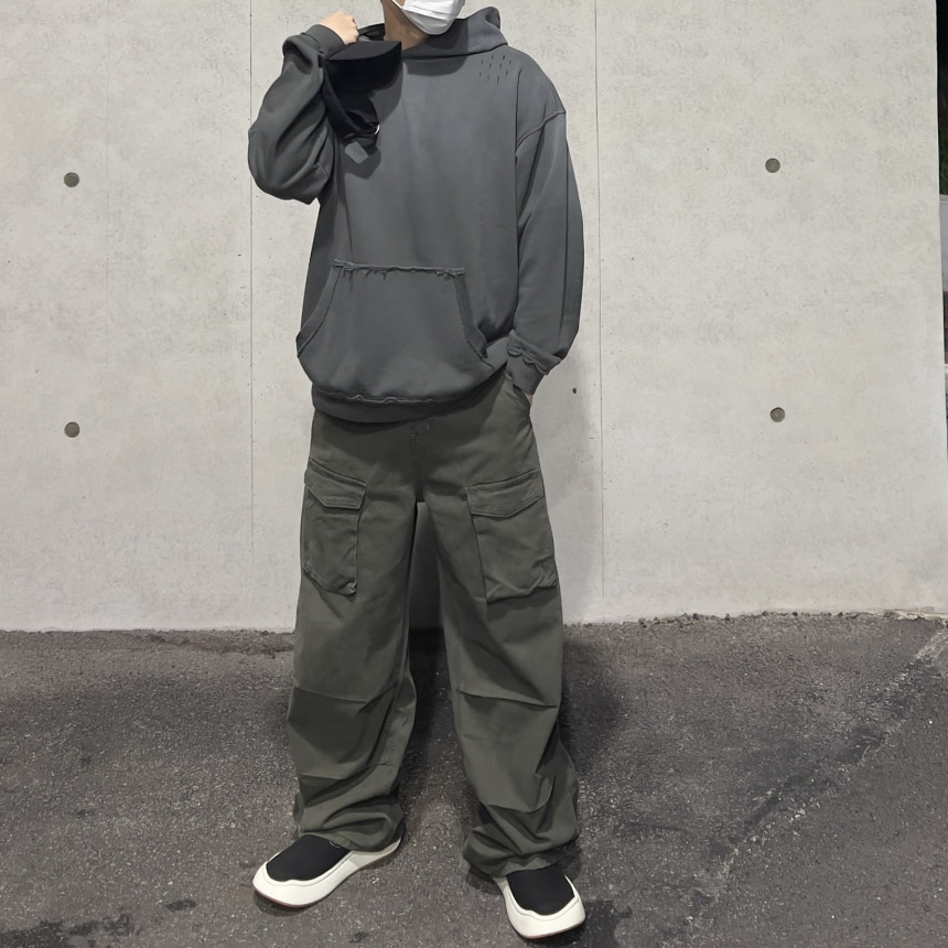 - 파라슈트 핀턱 디테일 / 리벳 디테일 / 전면 포켓 디테일