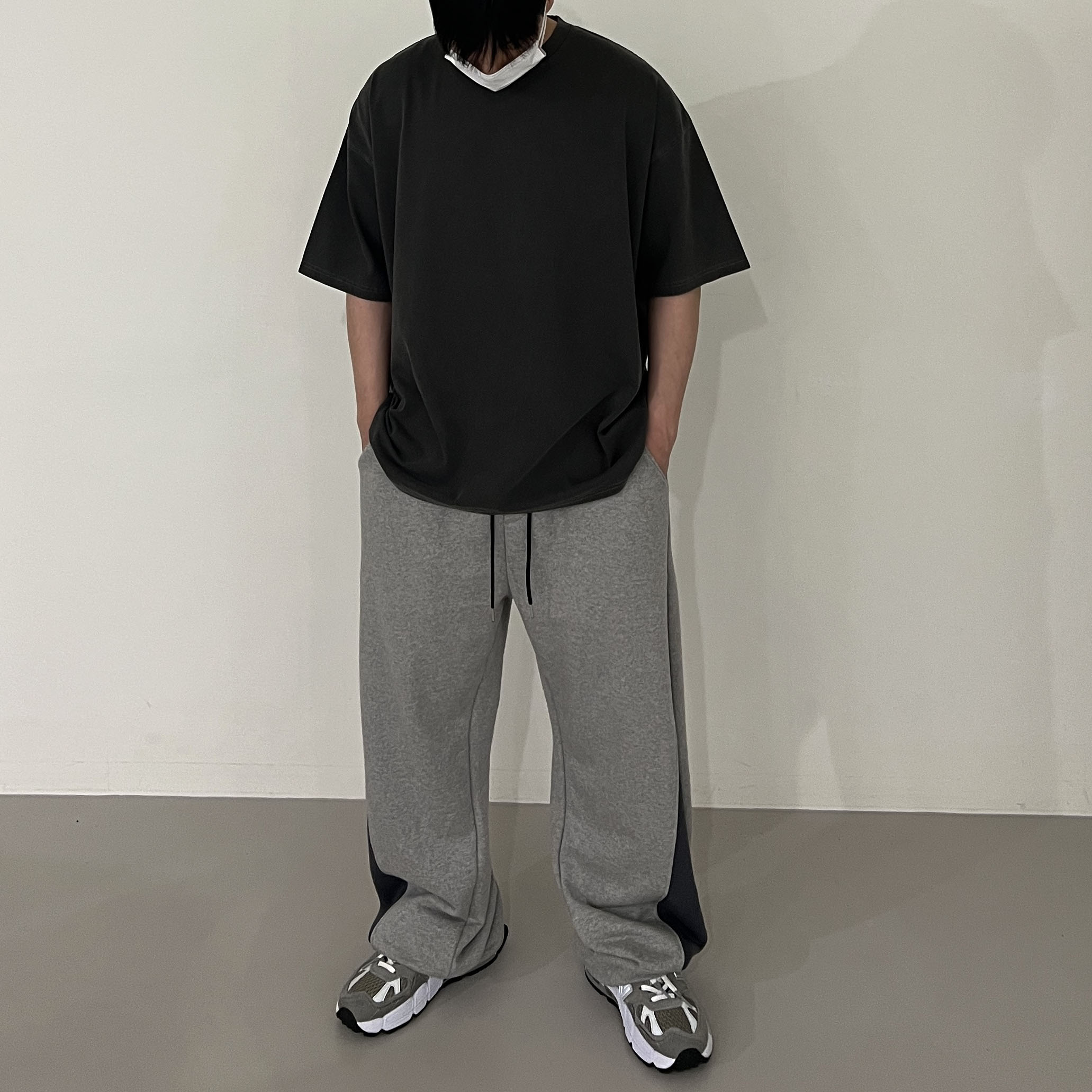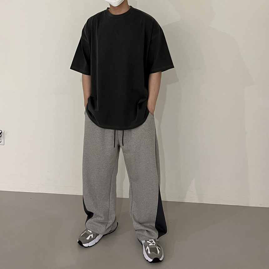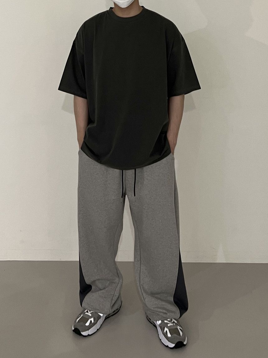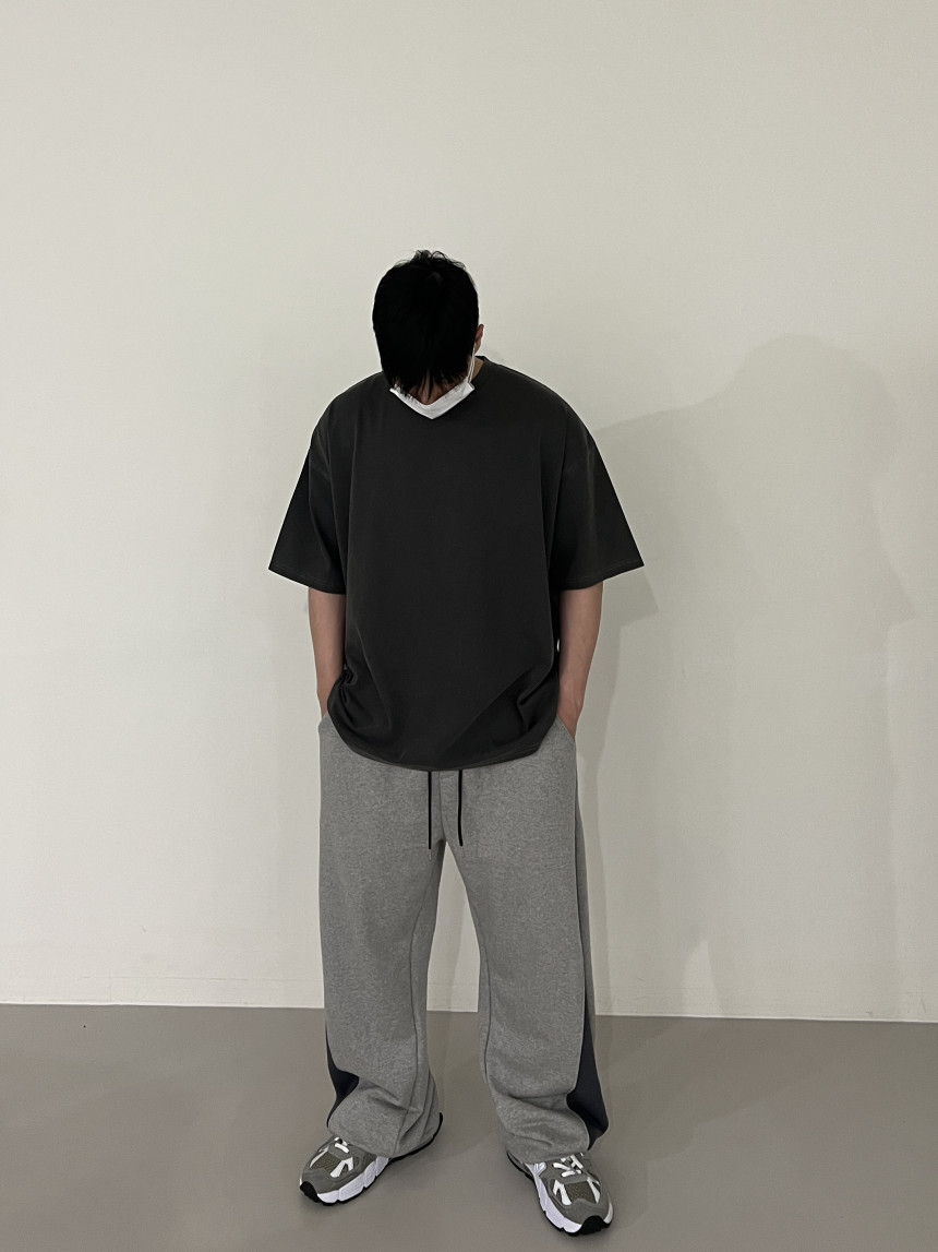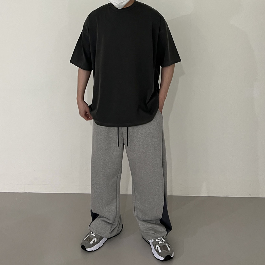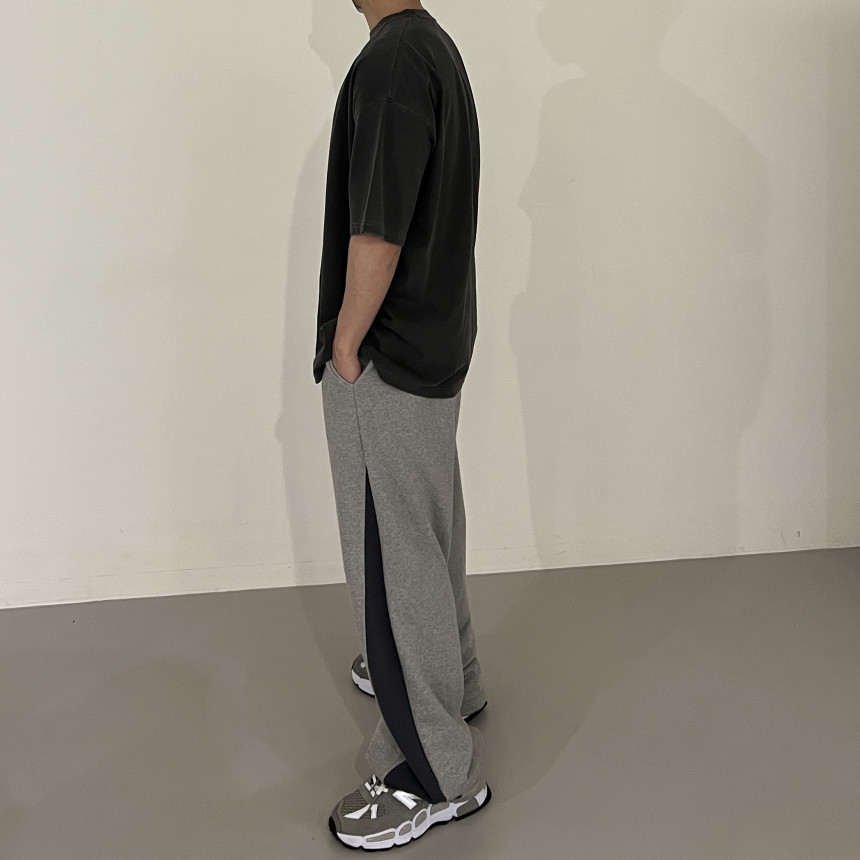 pants - two tone snap banding pants (grey)