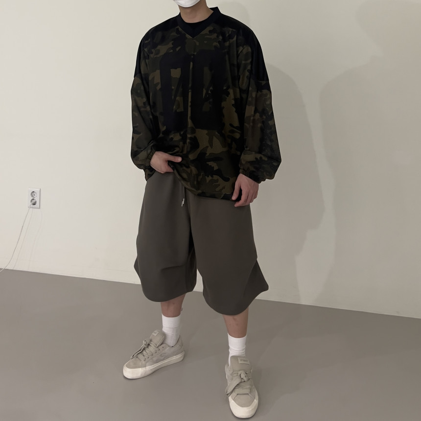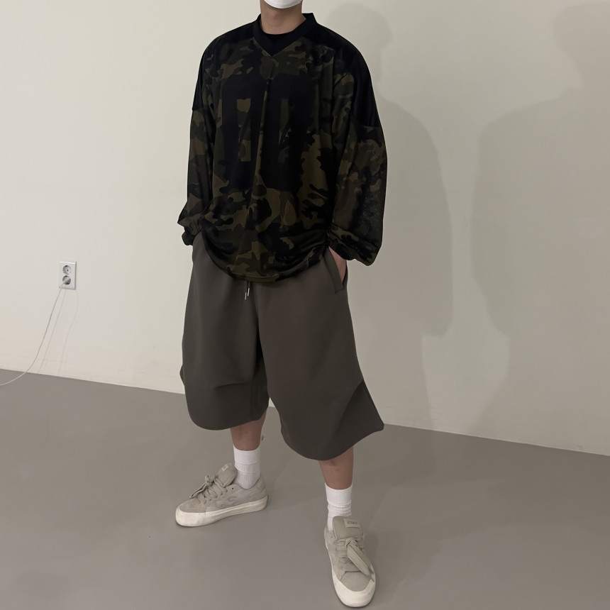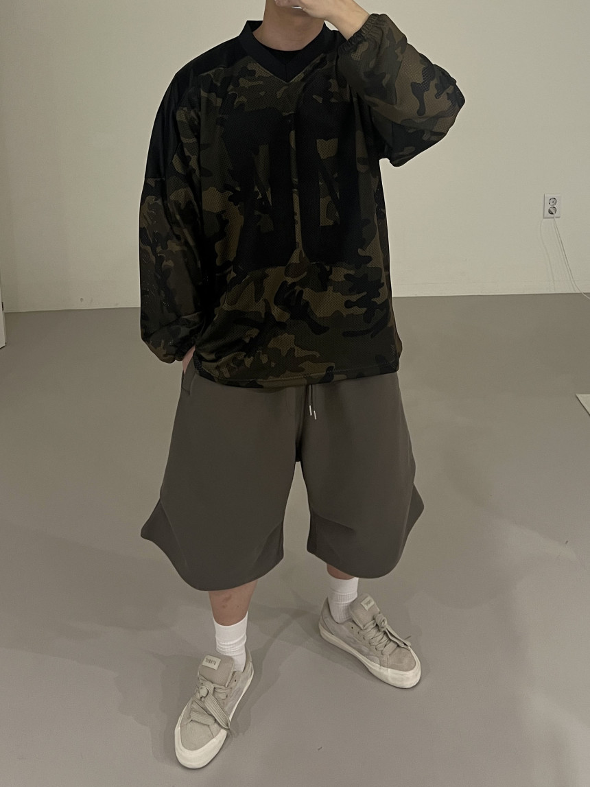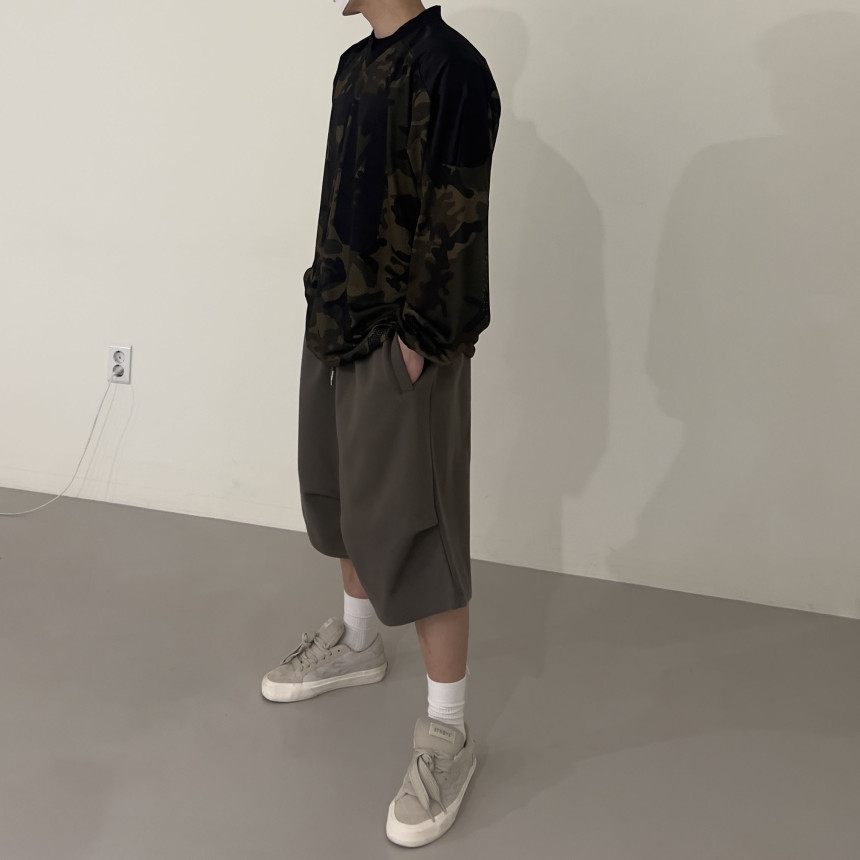 pants - knee pintuck nylon bermuda (beige) 착용 <카카오톡 채널 문의>