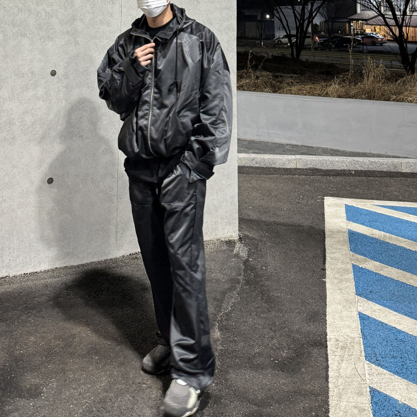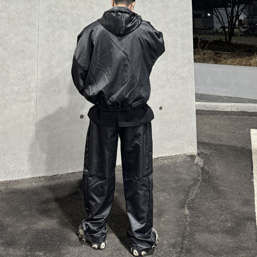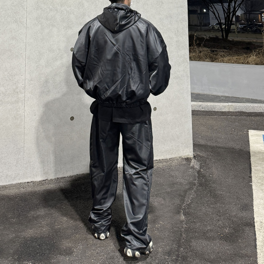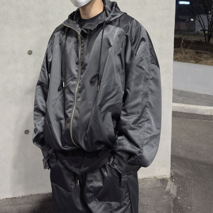 pu 코팅 폴리 소재의 집업 제품입니다.
