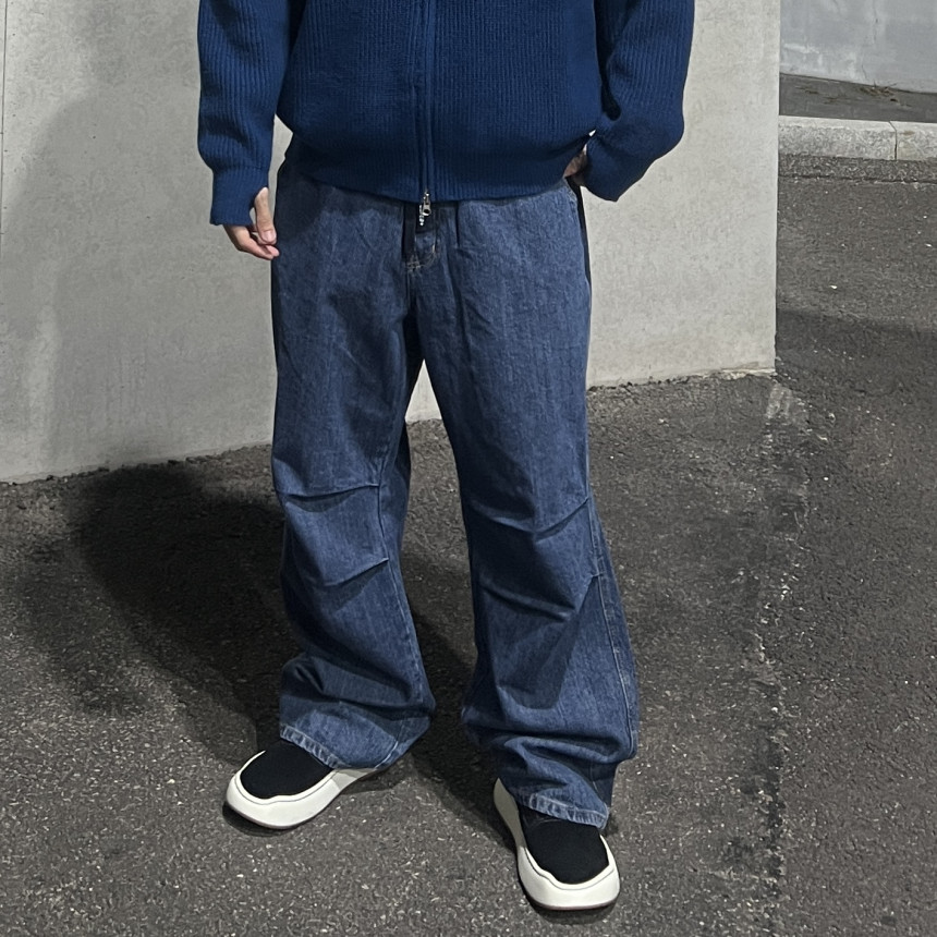 - 스트라이프 디테일이 돋보이는 프리미엄 데님 소재