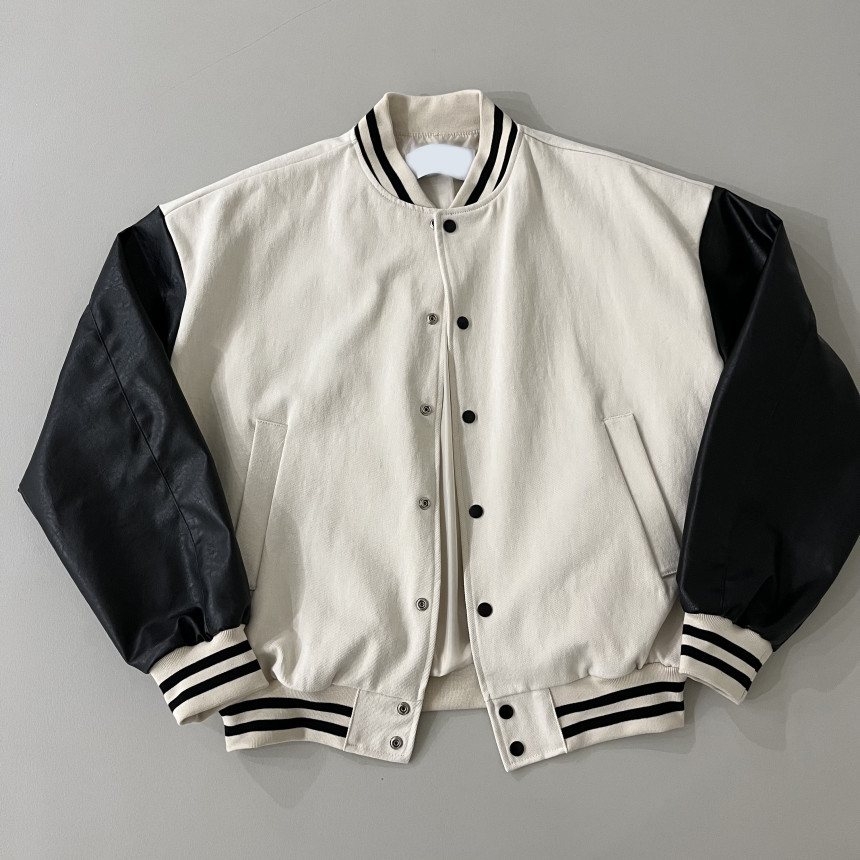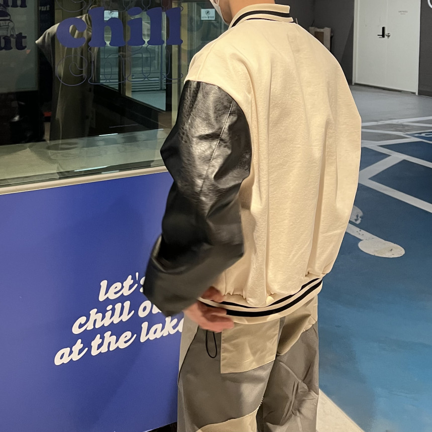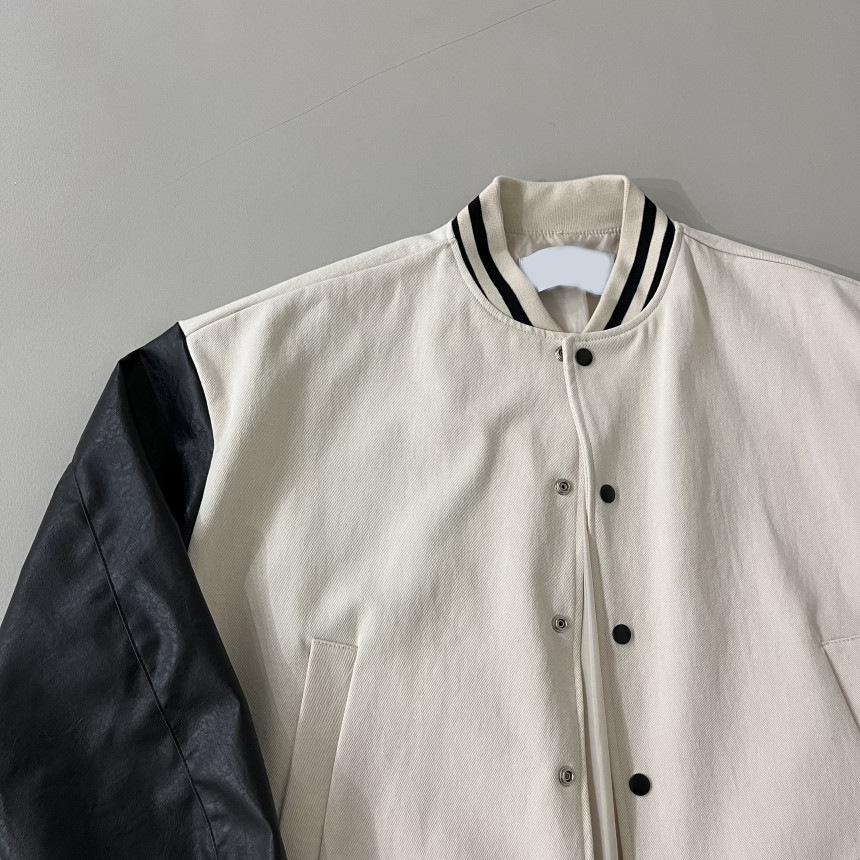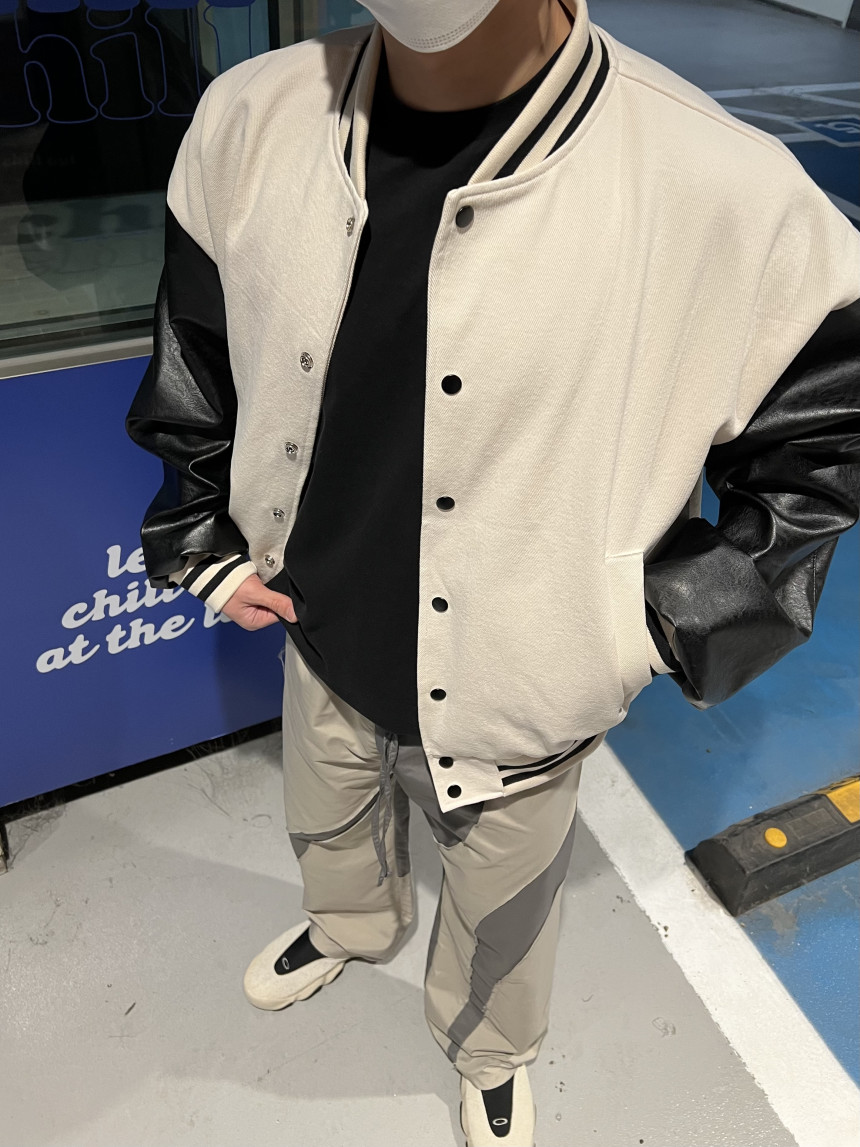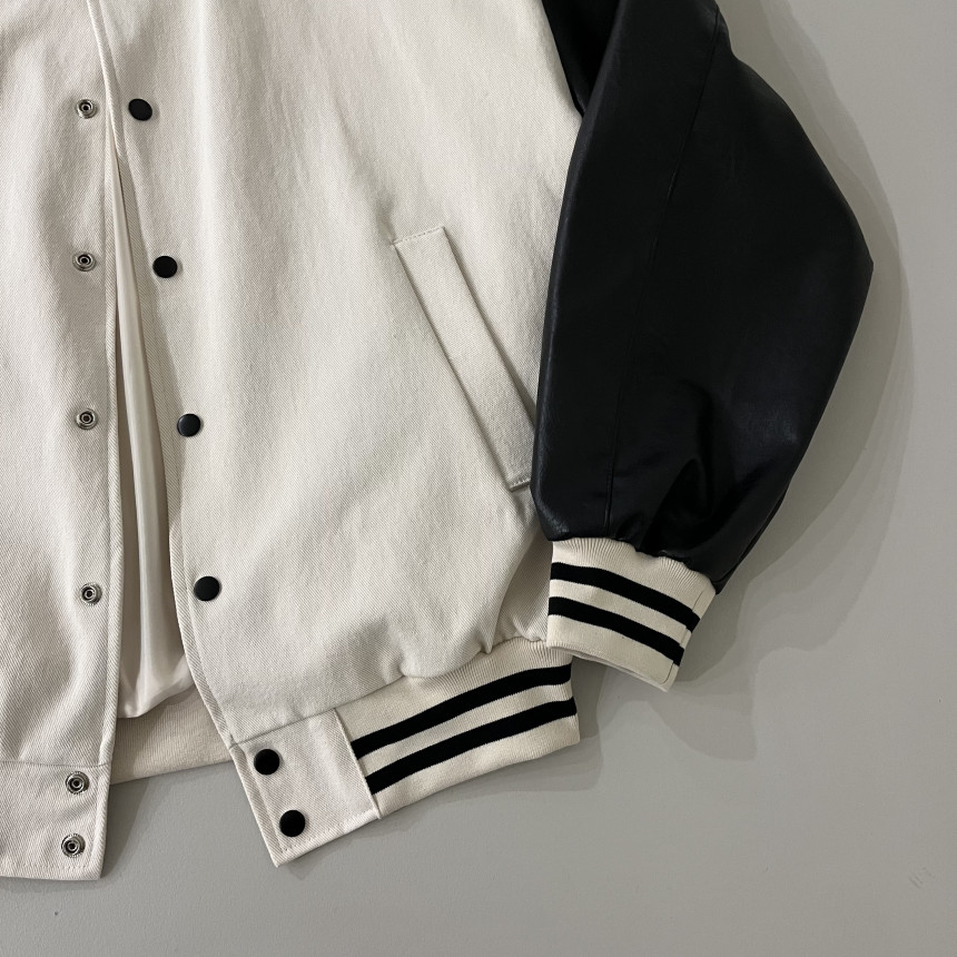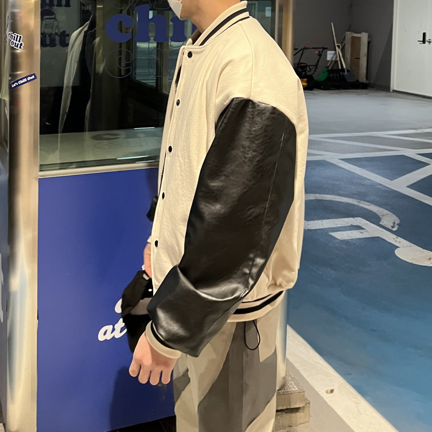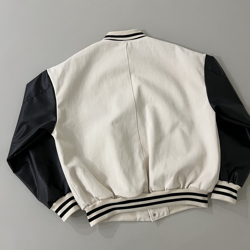 바시티 디자인의 팔 부분은 비건 레더 소재로