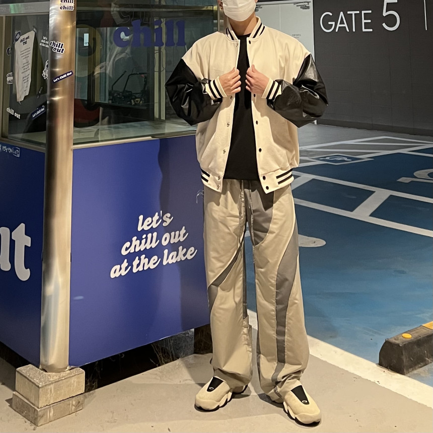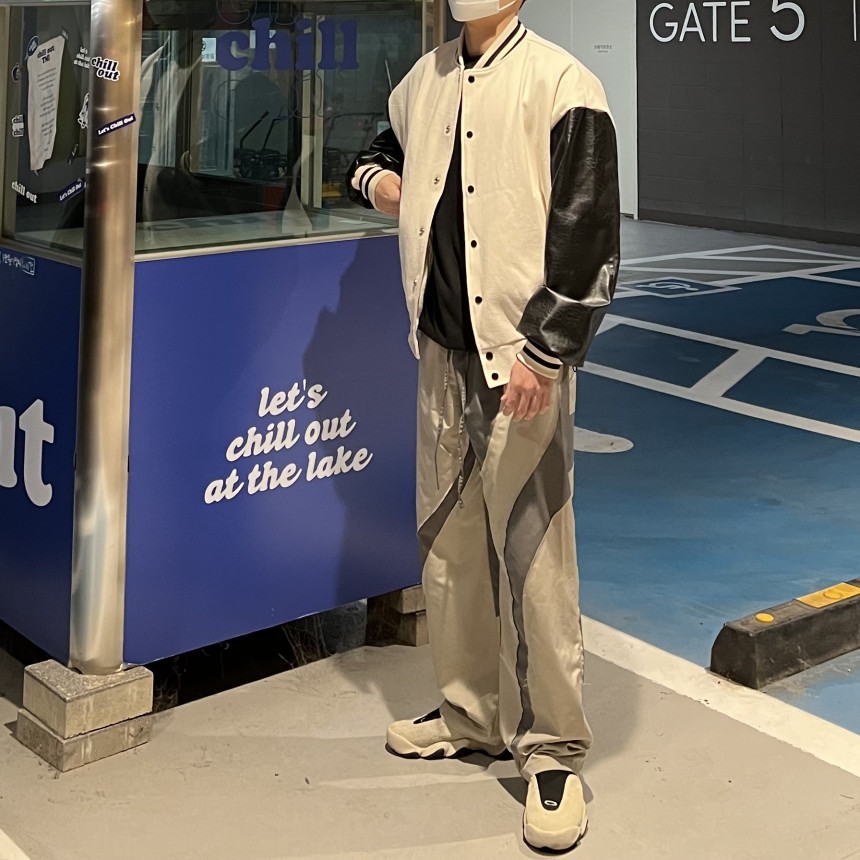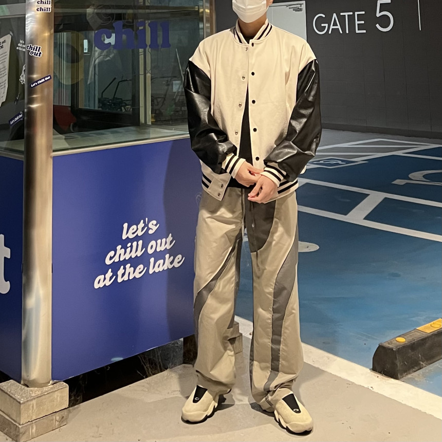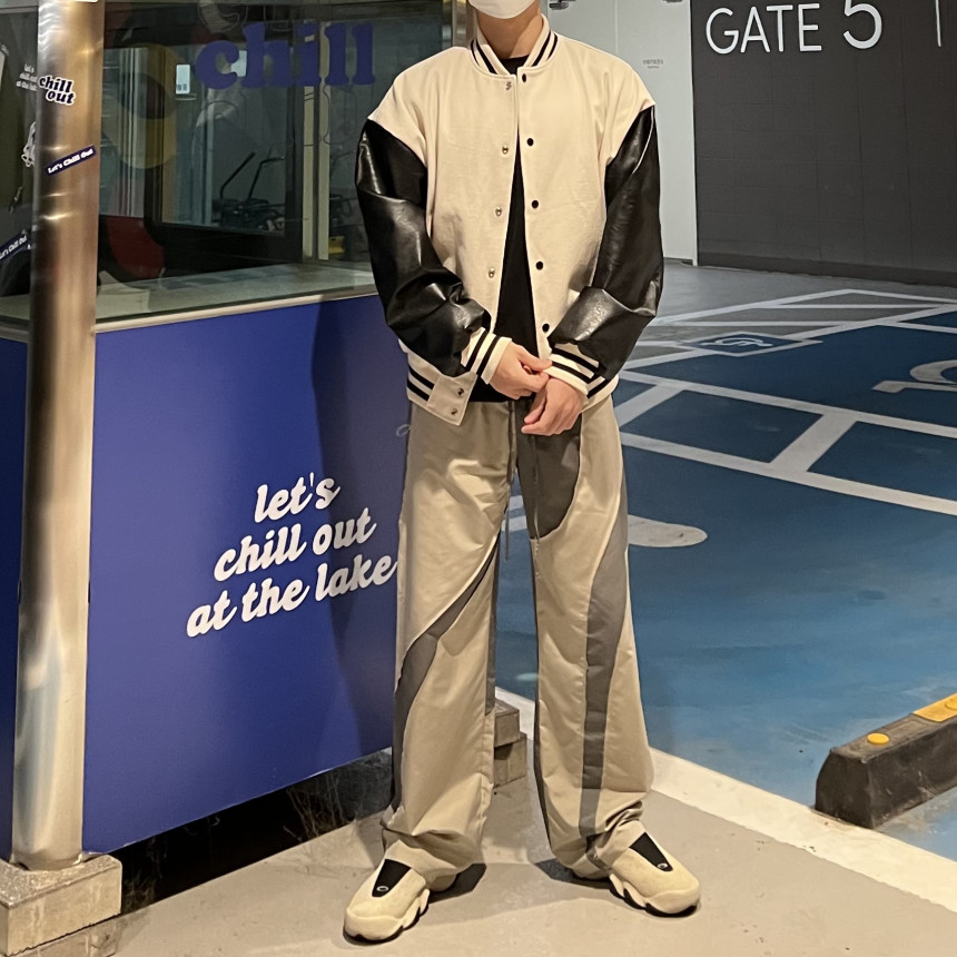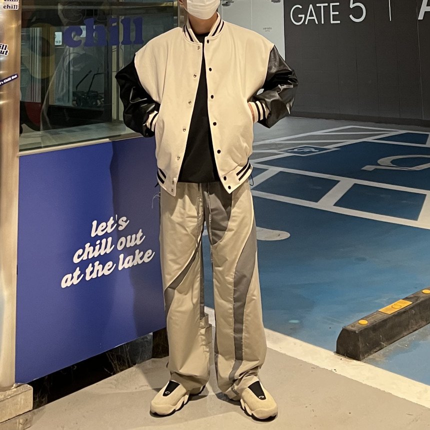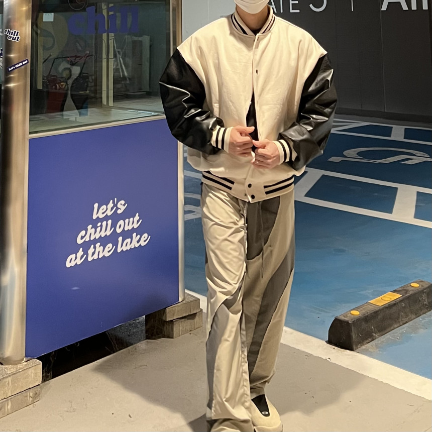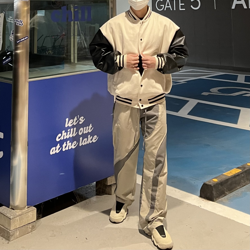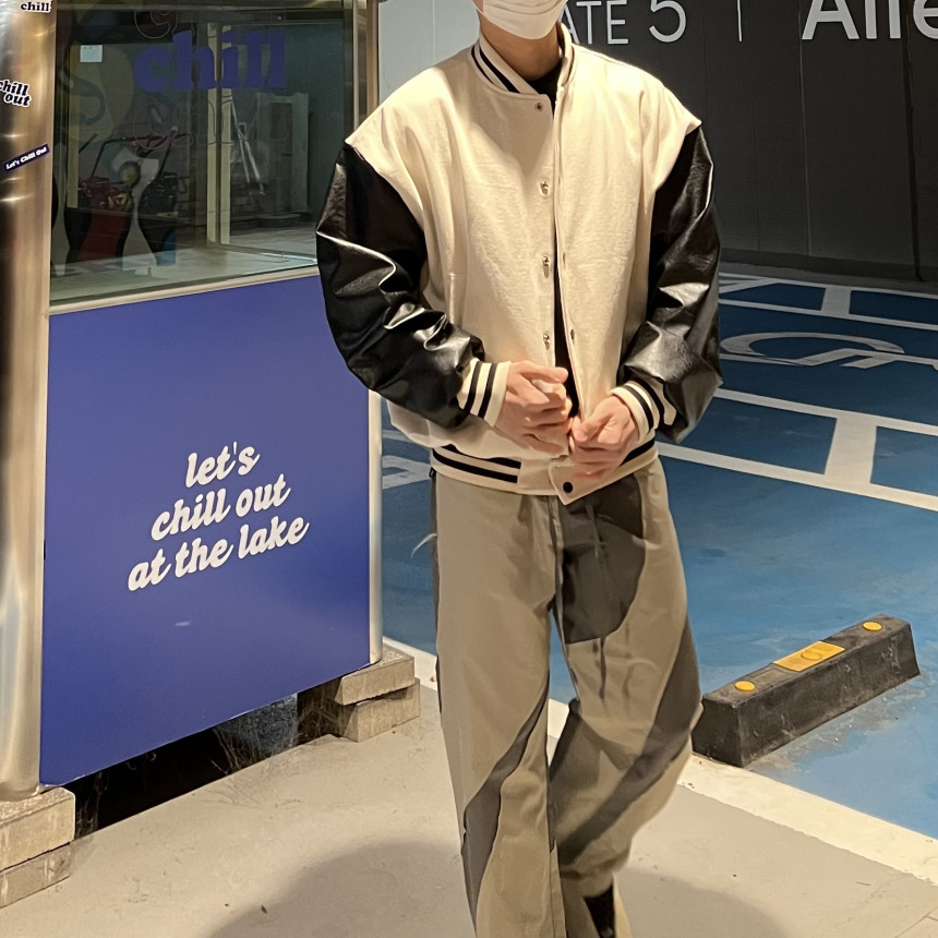 바시티 디자인의 팔 부분은 비건 레더 소재로