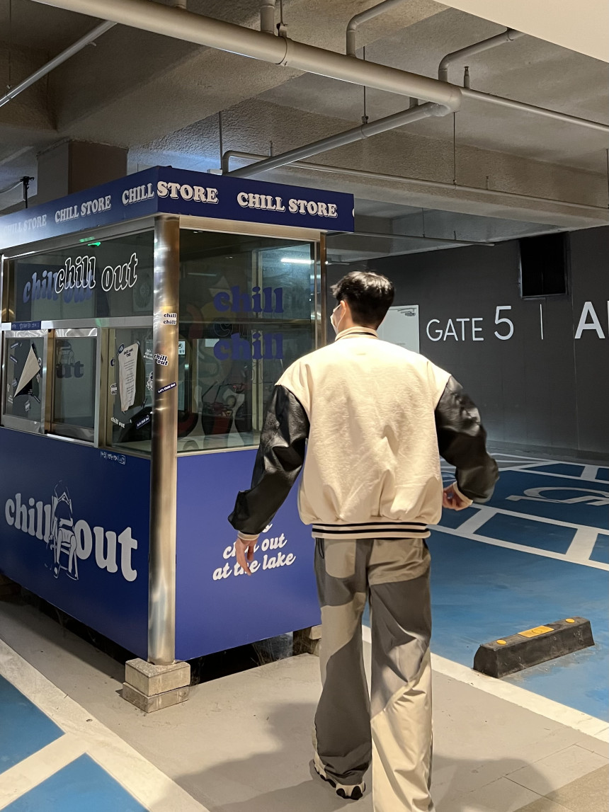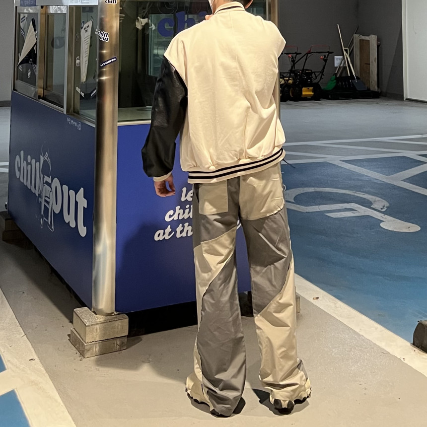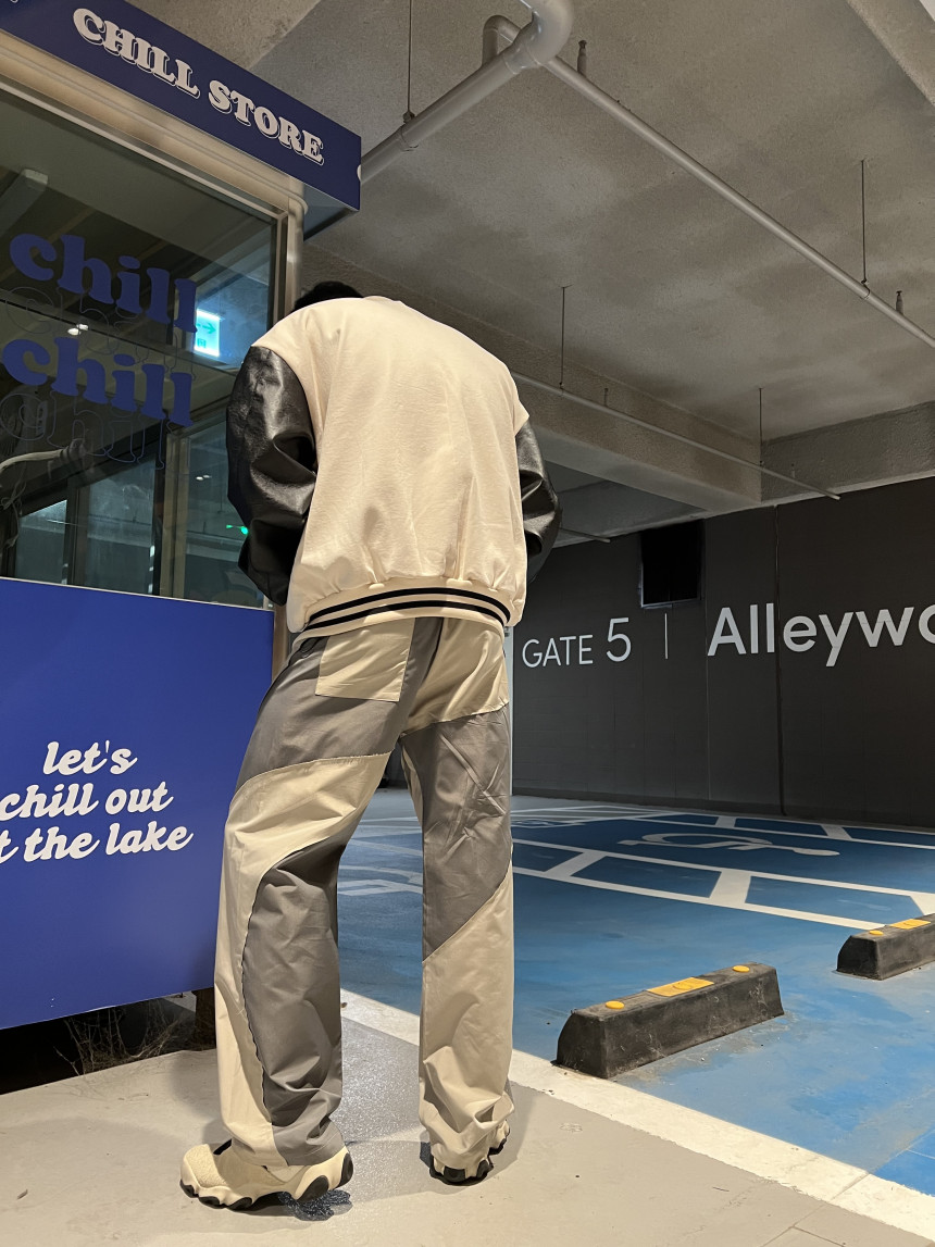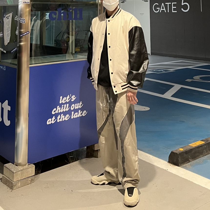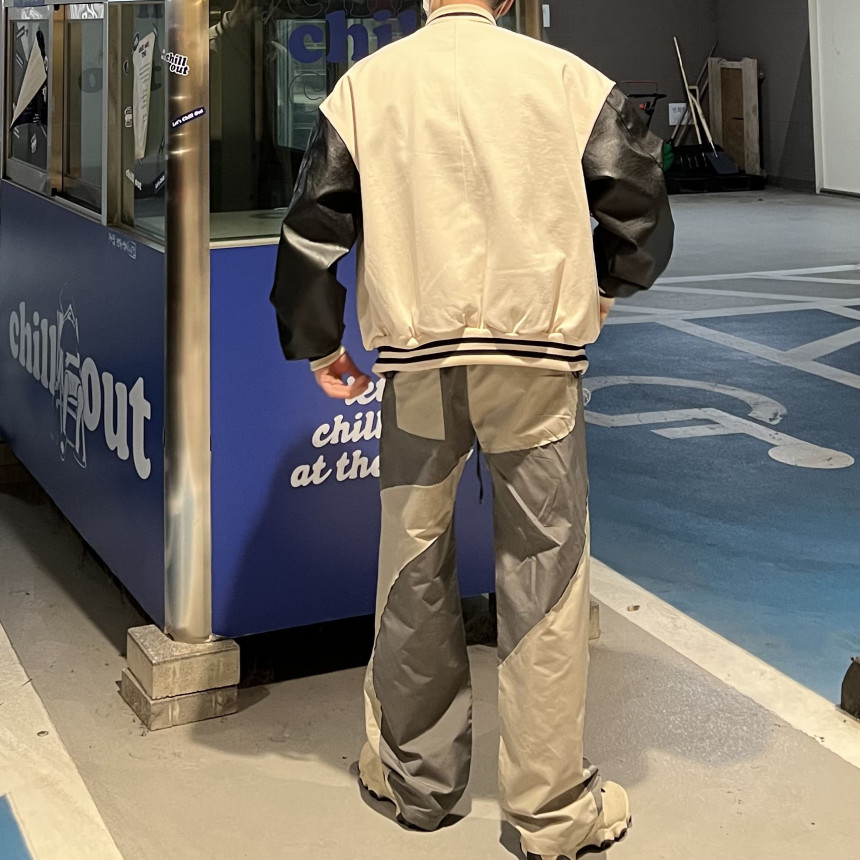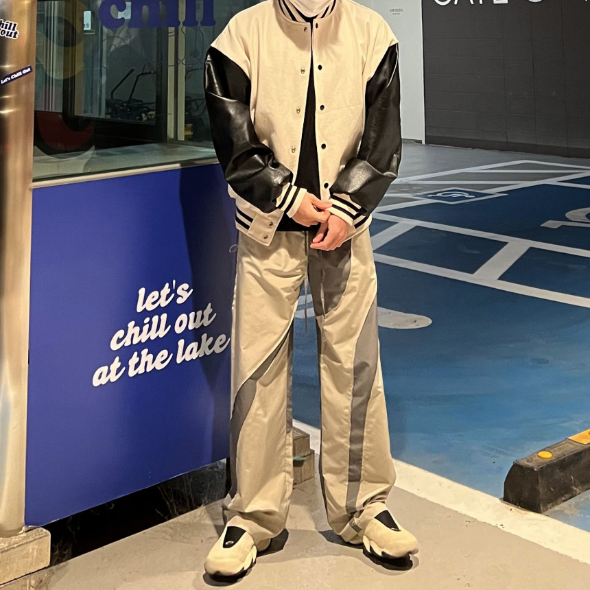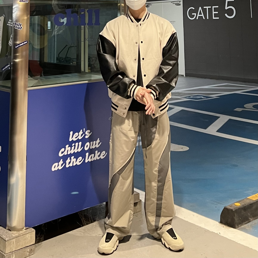 바시티 디자인의 팔 부분은 비건 레더 소재로
