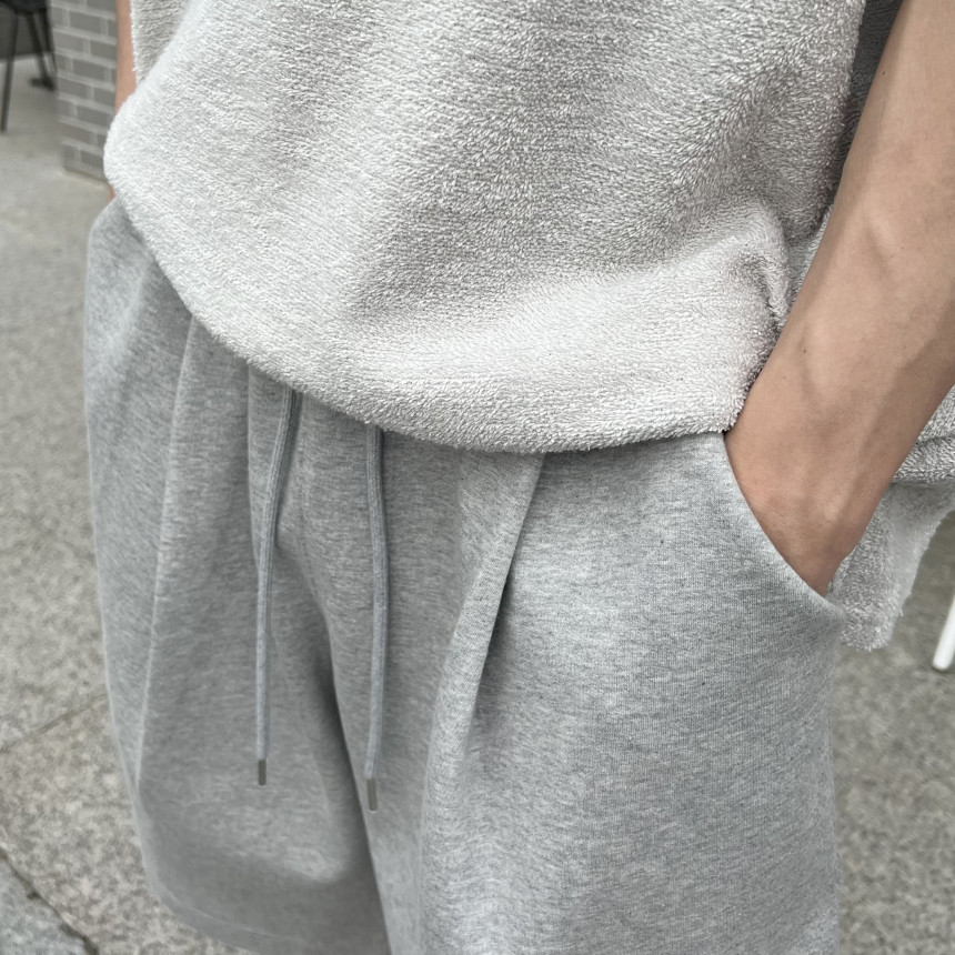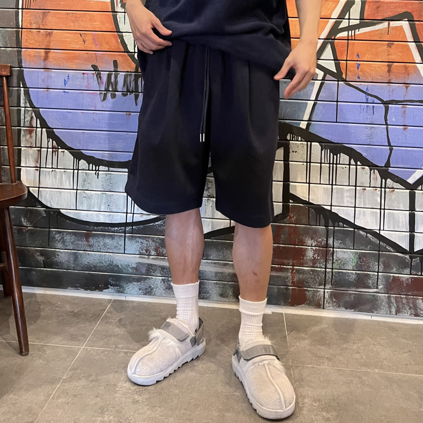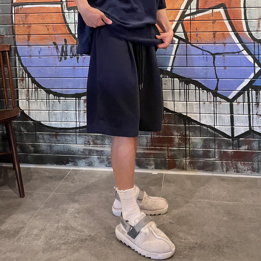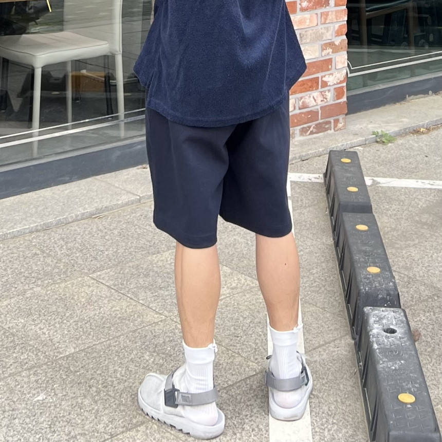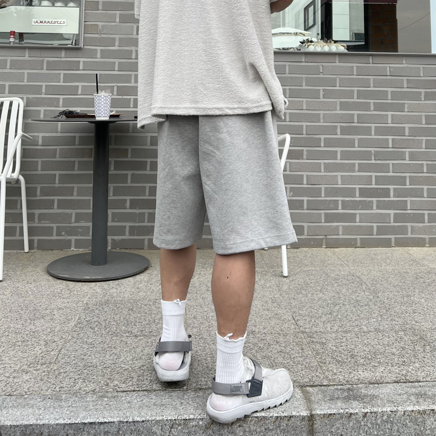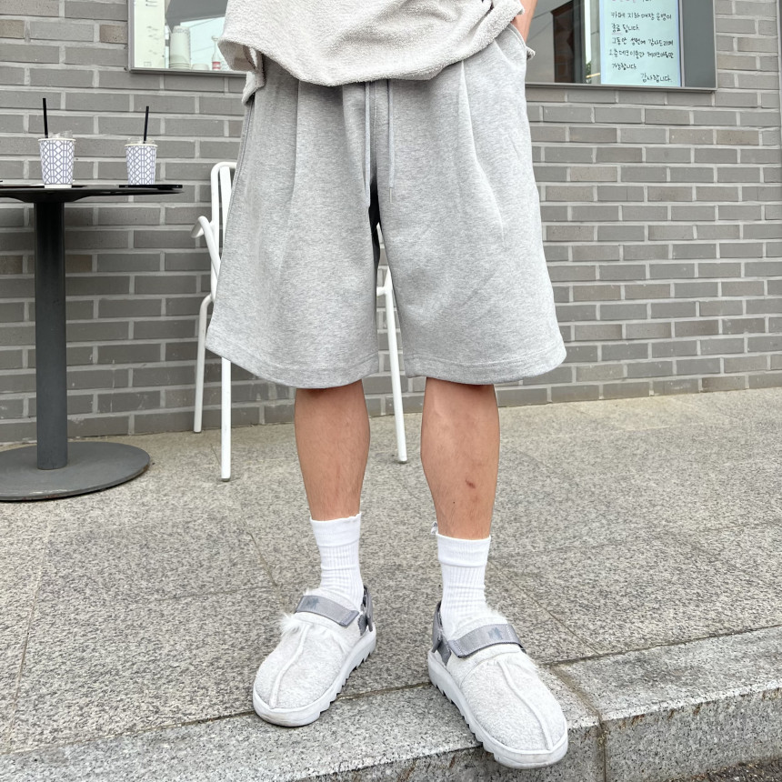 안감 합포 작업으로 이중지 소재의 와이드 버뮤다팬츠