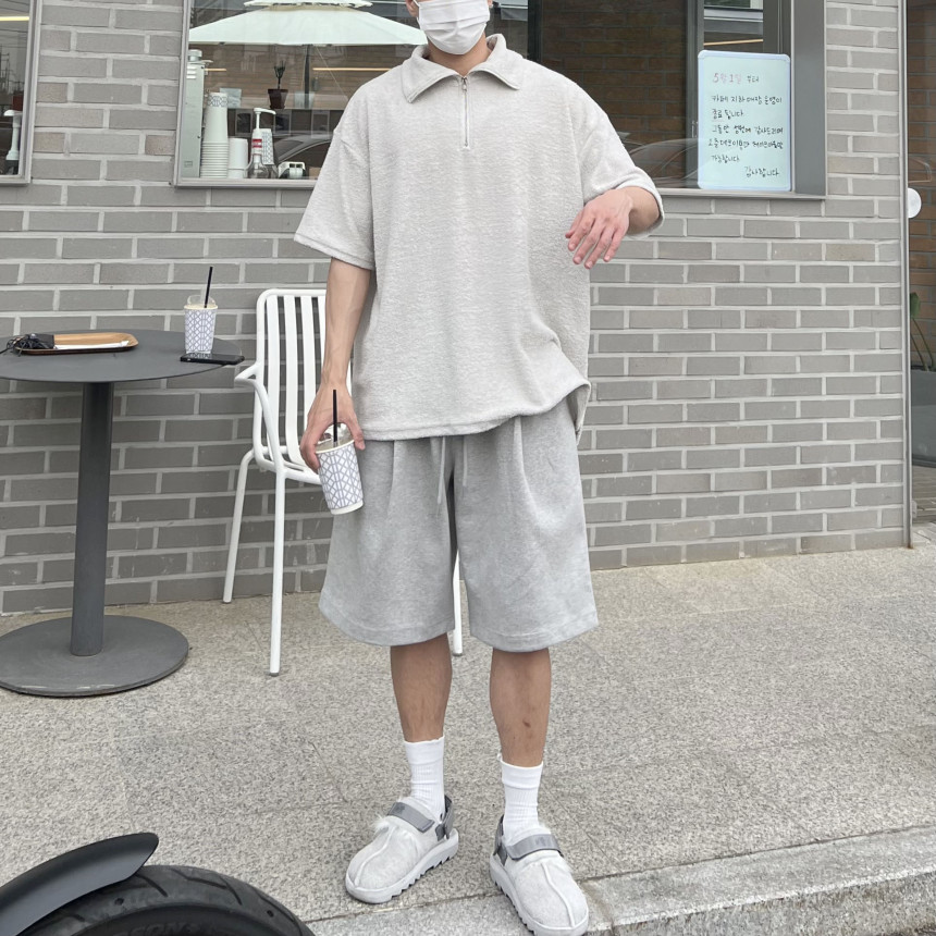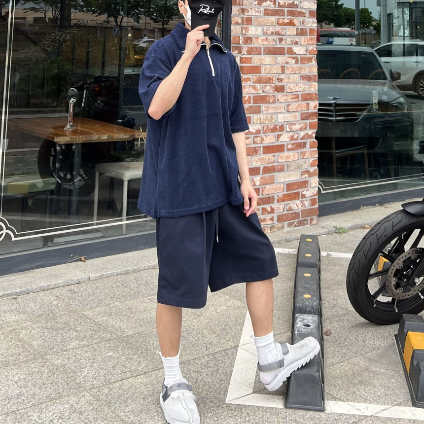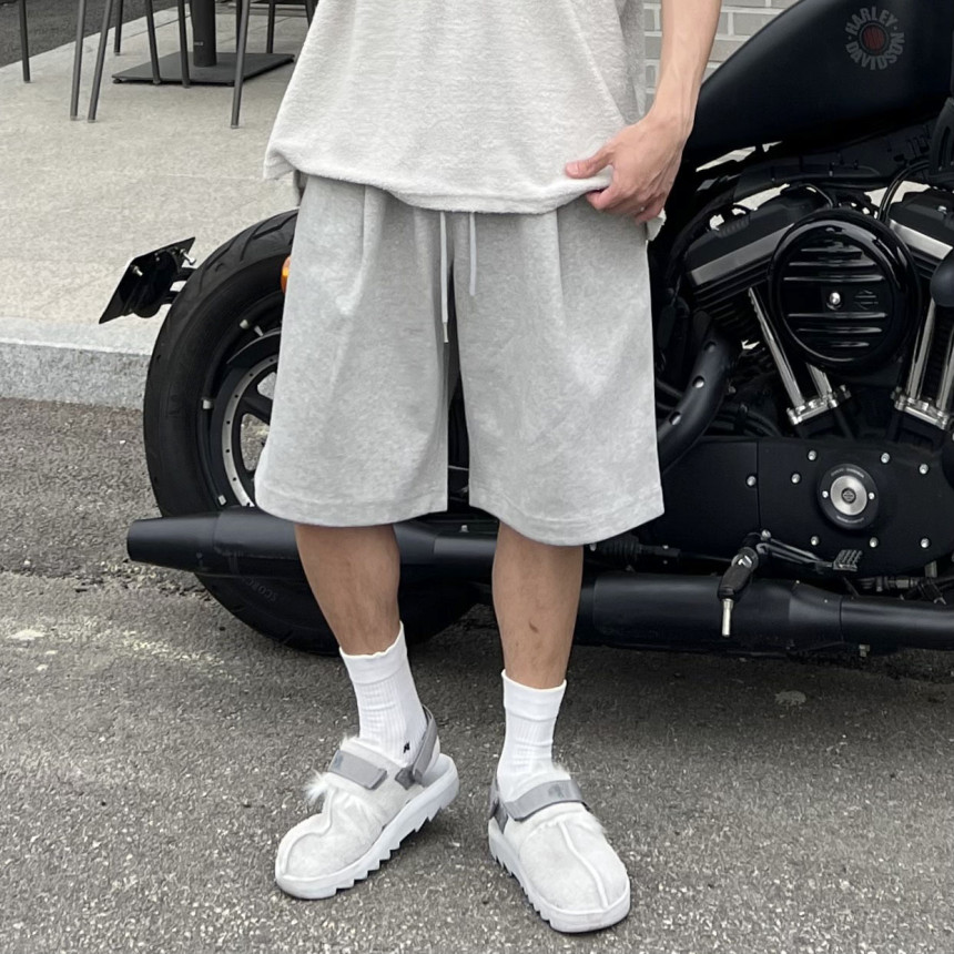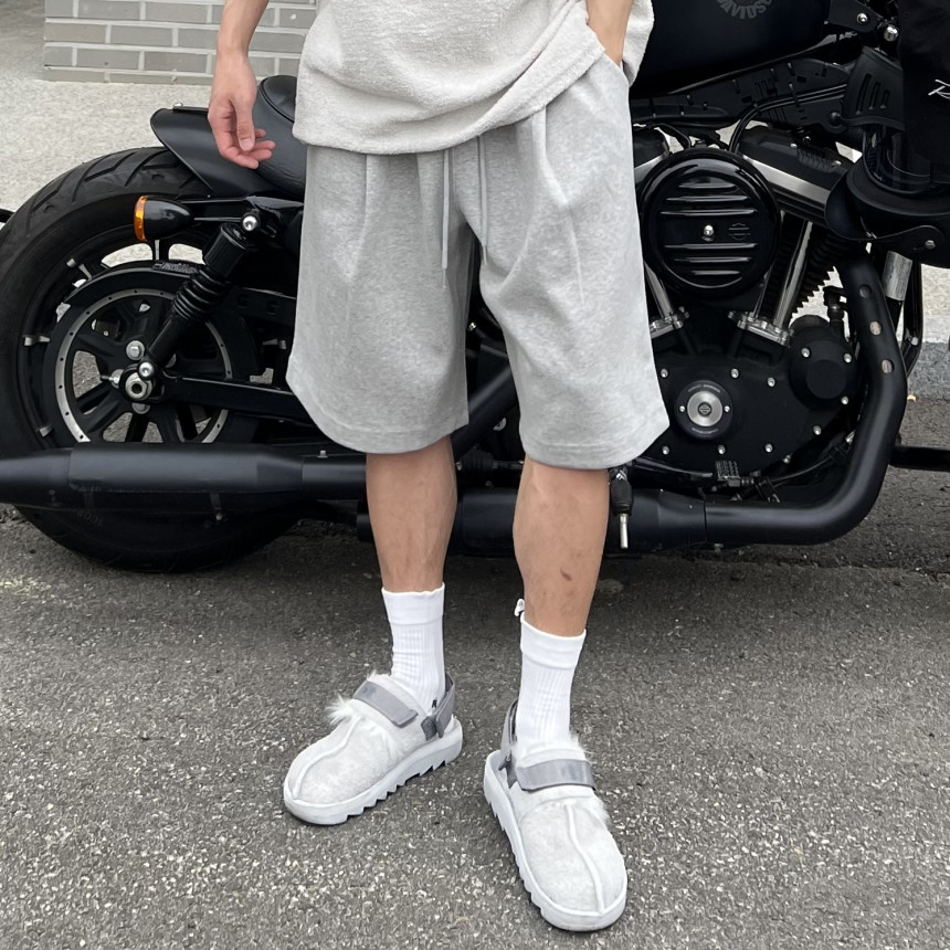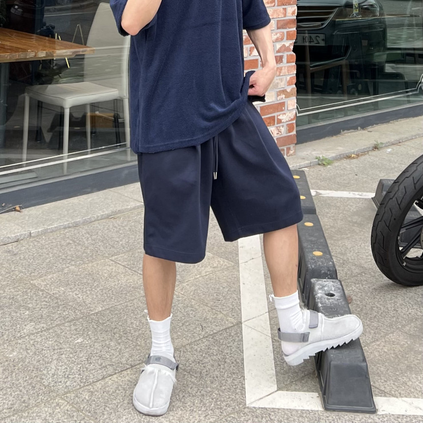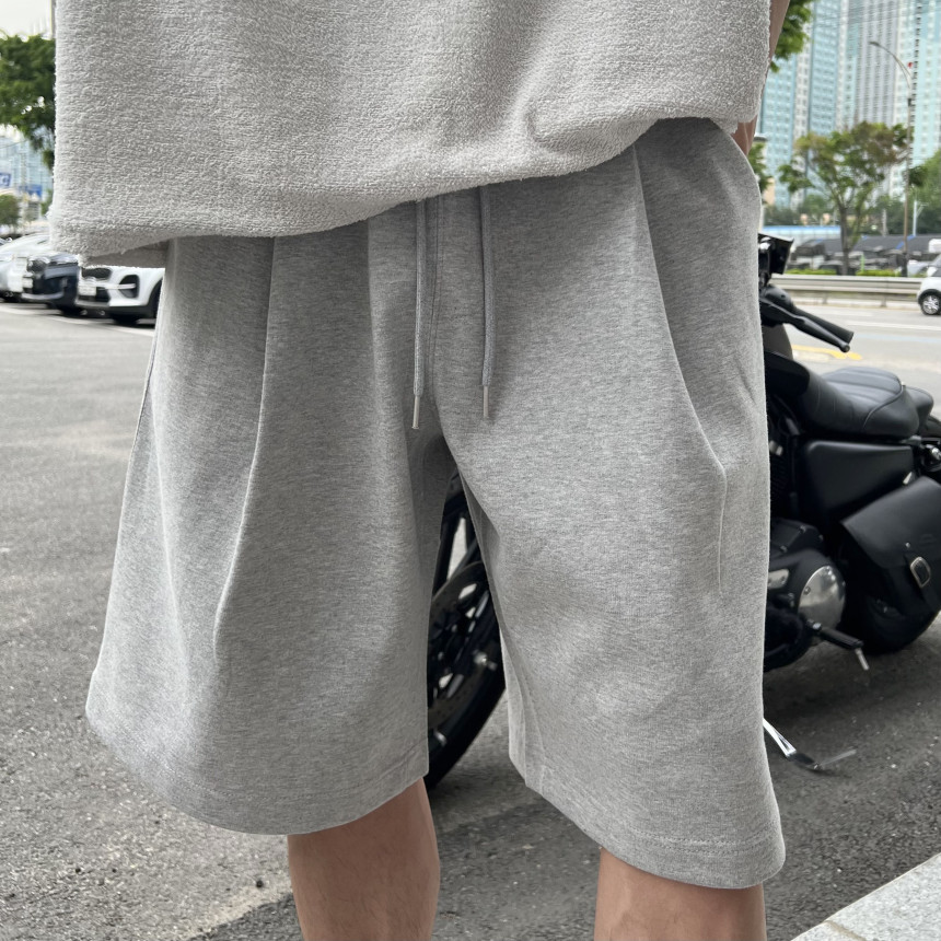 안감 합포 작업으로 이중지 소재의 와이드 버뮤다팬츠