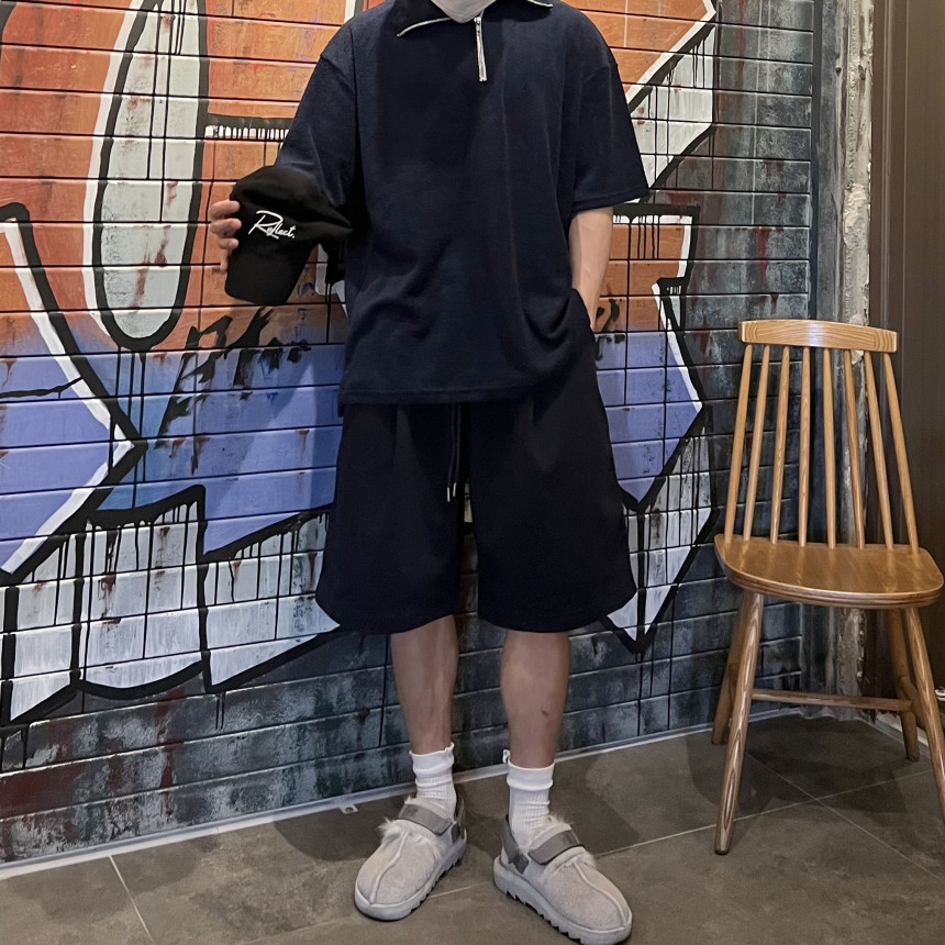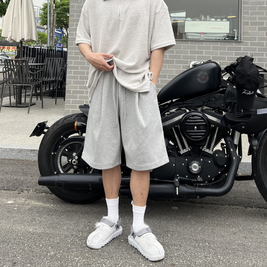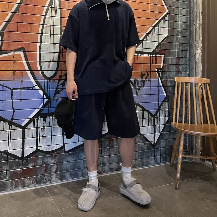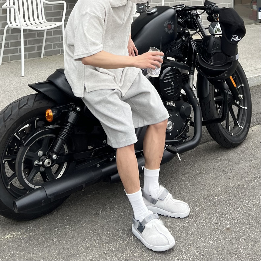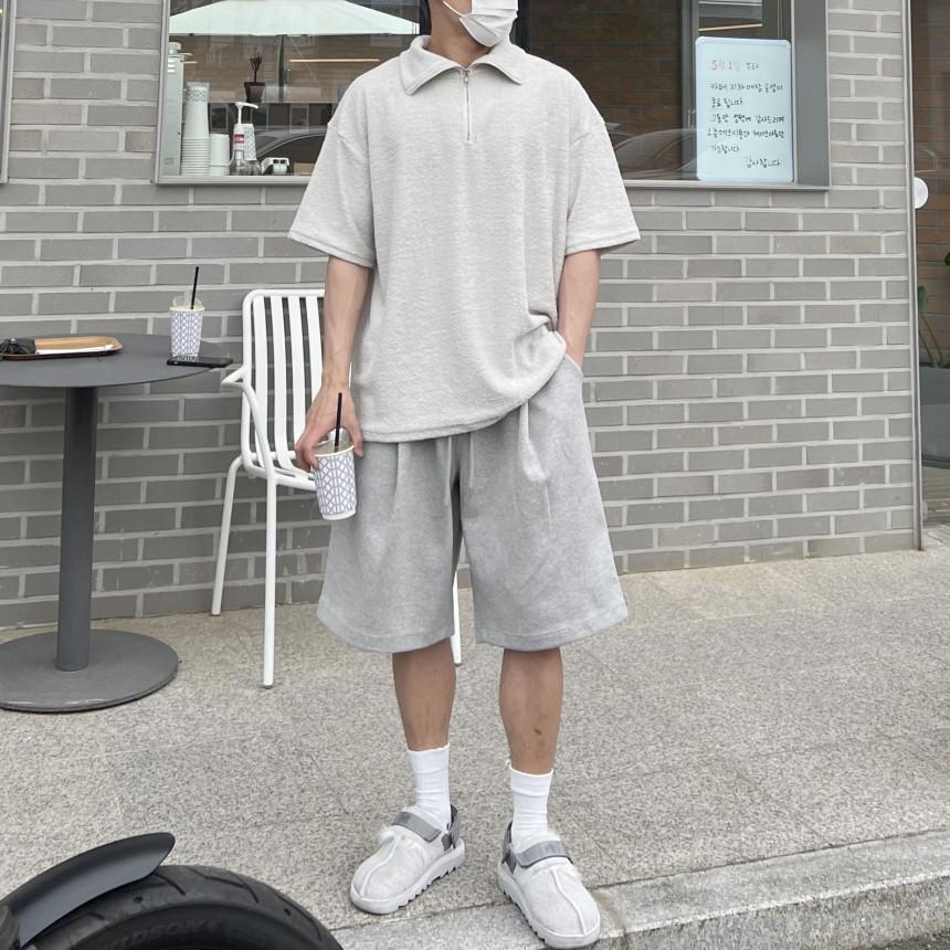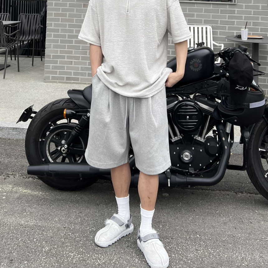 안감 합포 작업으로 이중지 소재의 와이드 버뮤다팬츠