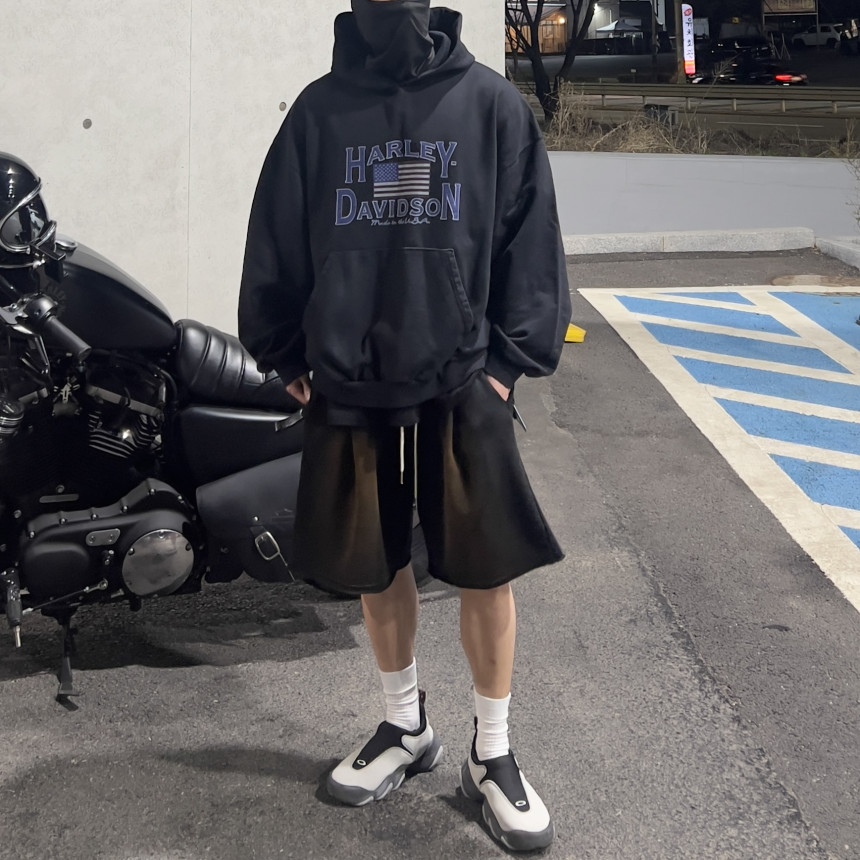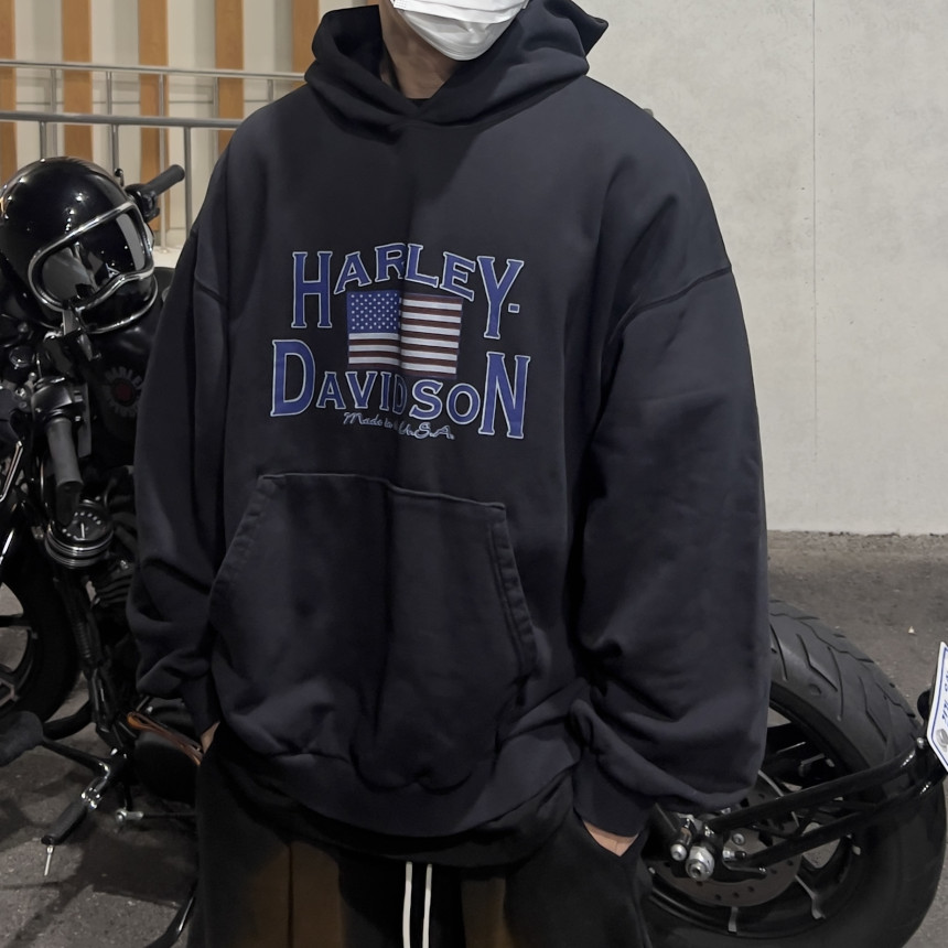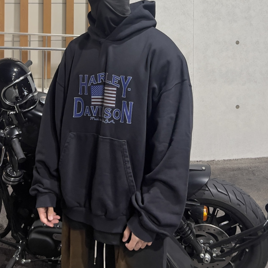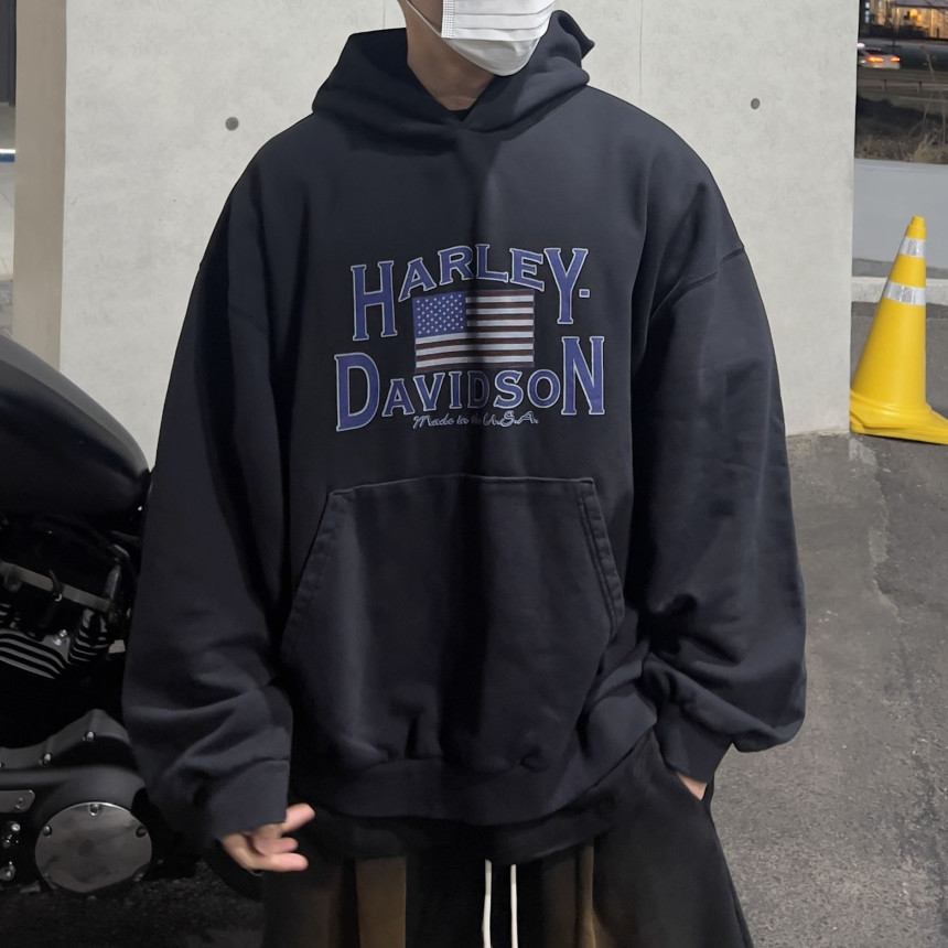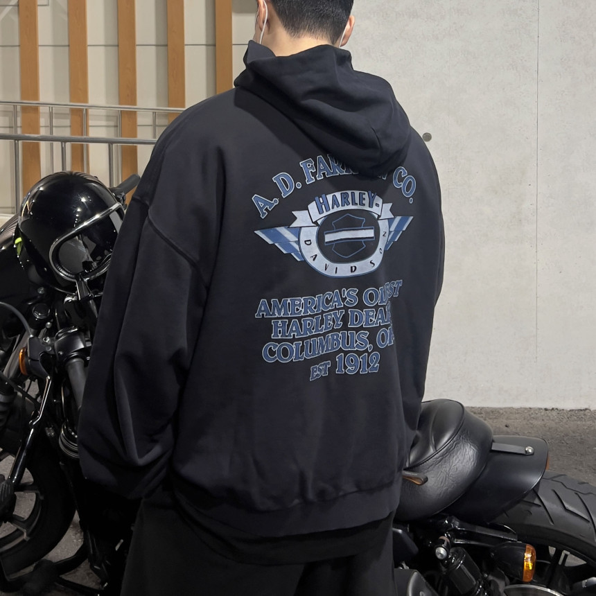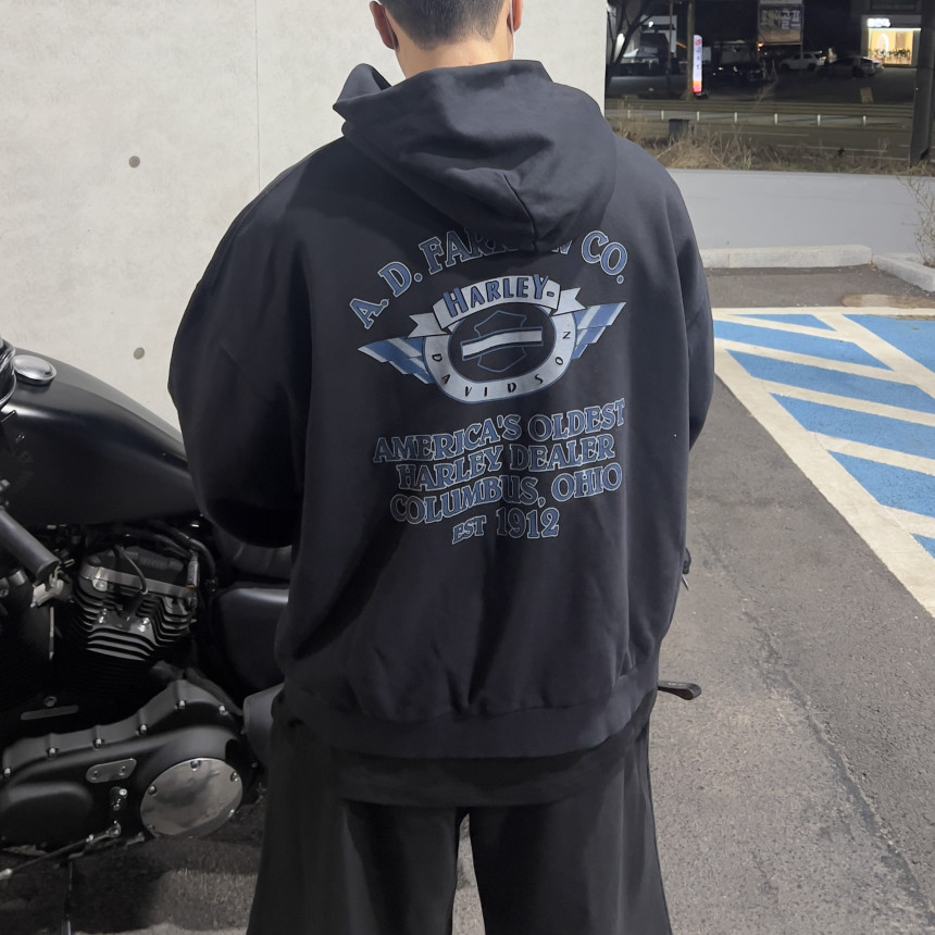top - harley blue print hoody