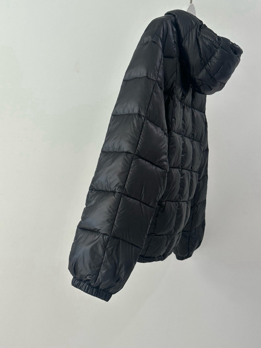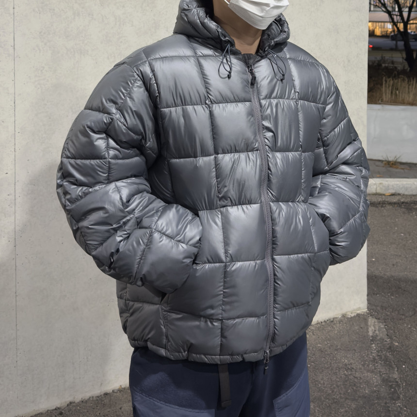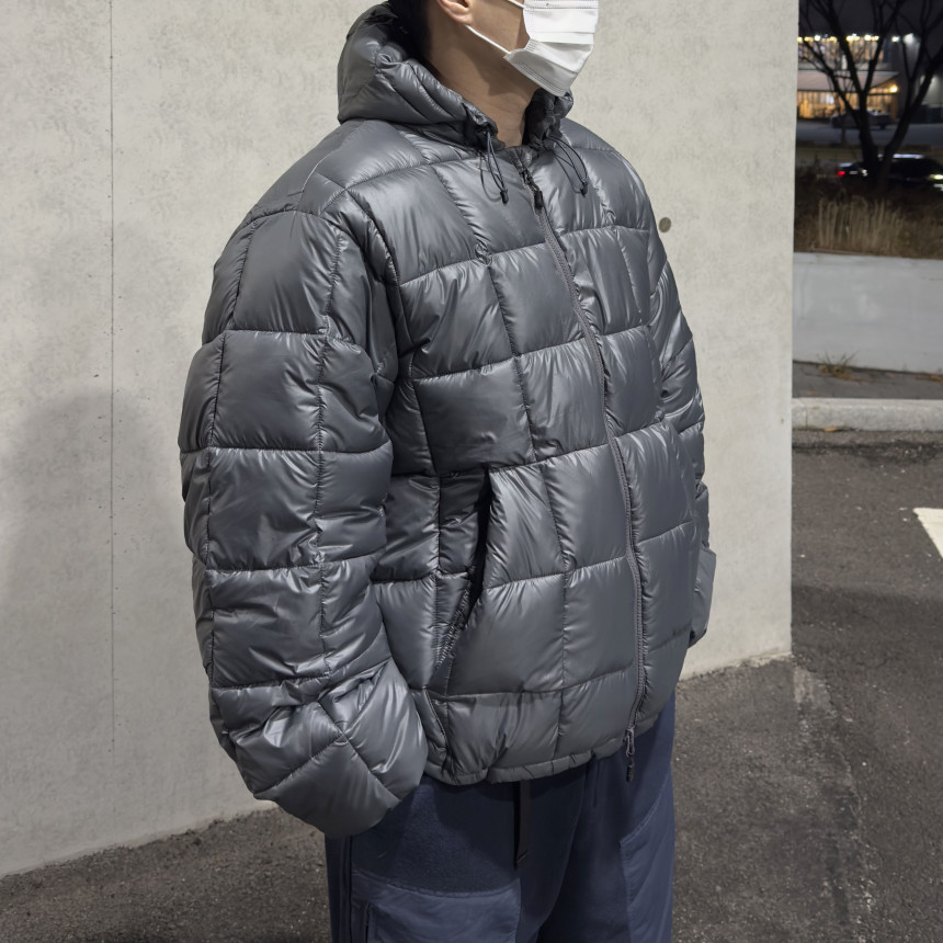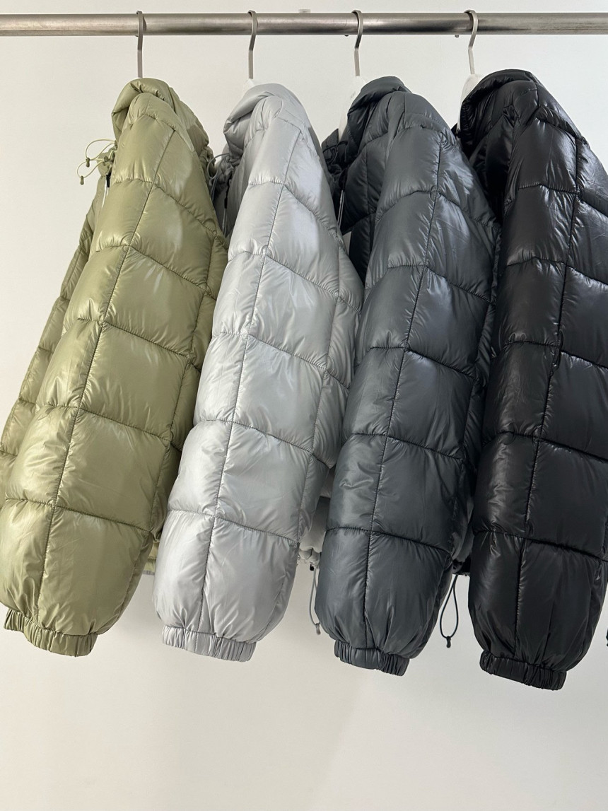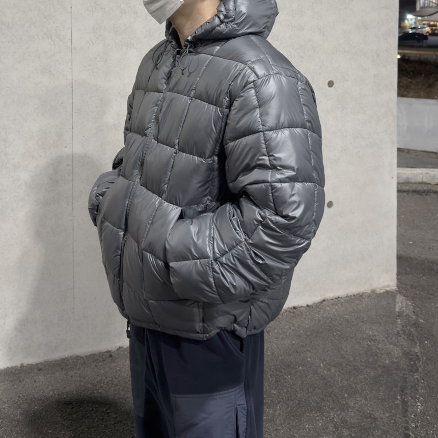 - 경량에 많이 쓰이는 얇은 나일론 반무광 소재의 (웰론) 후드 패딩