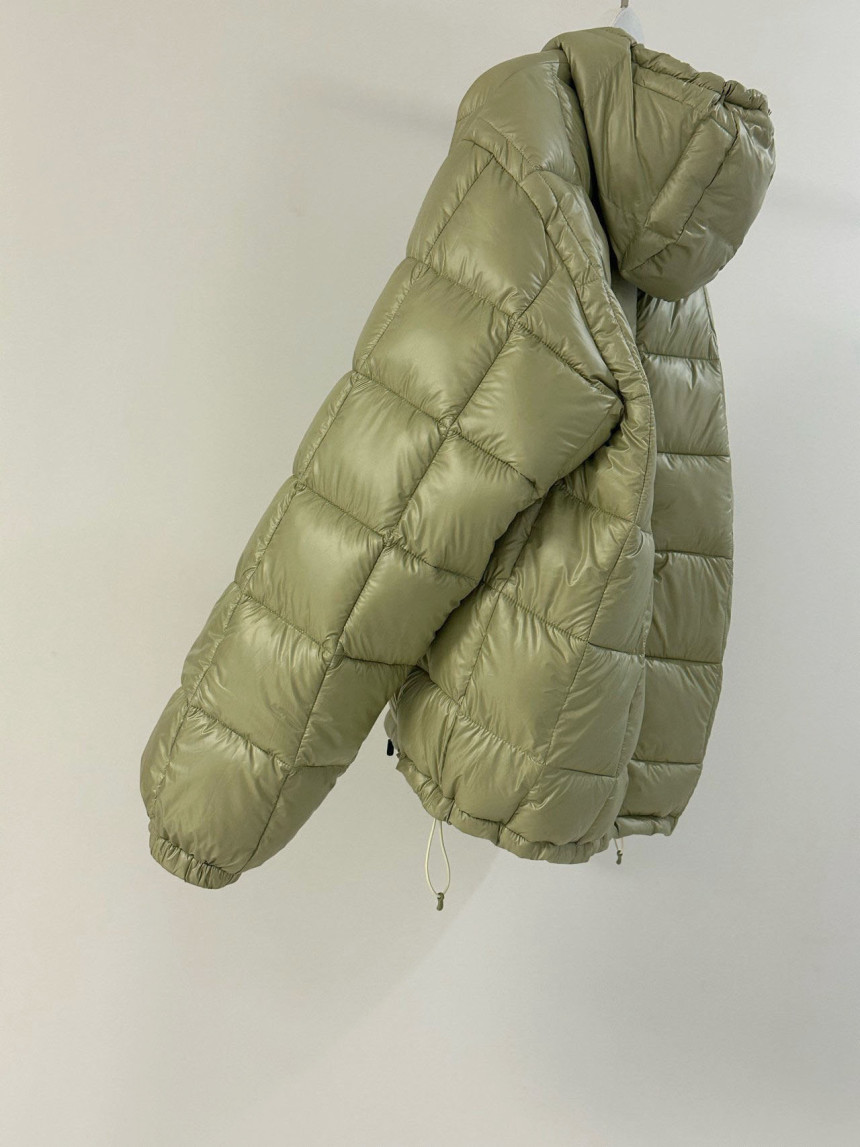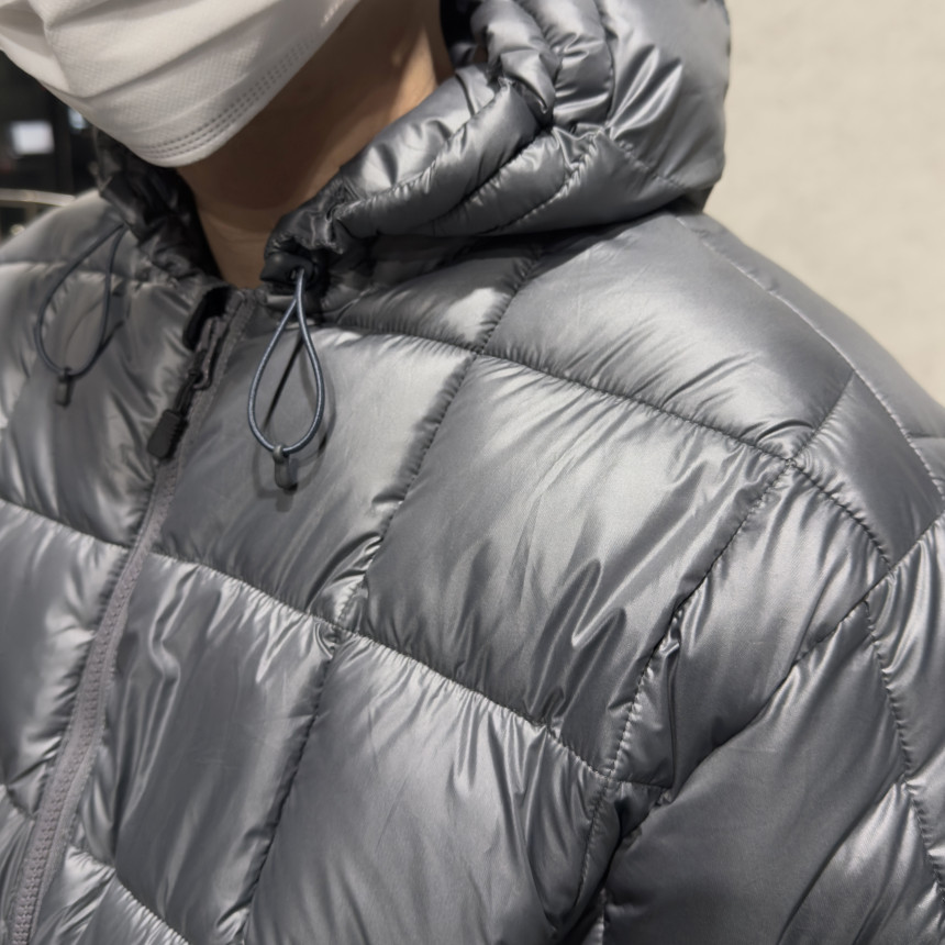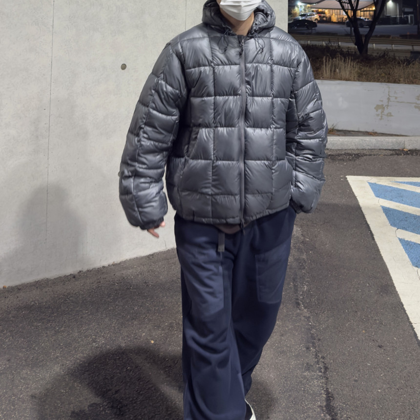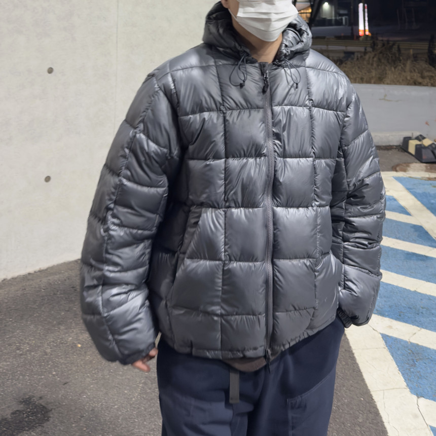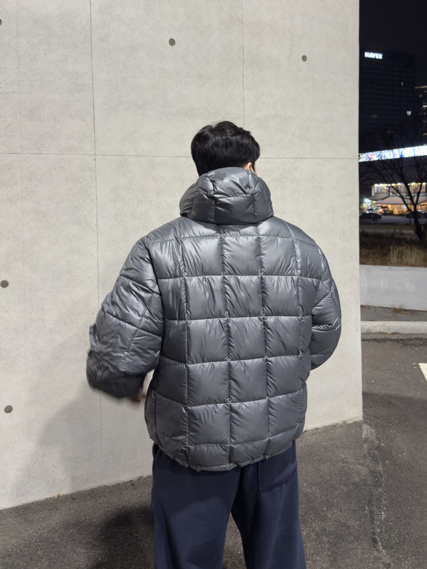 - 경량에 많이 쓰이는 얇은 나일론 반무광 소재의 (웰론) 후드 패딩