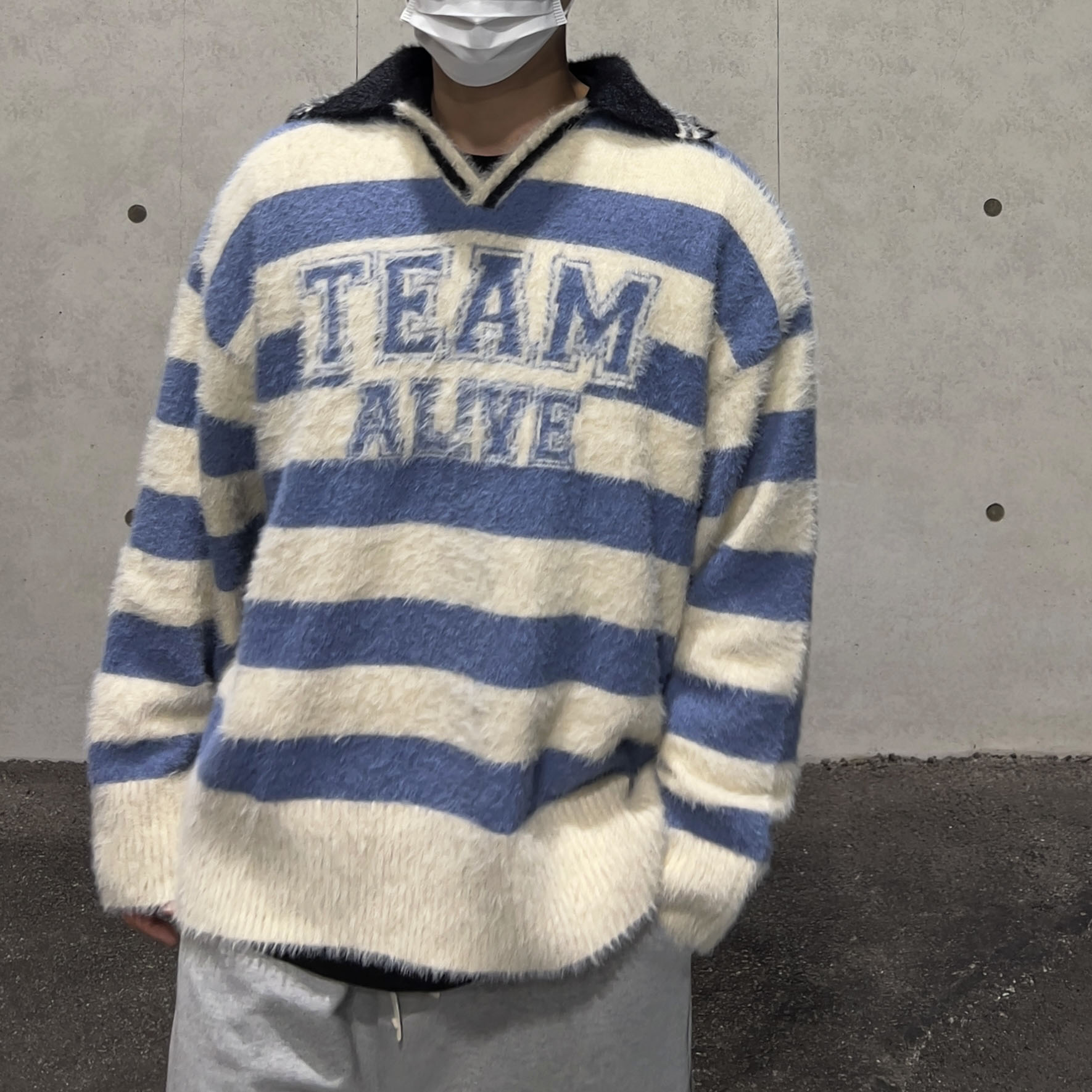 top - rugby collar knit (blue)