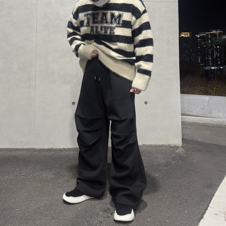 pants - triple knee tuck pants (black)