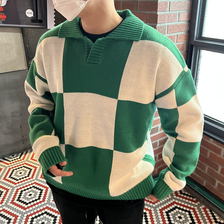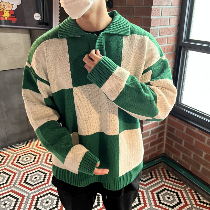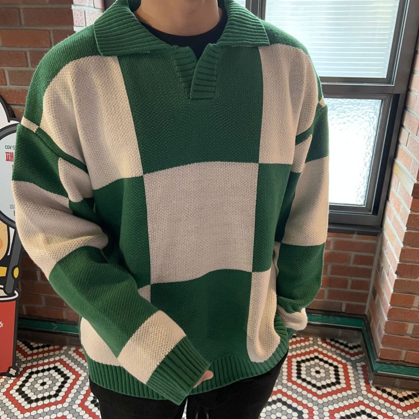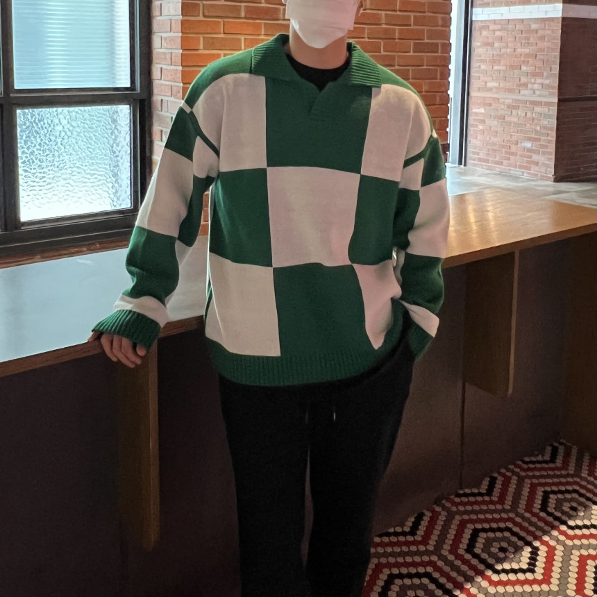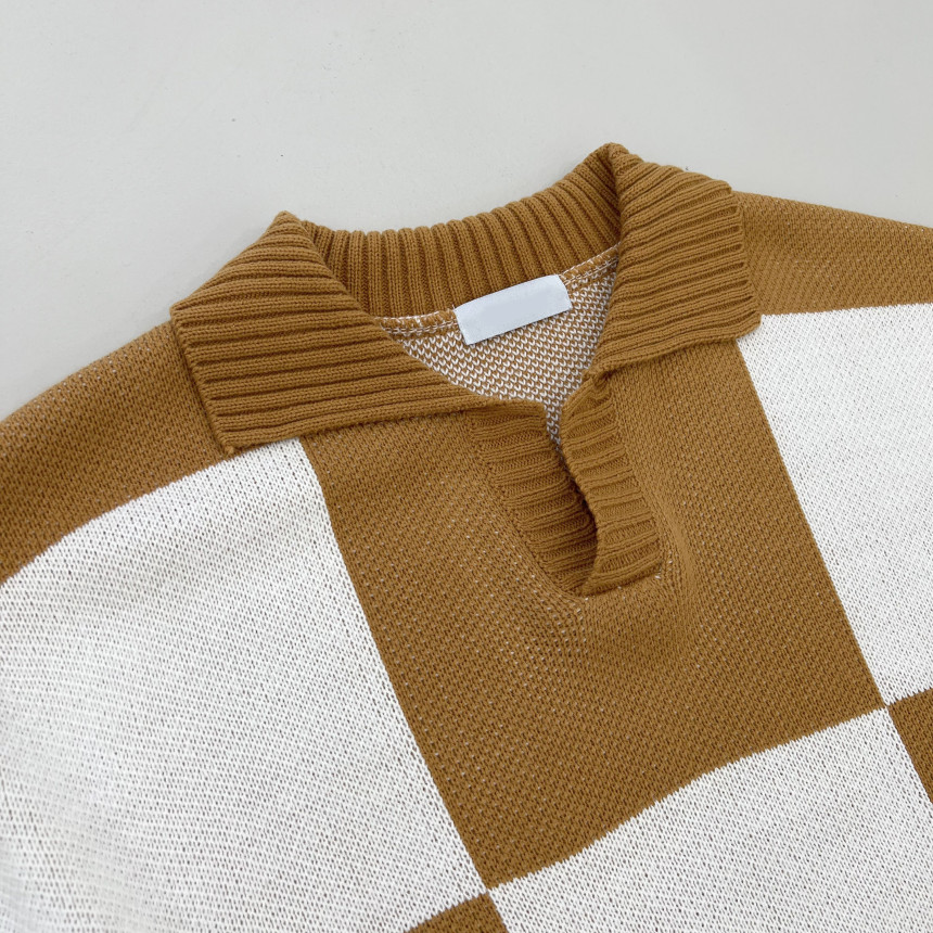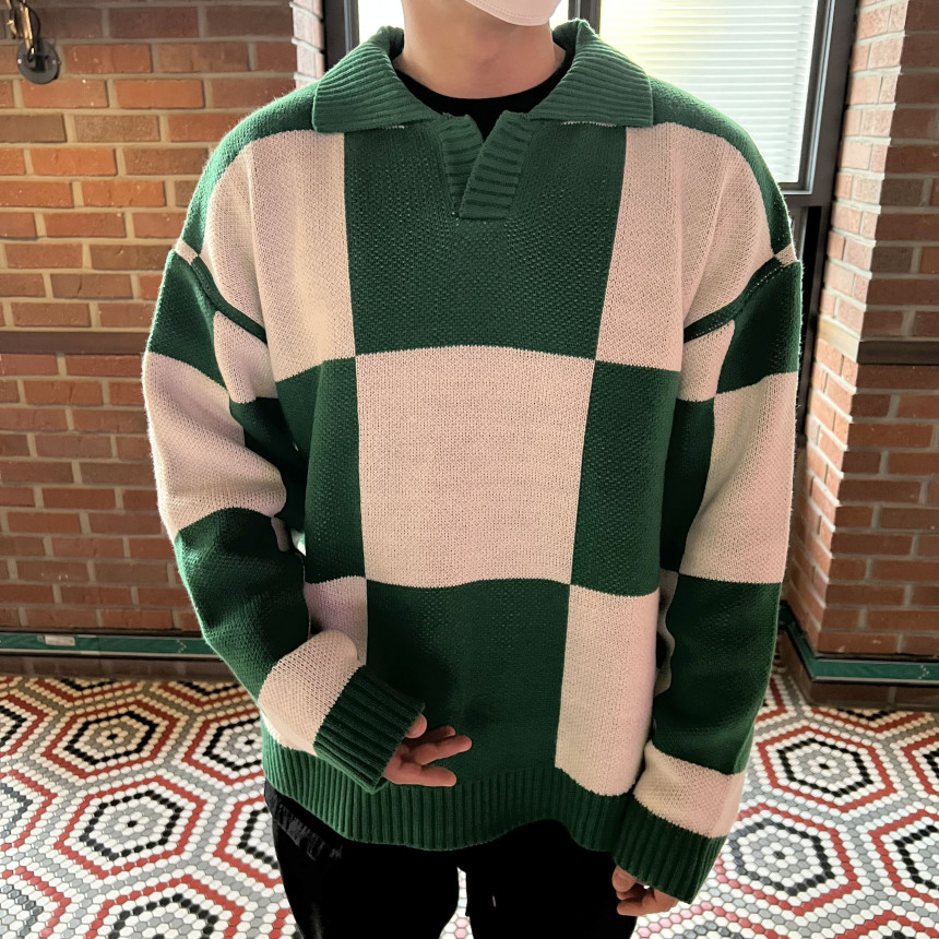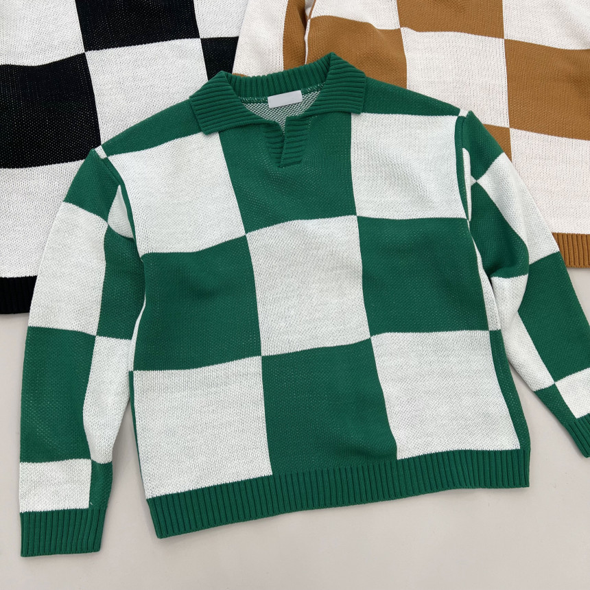 Check collar over knit (3color)